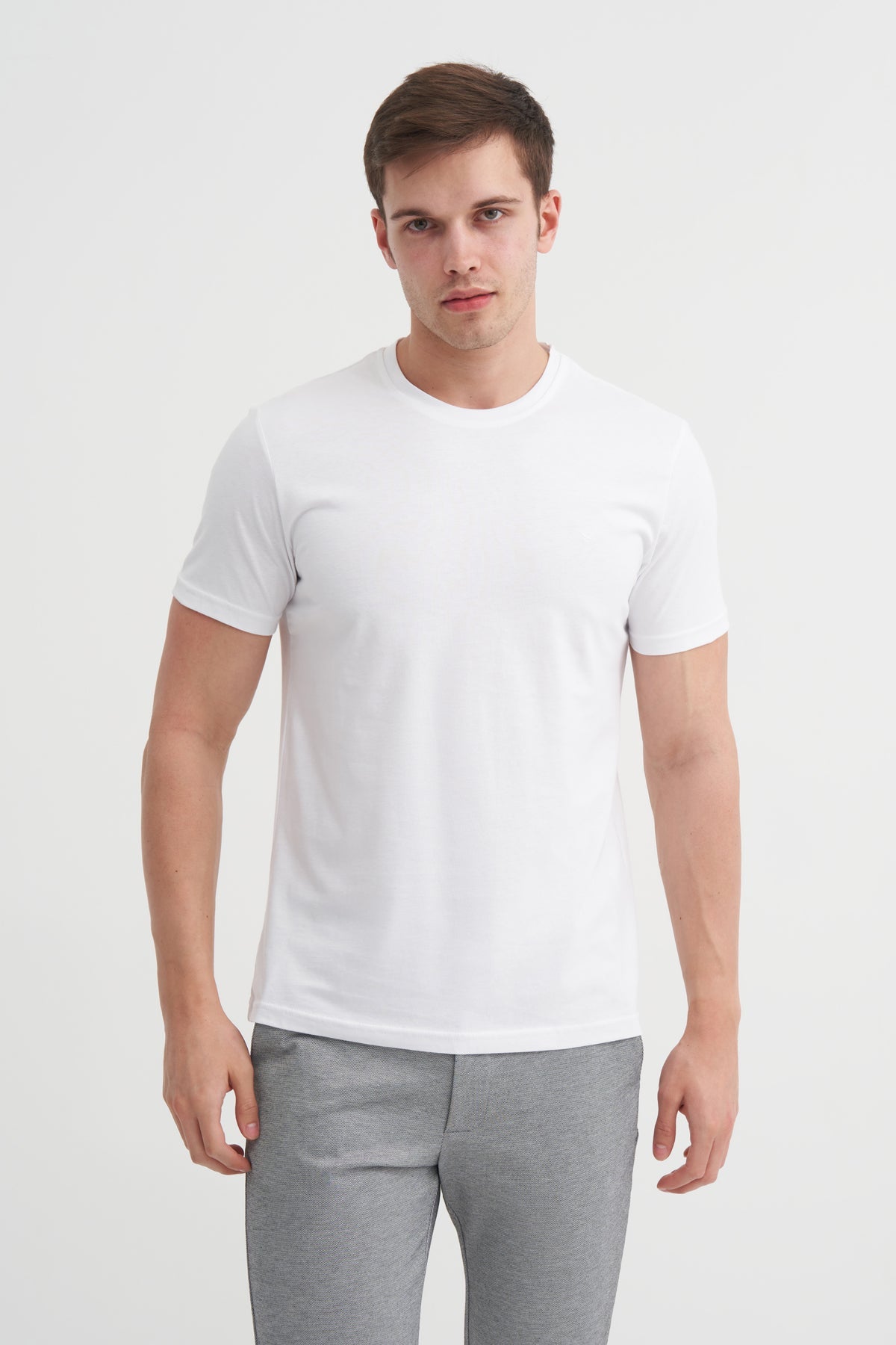 Slim Fit Bisiklet Yaka Pamuklu Düz Tişört