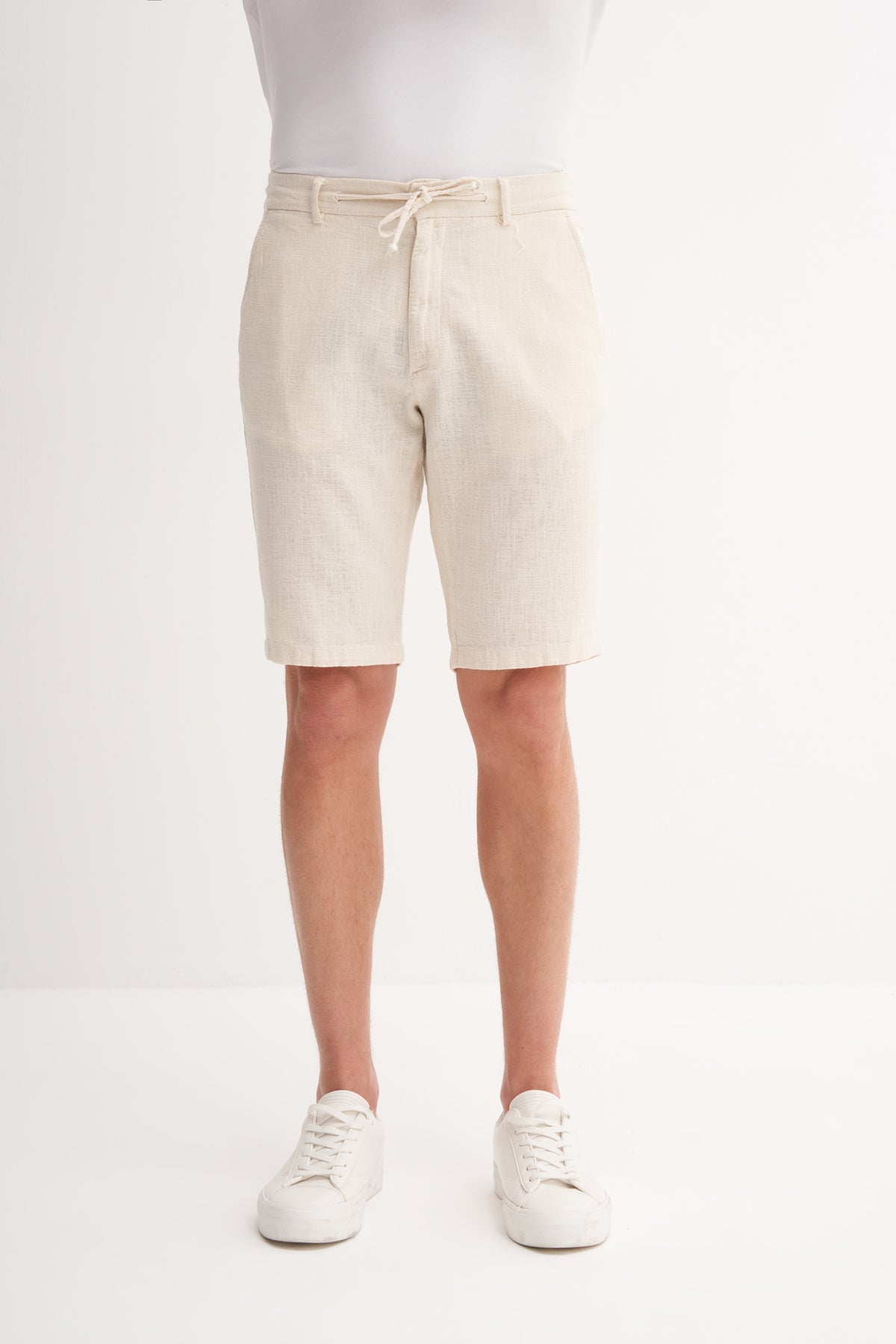 Slim Fit Dar Paça Keten Bermuda Şort 6108