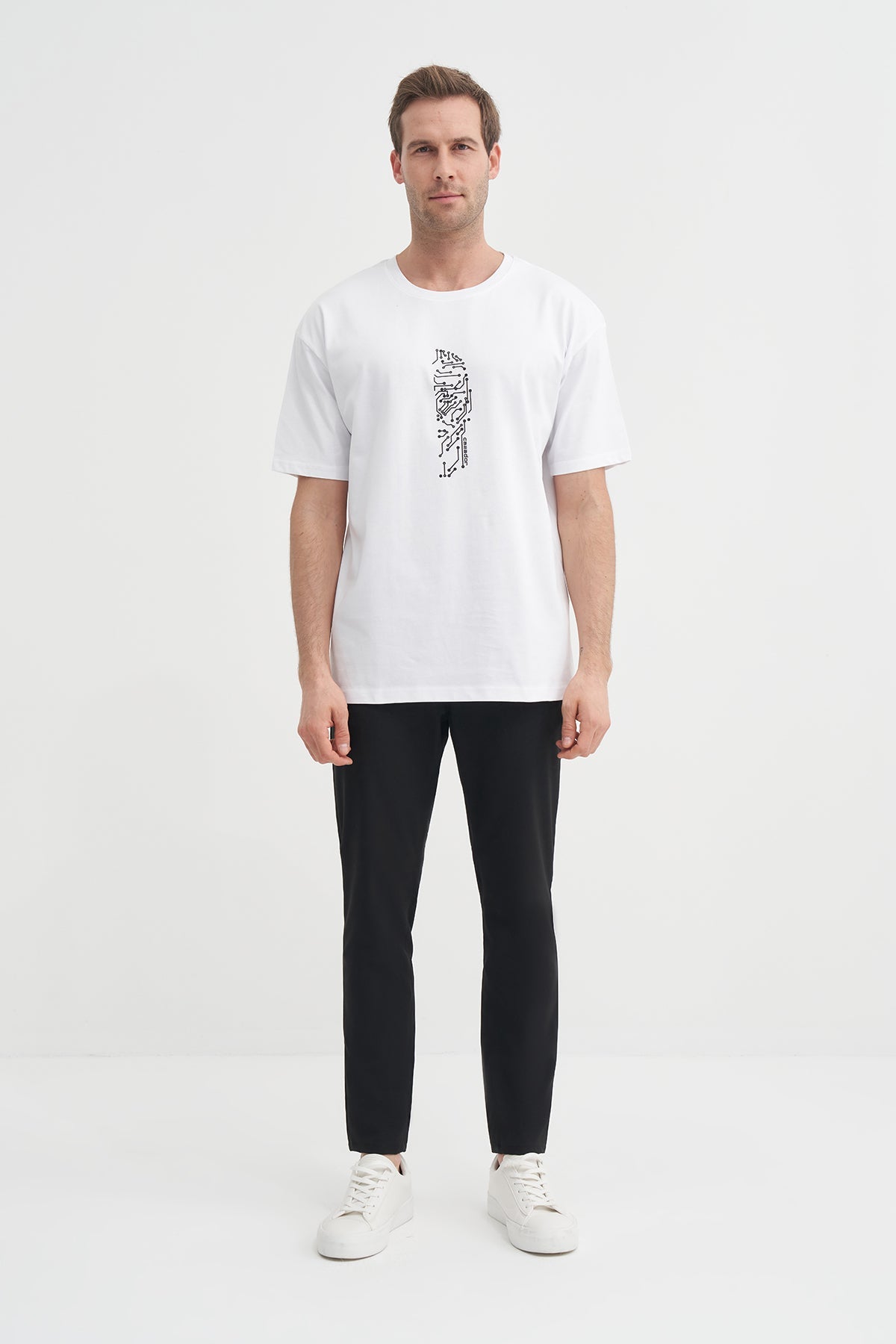 Bisiklet Yaka Relax Fit Pamuklu Desenli Tişört 4018 - Cazador