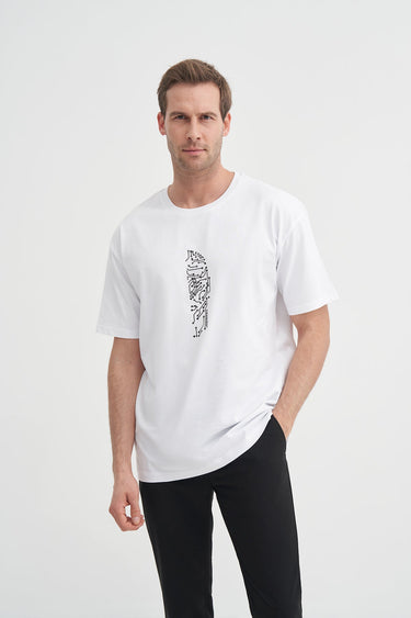 Bisiklet Yaka Relax Fit Pamuklu Desenli Tişört 4018