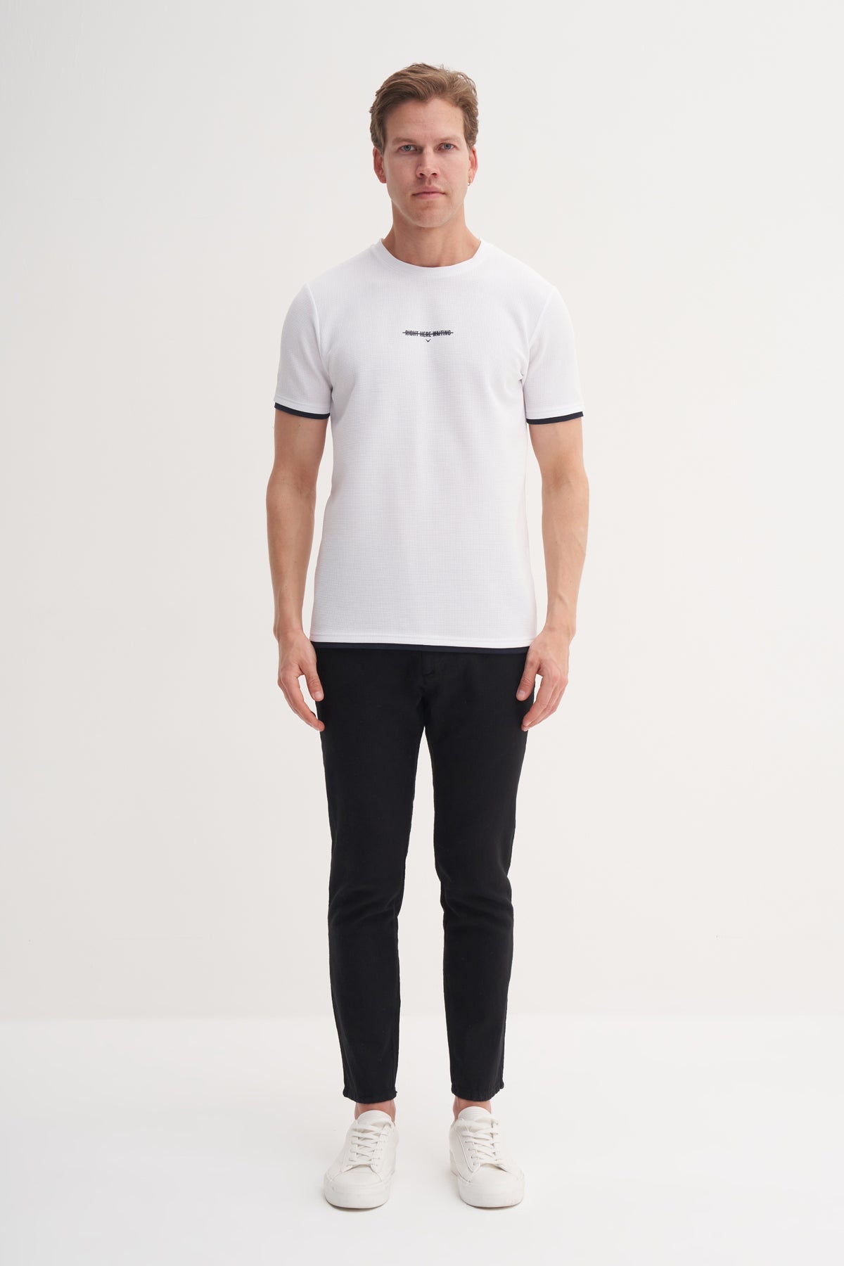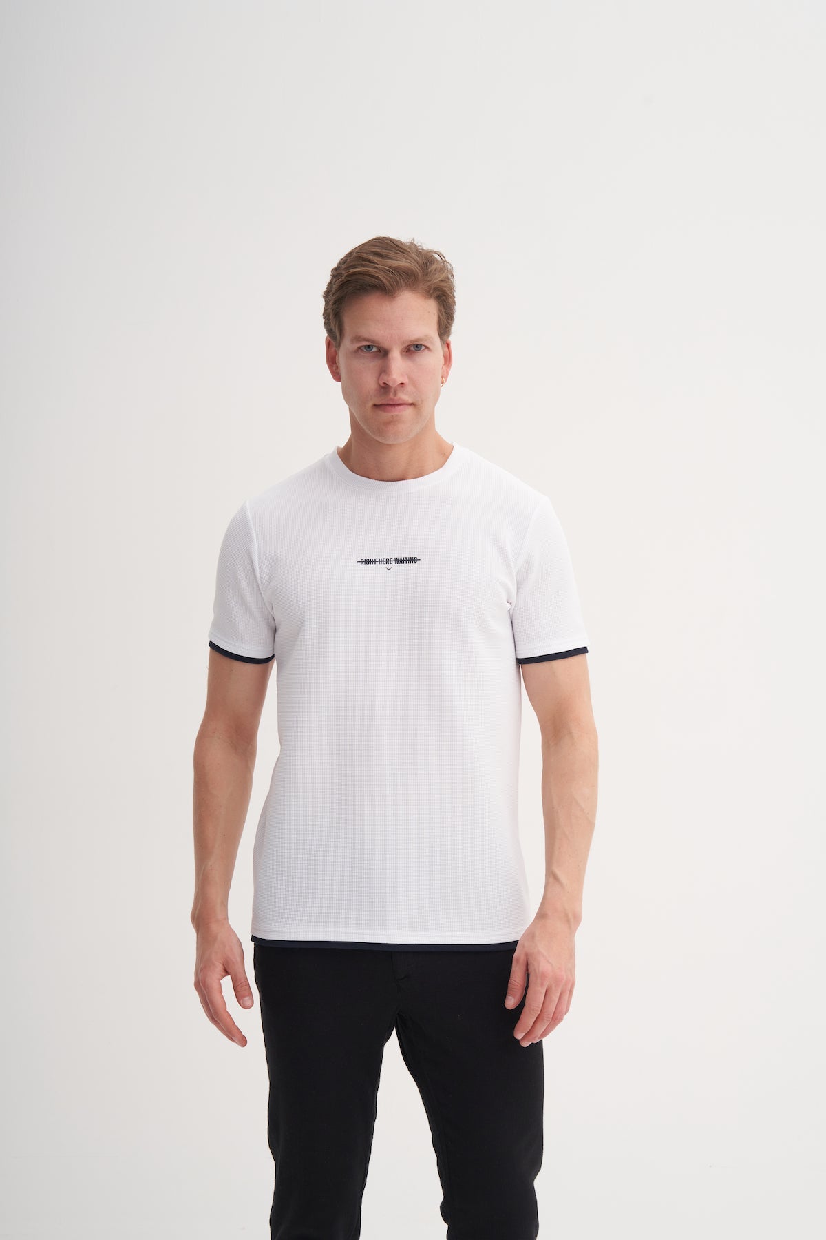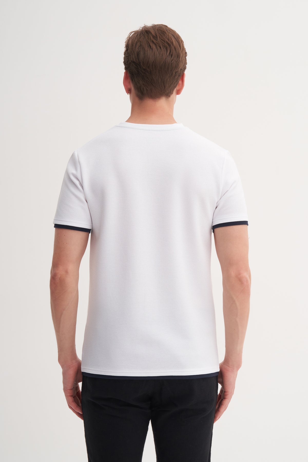 Slim Fit Bisiklet Yaka Waffle Yumuşak Dokulu Tişört 4243