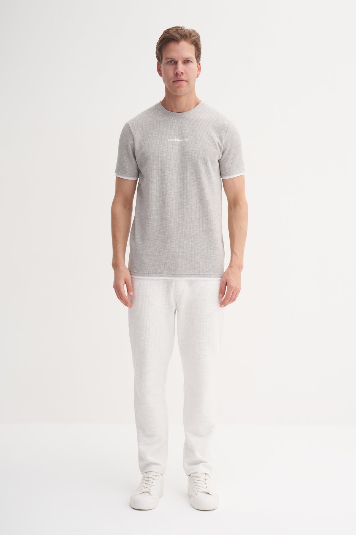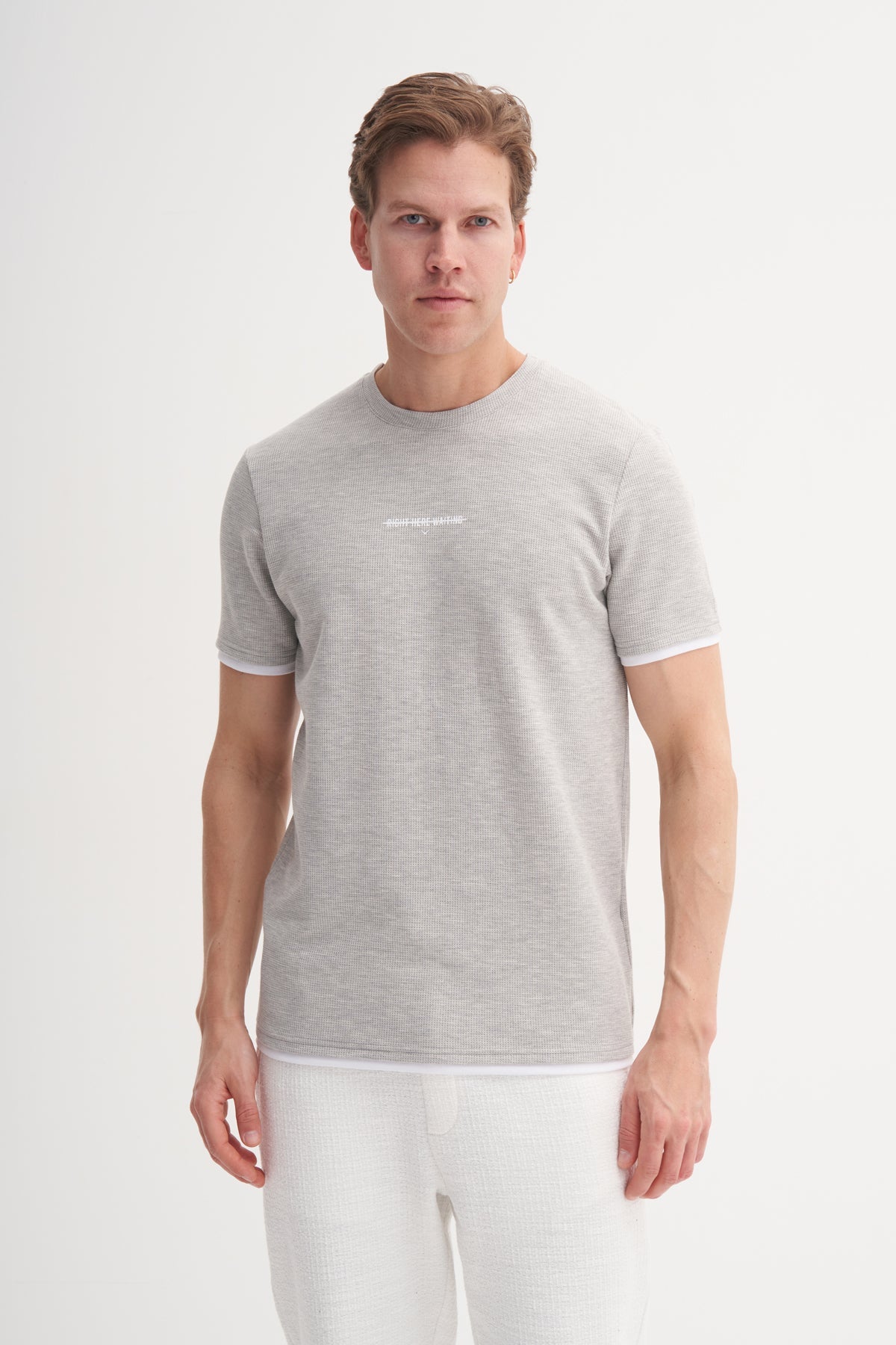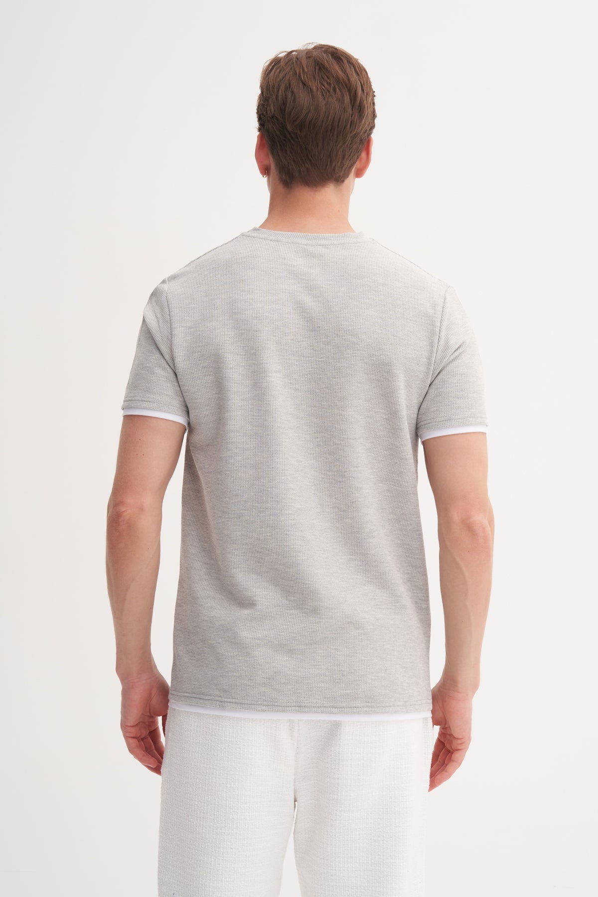Slim Fit Bisiklet Yaka Waffle Yumuşak Dokulu Tişört 4243