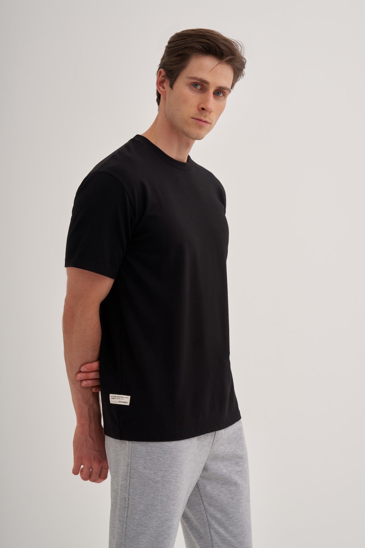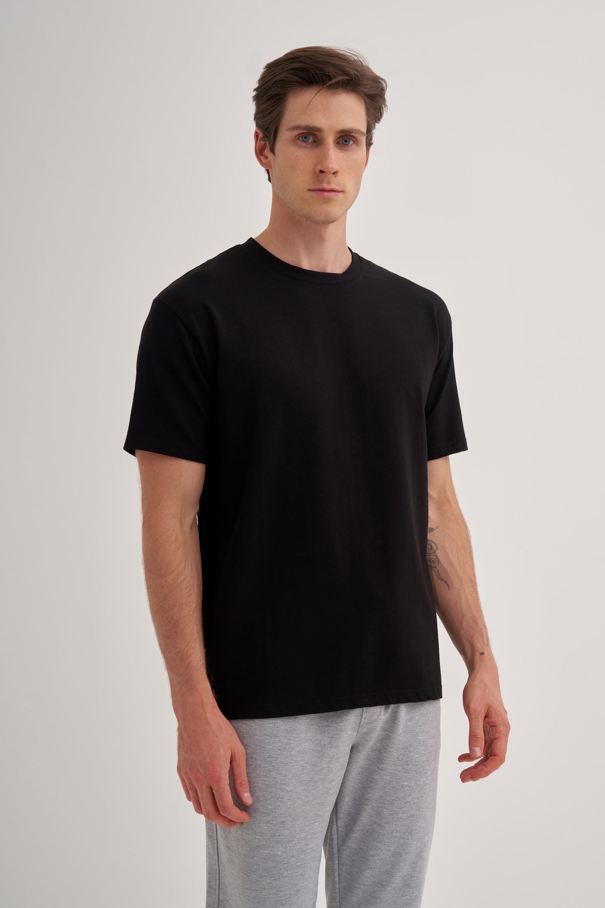 Relax Fit Bisiklet Yaka Likralı Rahat Tişört 4262