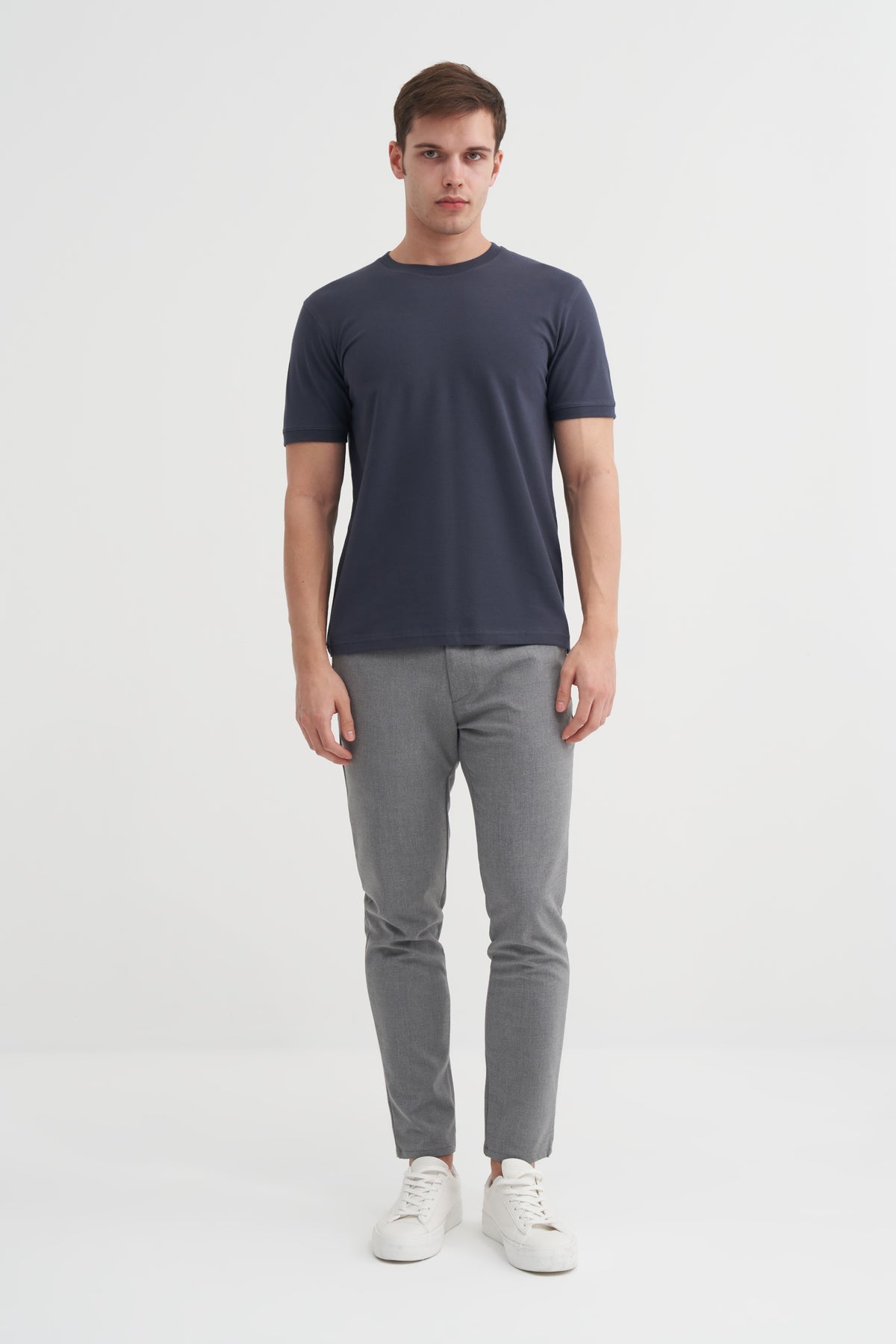 Bisiklet Yaka Slim Fit Düz Örme Likralı Tişört 4620