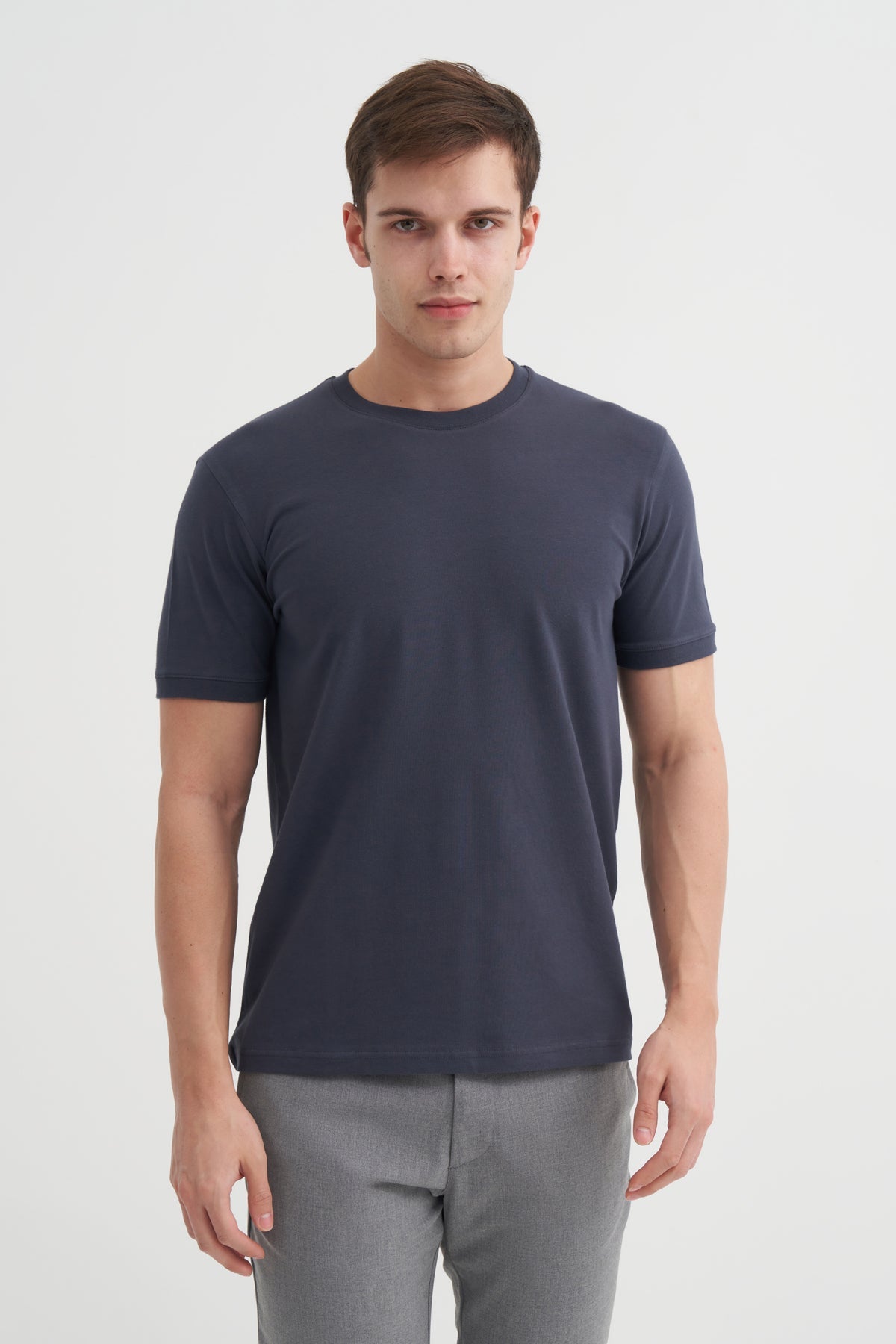 Bisiklet Yaka Slim Fit Düz Örme Likralı Tişört 4620 - Cazador