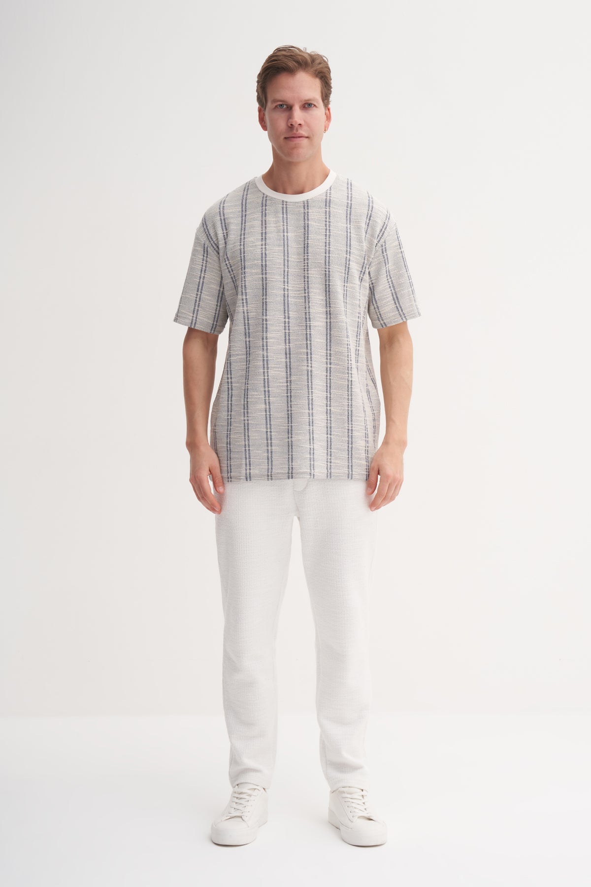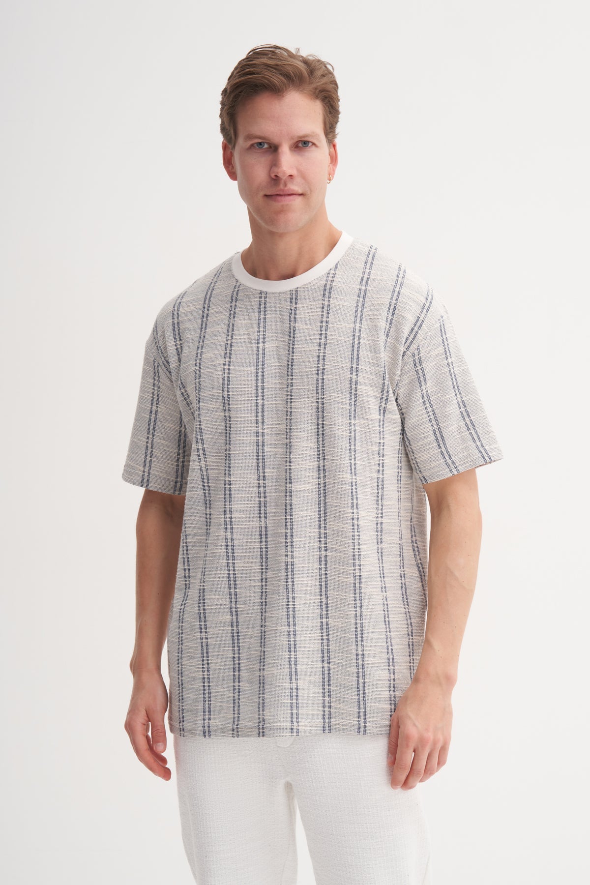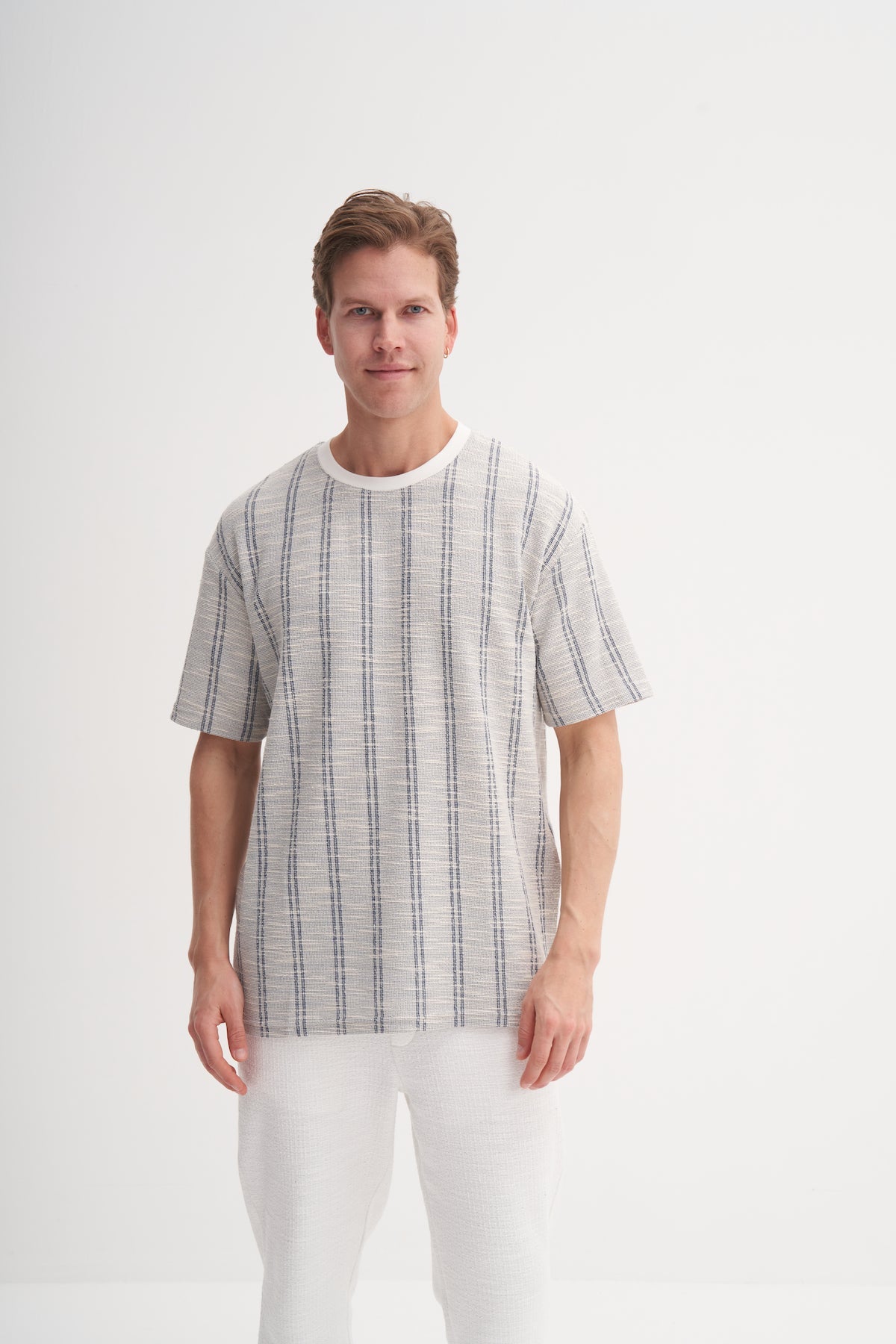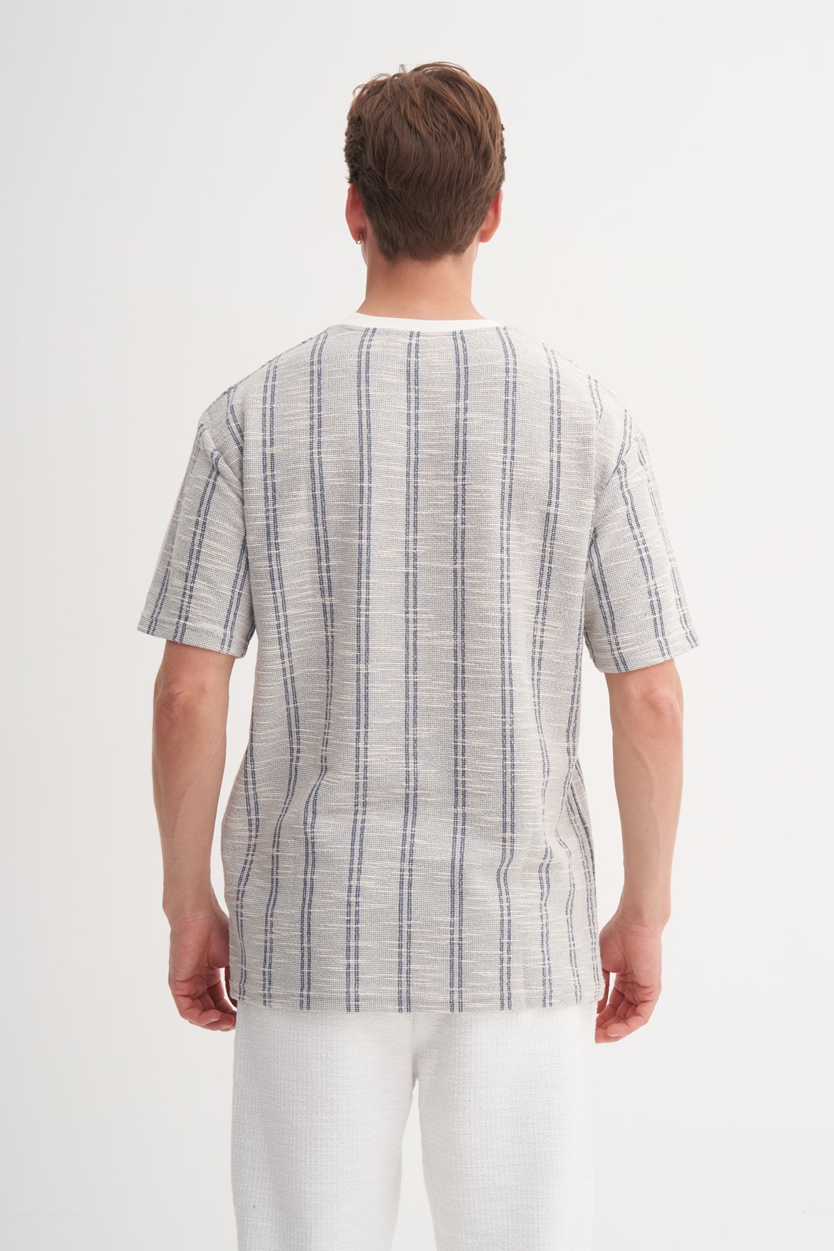 Bisiklet Yaka Relax Fit Örme Çizgili Tişört 4013