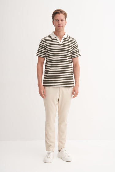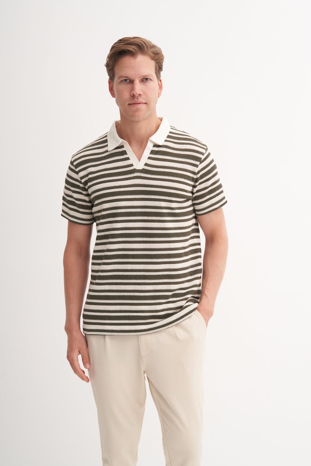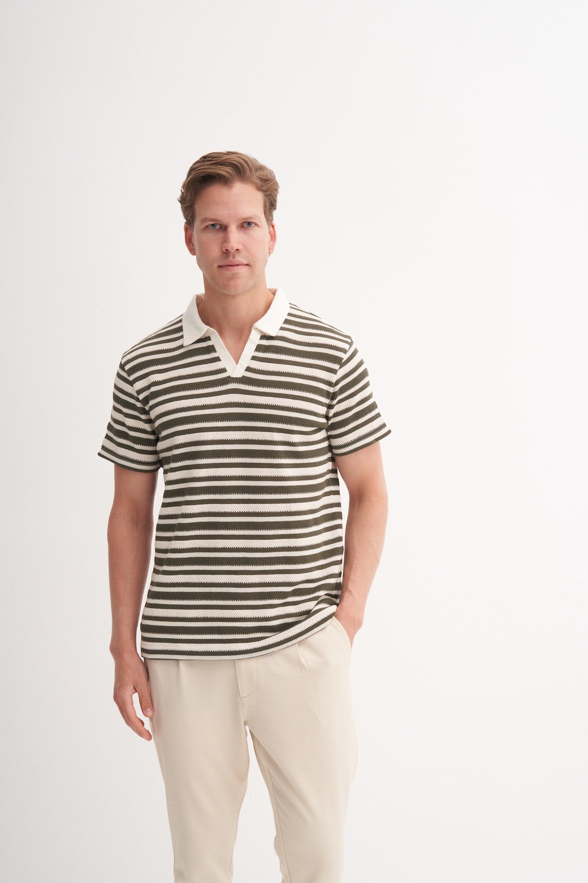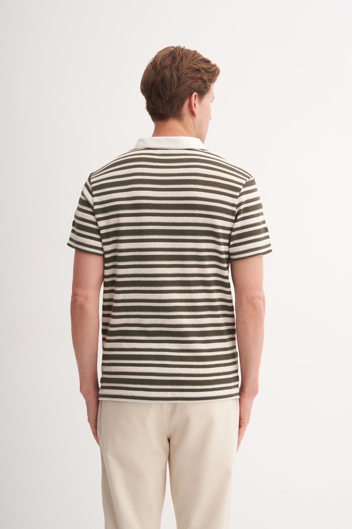 Polo Yaka Regular Fit Örme Çizgili Tişört 4033