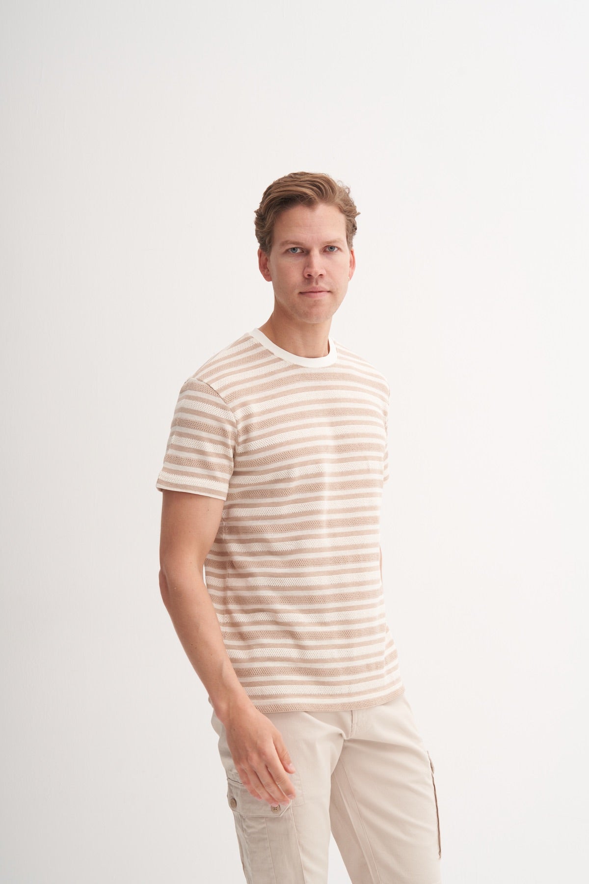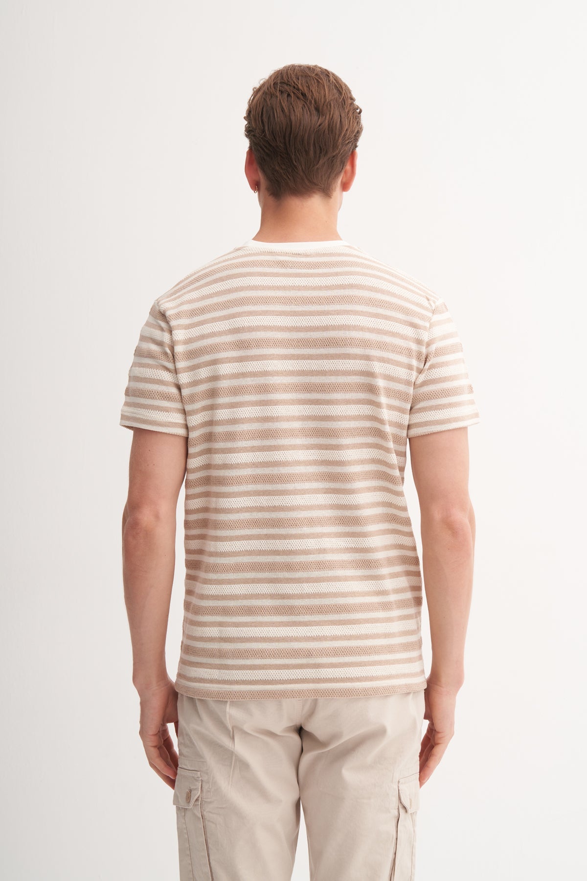 Bisiklet Yaka Slim Fit Çizgili Jakarlı Tişört 4034