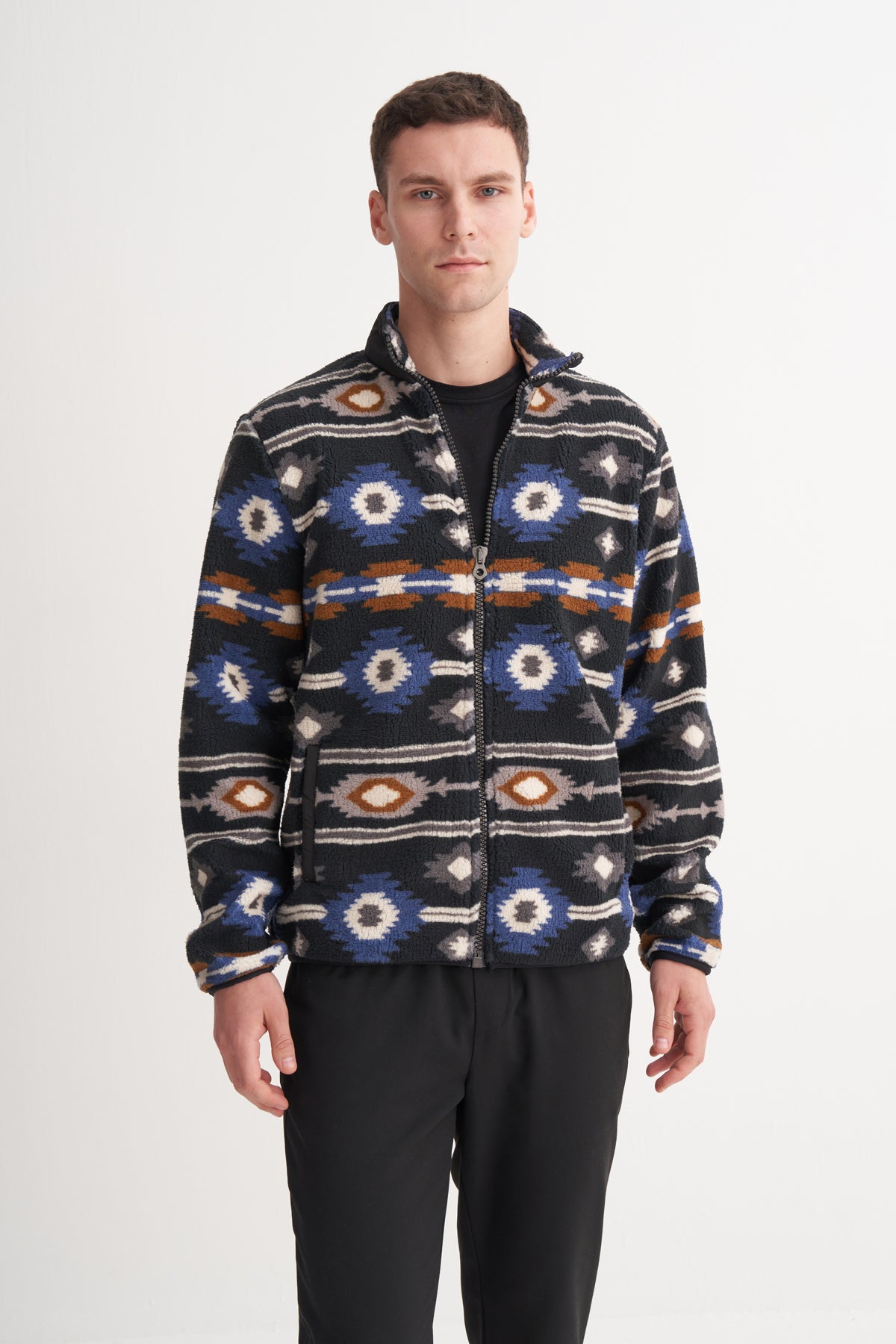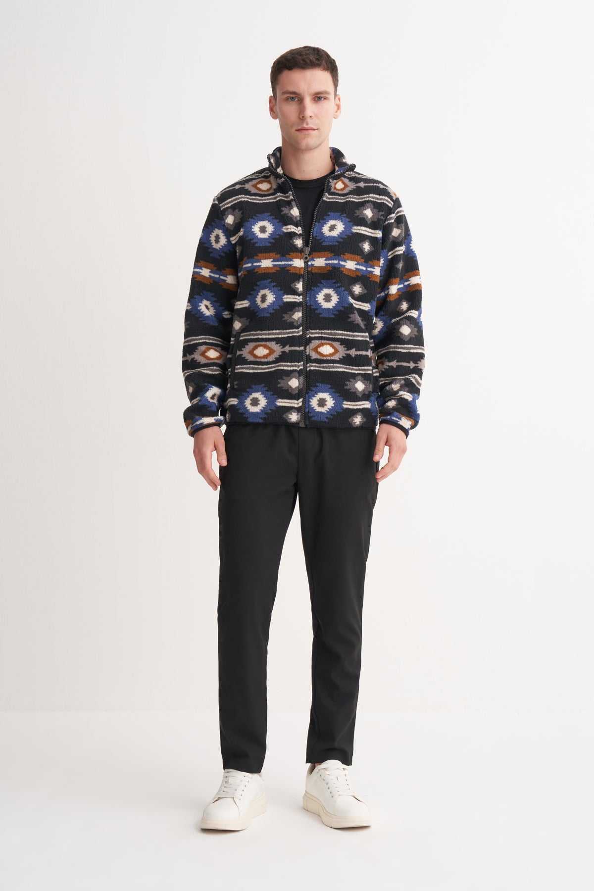 Desenli Kürklü Kumaş Vintage Regular Fit Dik Yaka Sweat Hırka