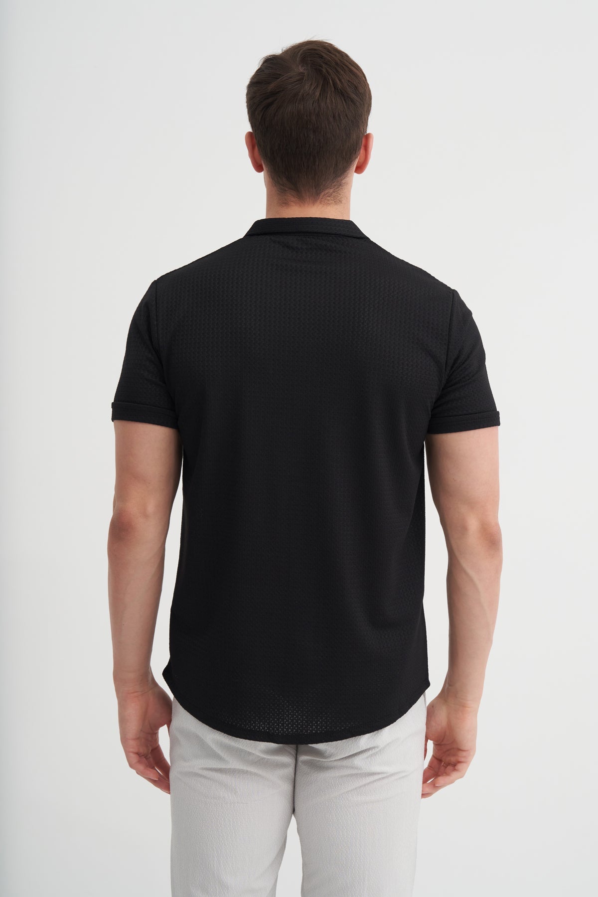 Regular Fit Örme Zigzag Dokulu Kısa Kol Gömlek 2016