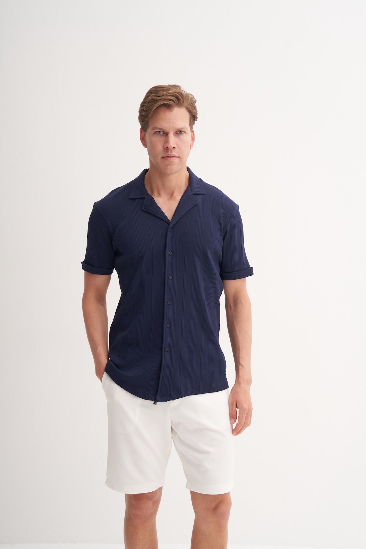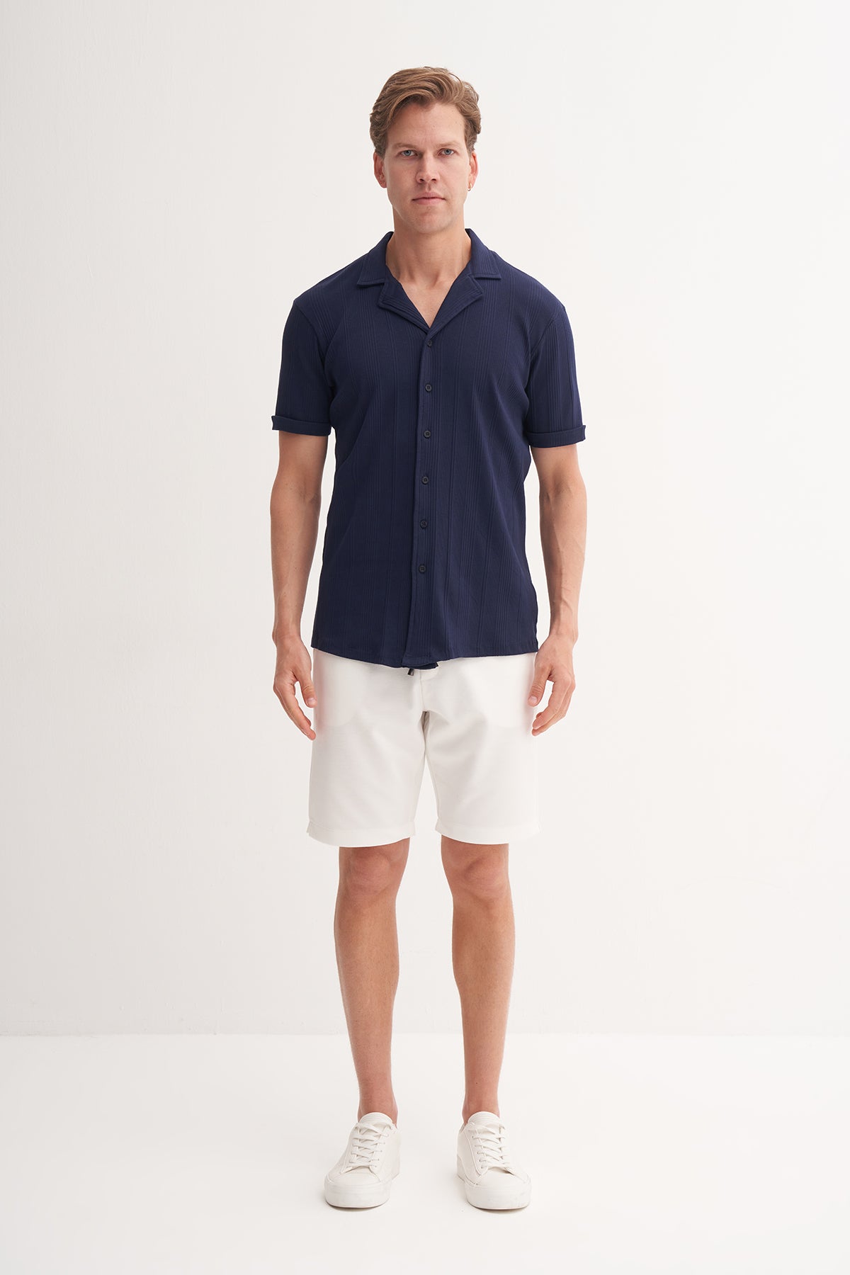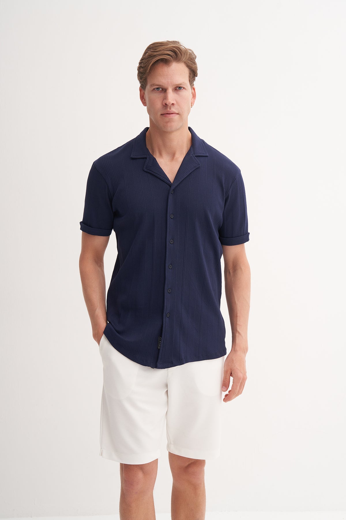 Slim Fit Dar Kesim Likralı Rahat Kısa Kol Gömlek 2045
