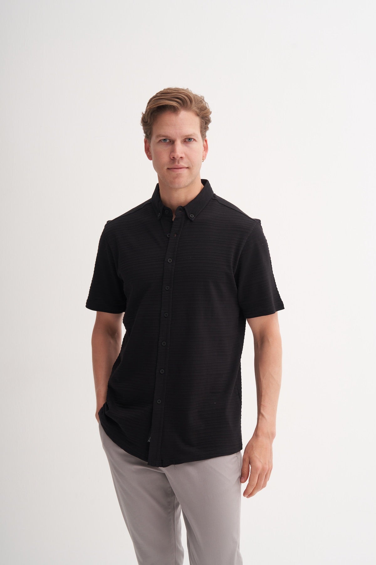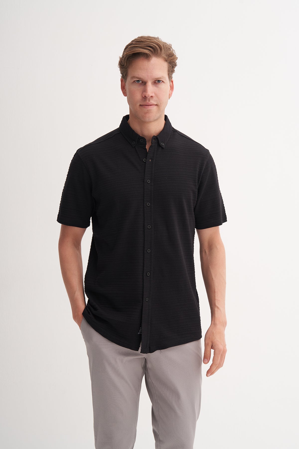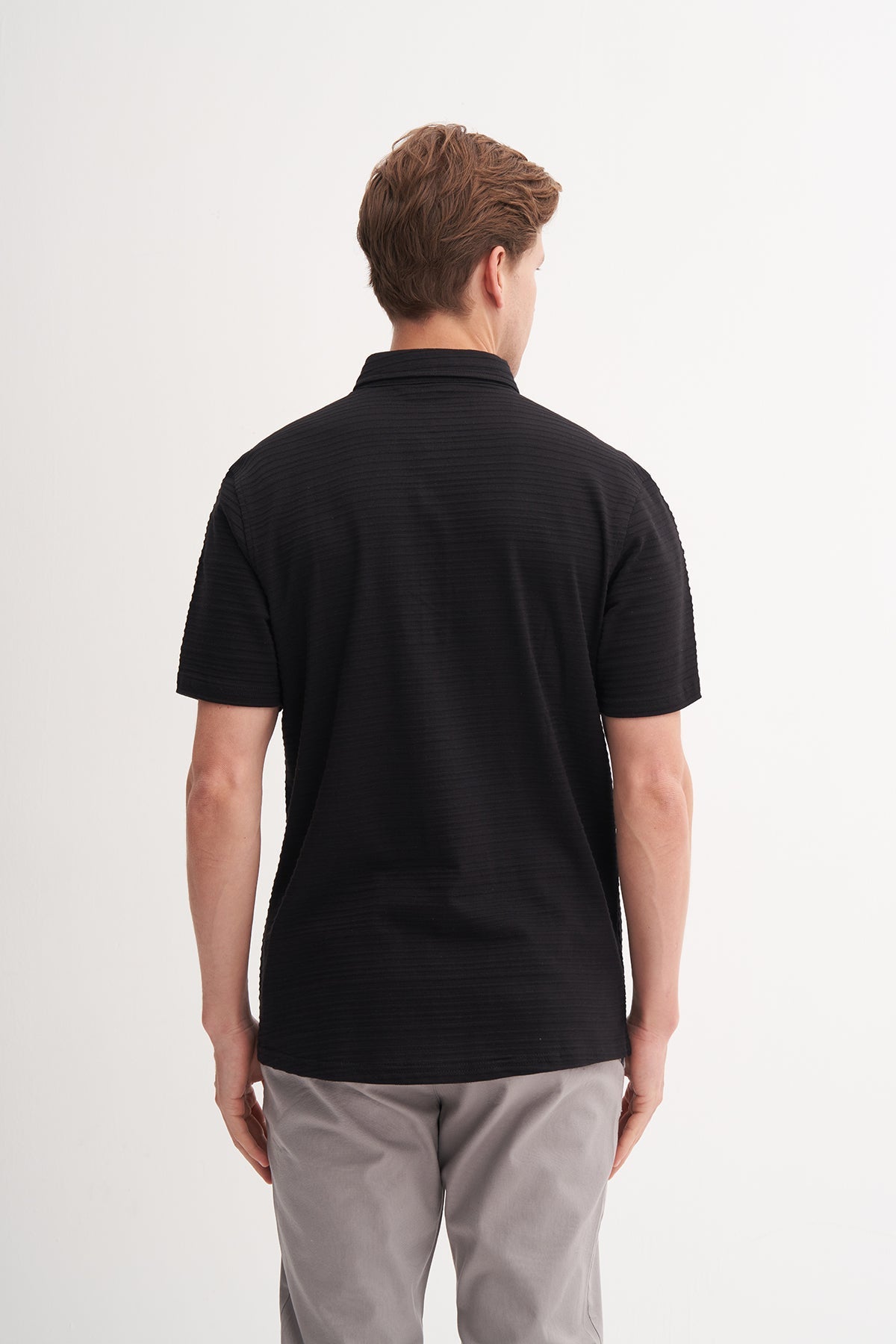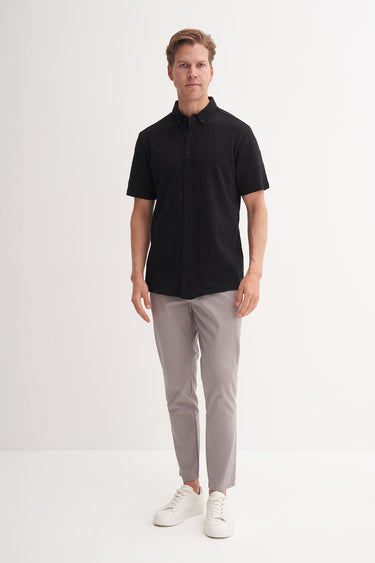 Regular Fit Çizgi Desenli Örme Kısa Kol Gömlek 2050