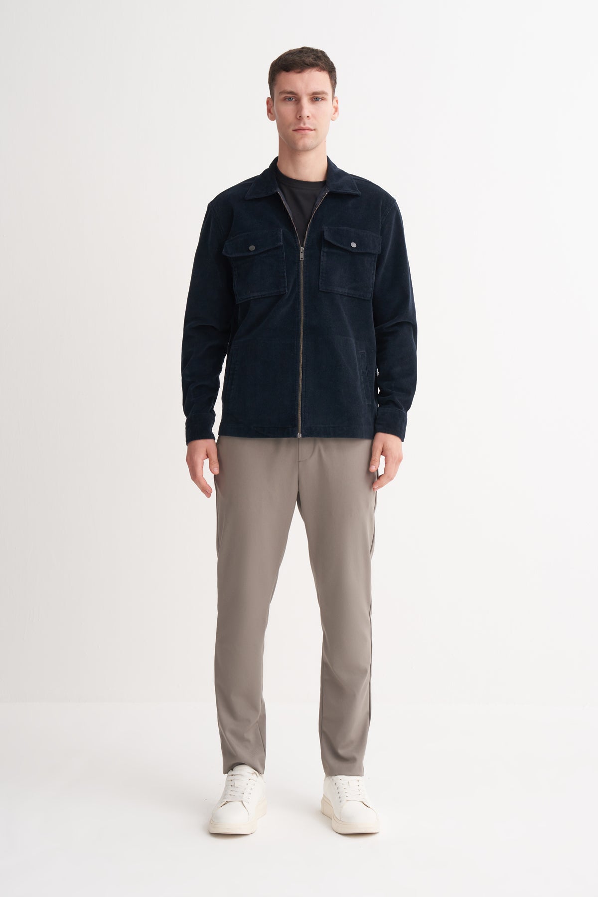 Regular Fit Kadife Yan Cepli Overshirt Gömlek