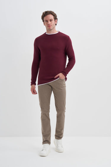 Slim Fit Cotonel Pamuk Karışımlı Vintage Bisiklet Yaka Kazak - 30100 - Cazador