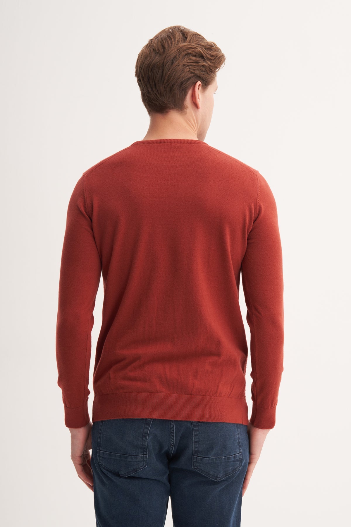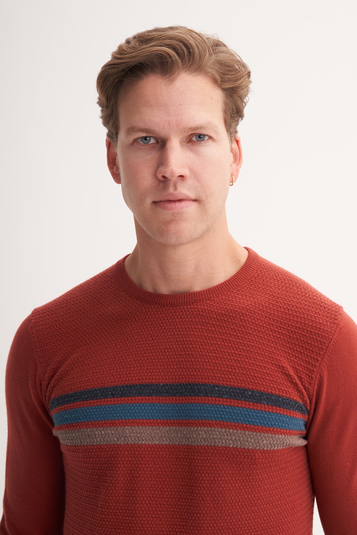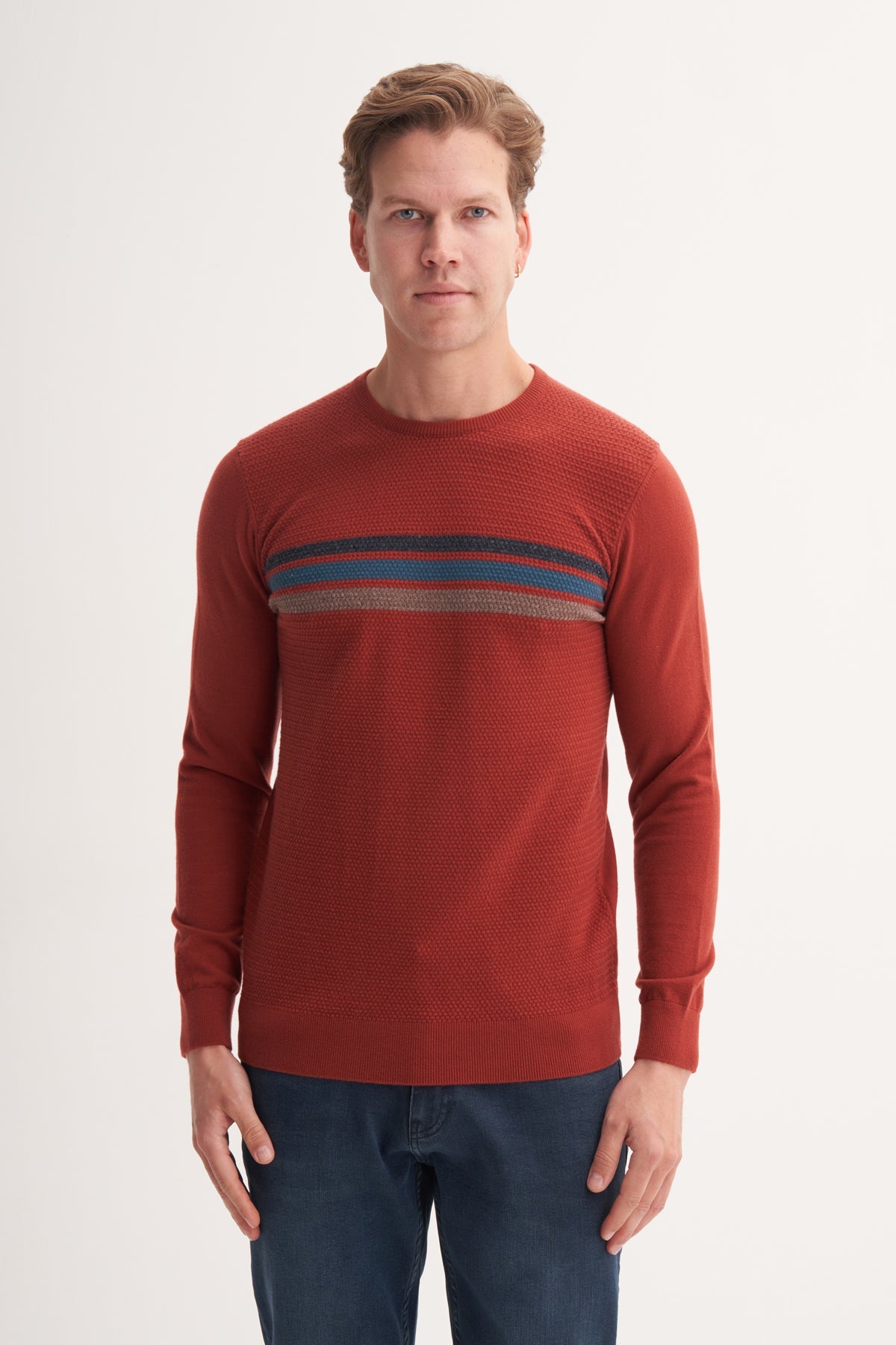 Soft Touch Slim Fit Basic Çizgi Baskılı Bisiklet Yaka Kazak-33135
