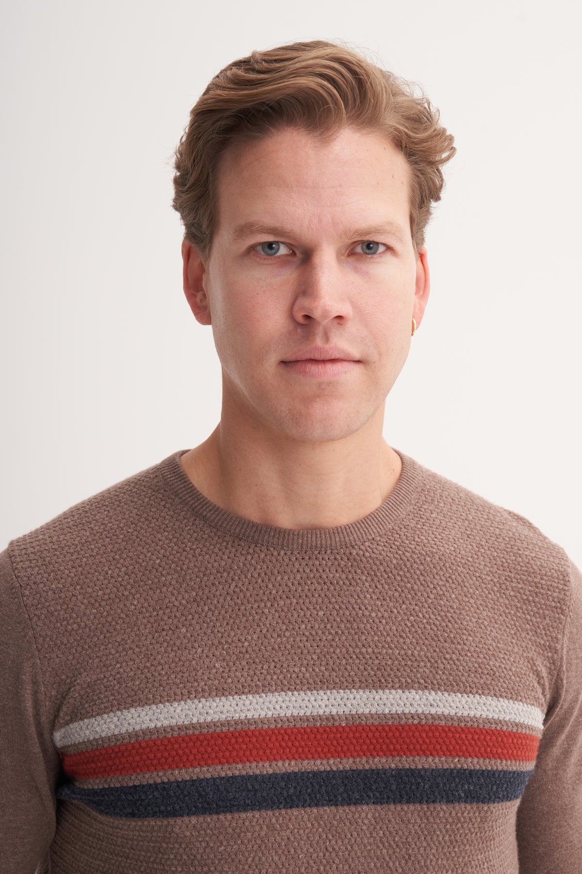 Soft Touch Slim Fit Basic Çizgi Baskılı Bisiklet Yaka Kazak-33135