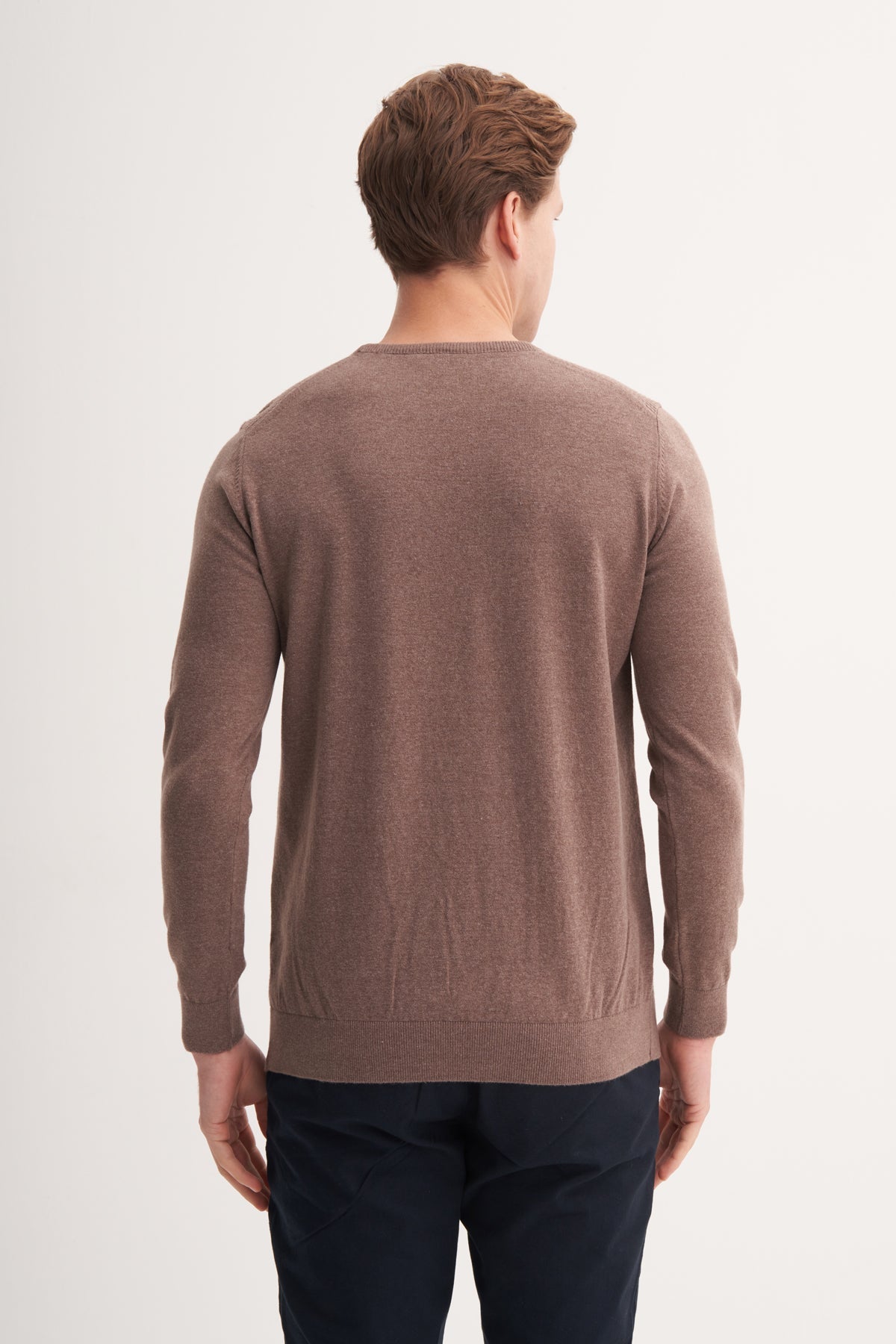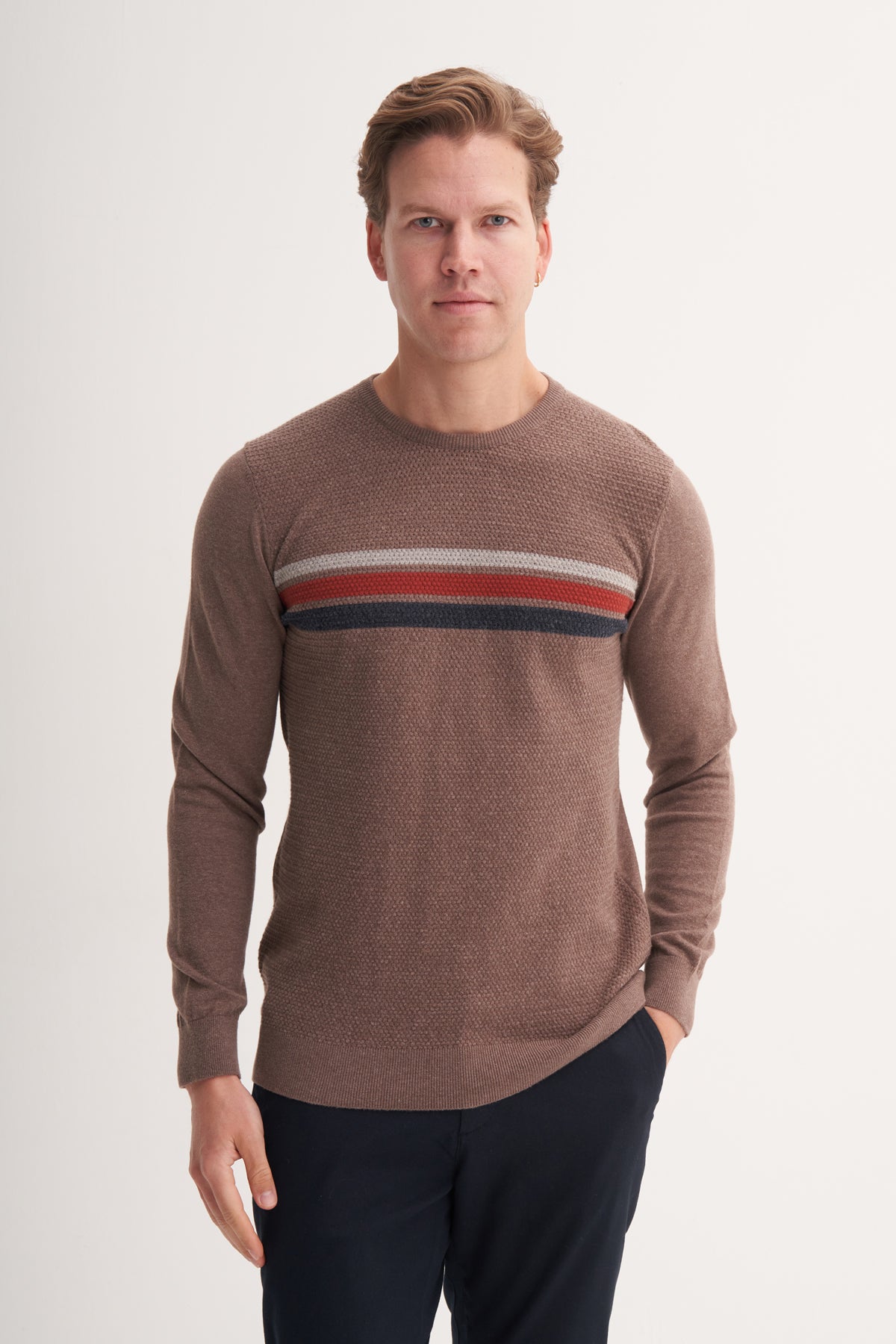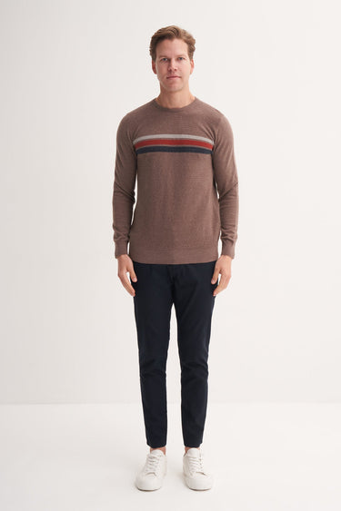 Soft Touch Slim Fit Basic Çizgi Baskılı Bisiklet Yaka Kazak - 33135 - Cazador