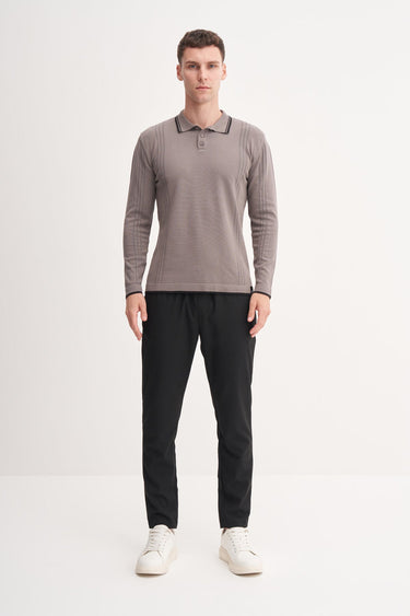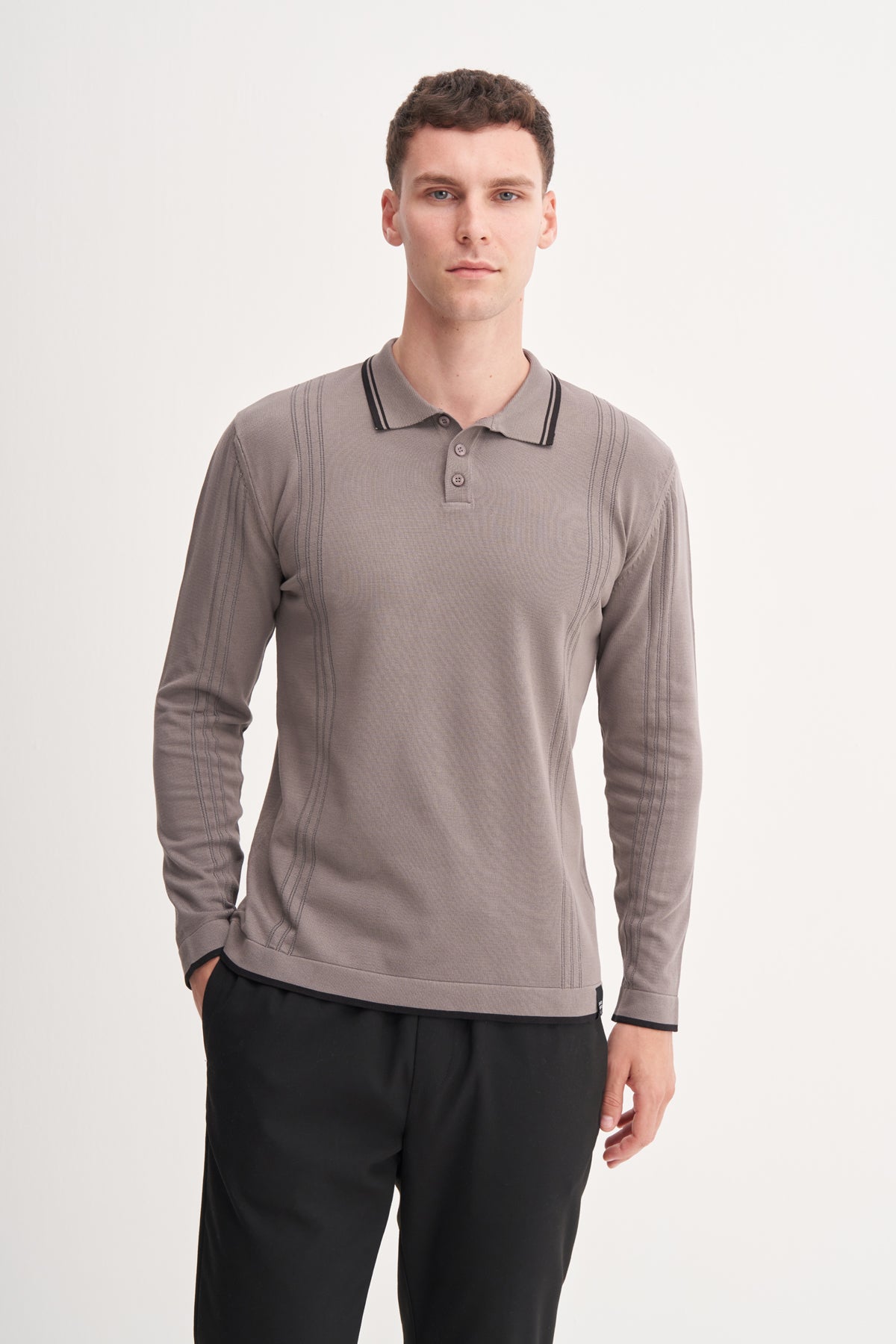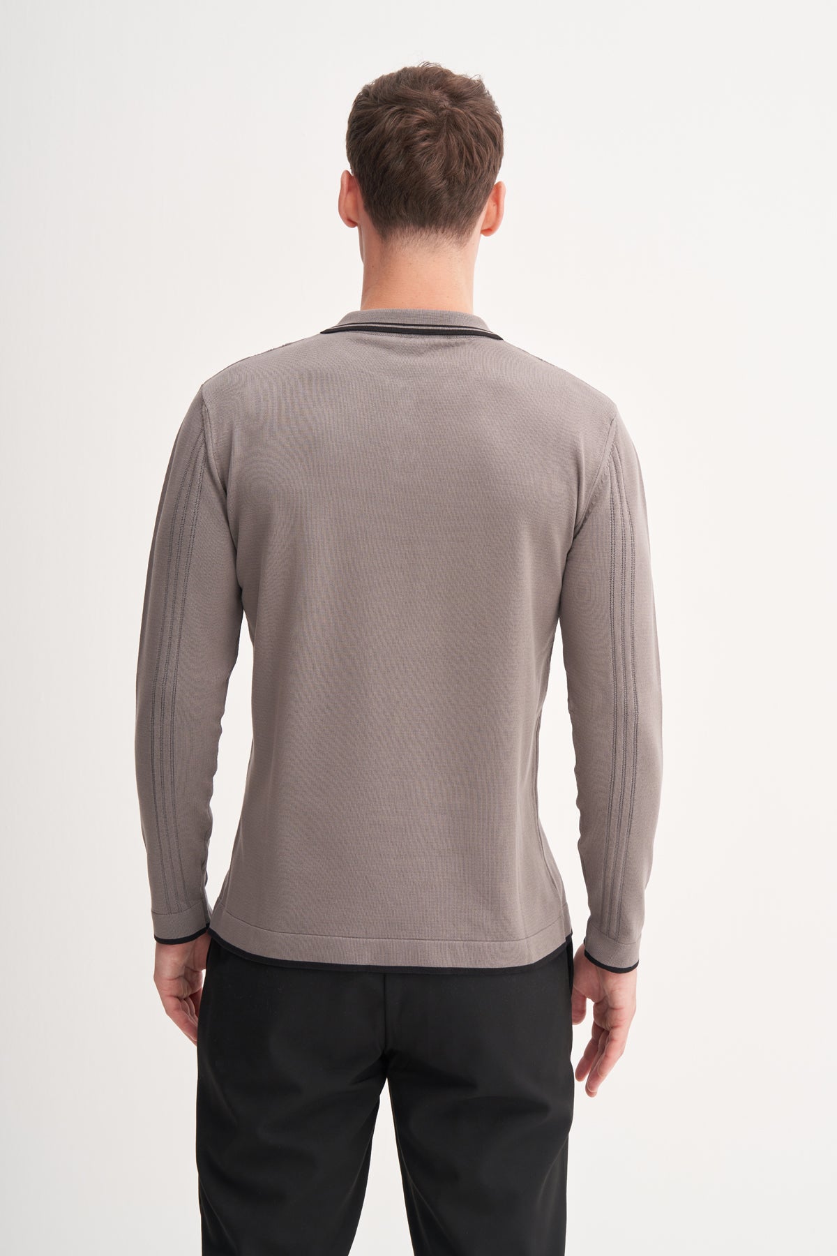 Slim Fit Viskon Karışımlı Basic Çizgi Desenli Polo Yaka Kazak-33035