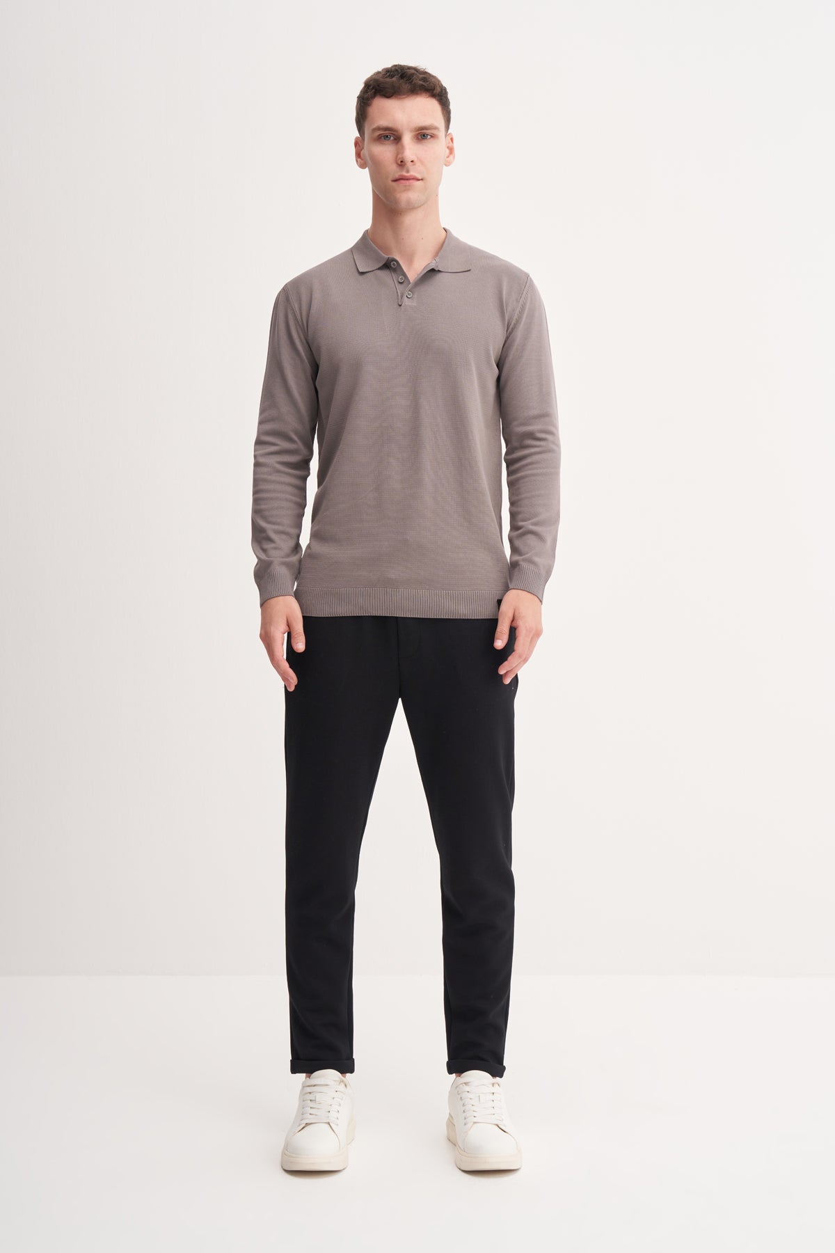 Slim Fit Viskon Kumaş Basic Polo Yaka Kazak-33015