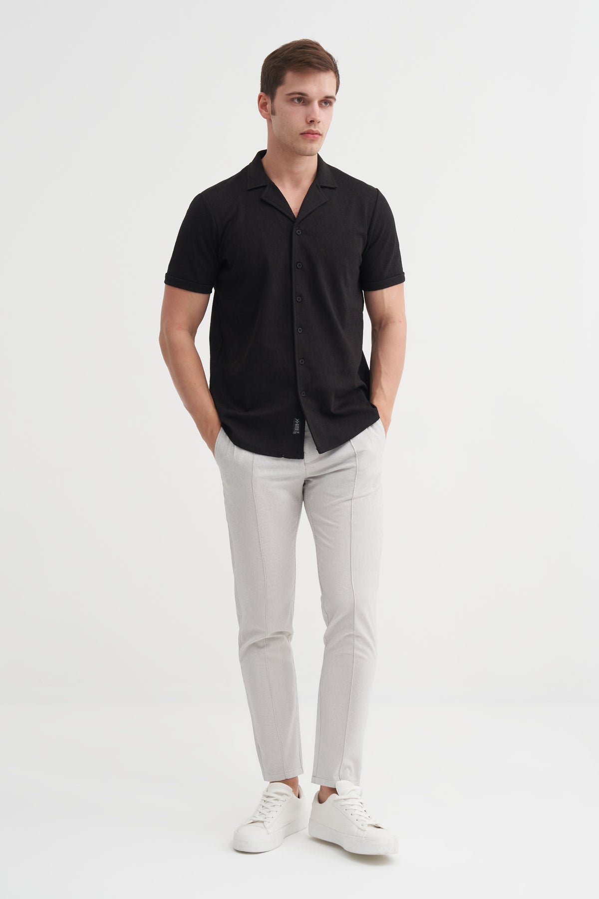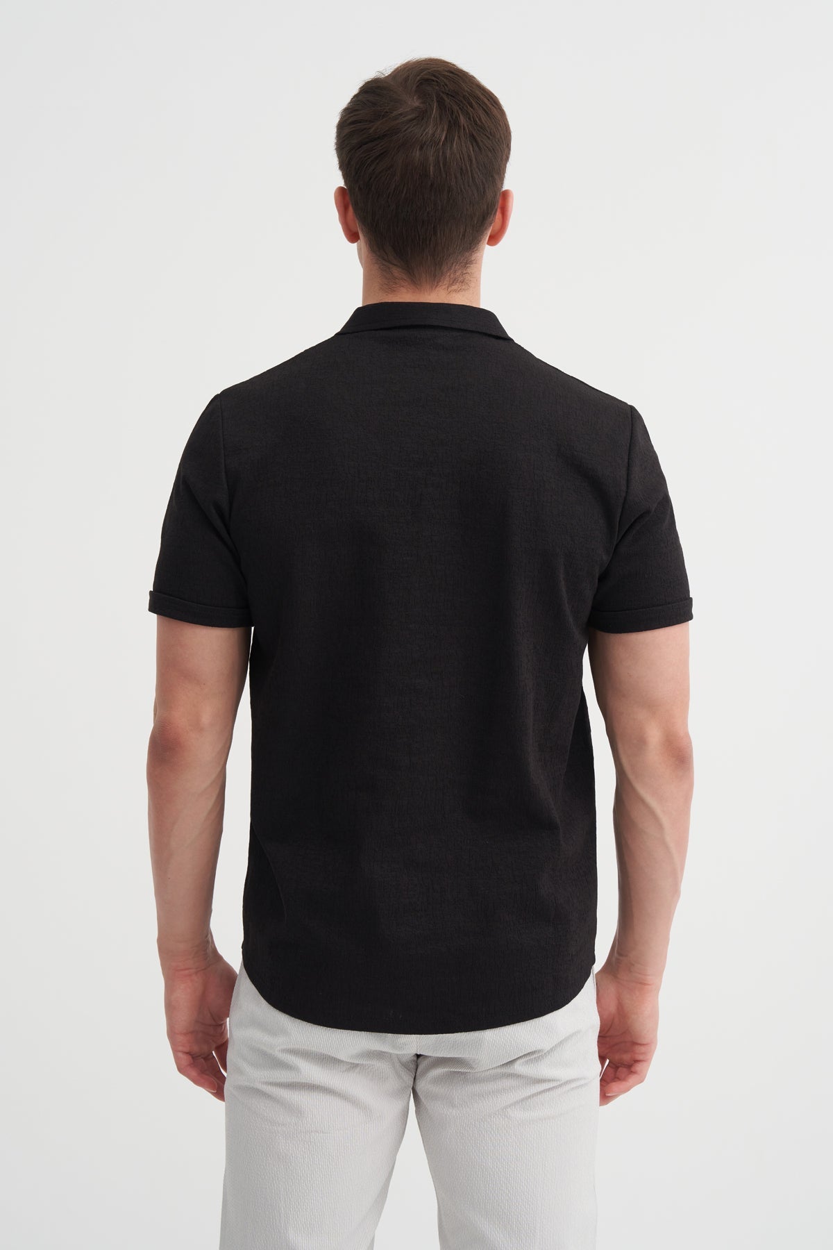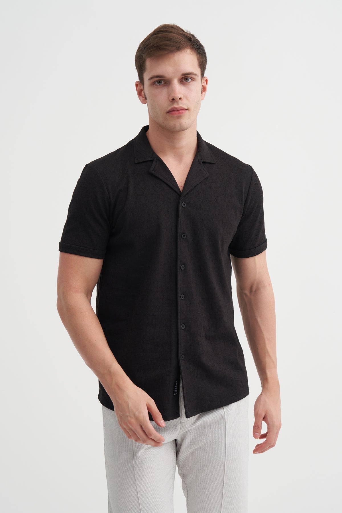 Regular Fit Doku Desenli Örme Kısa Kol Gömlek 2049