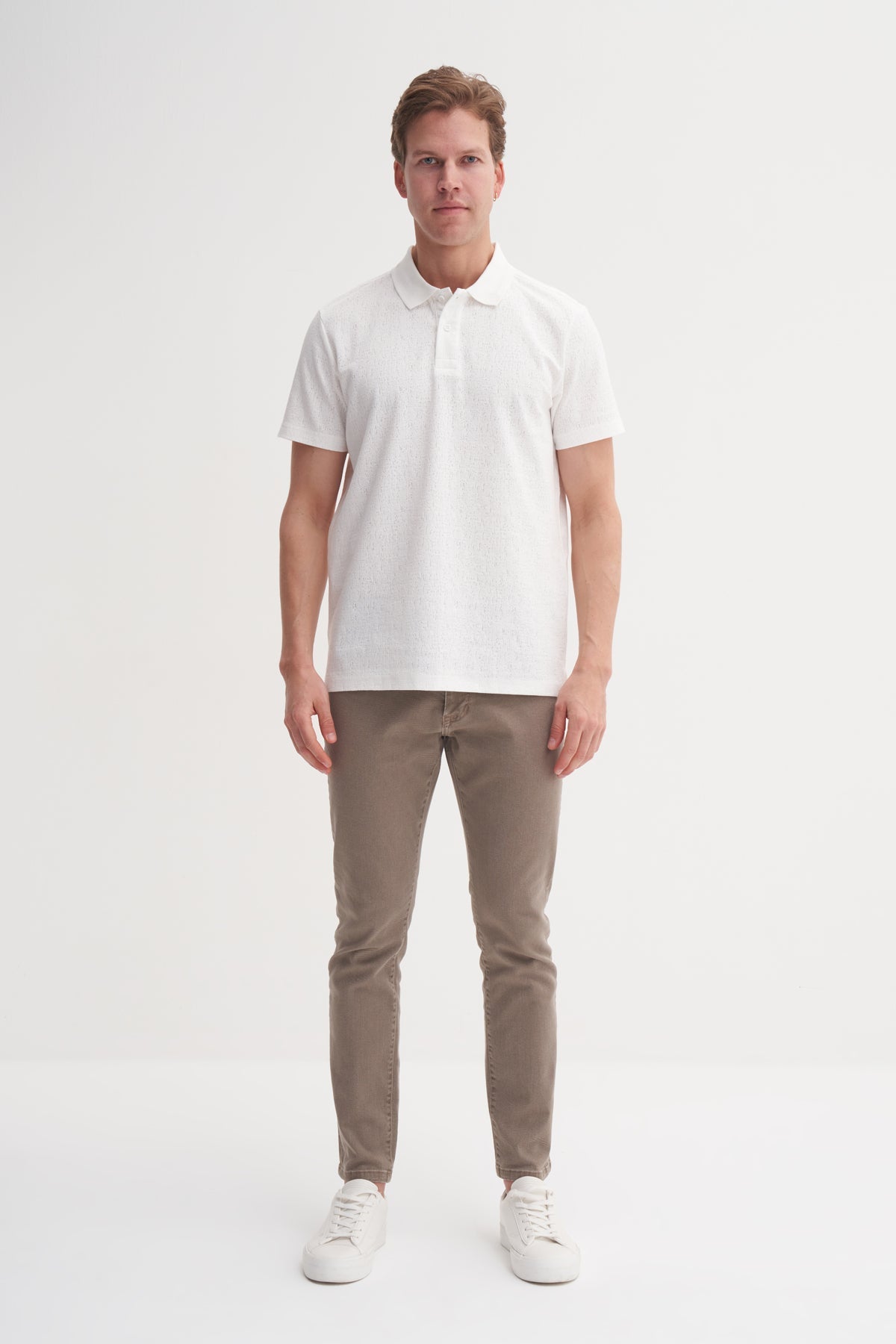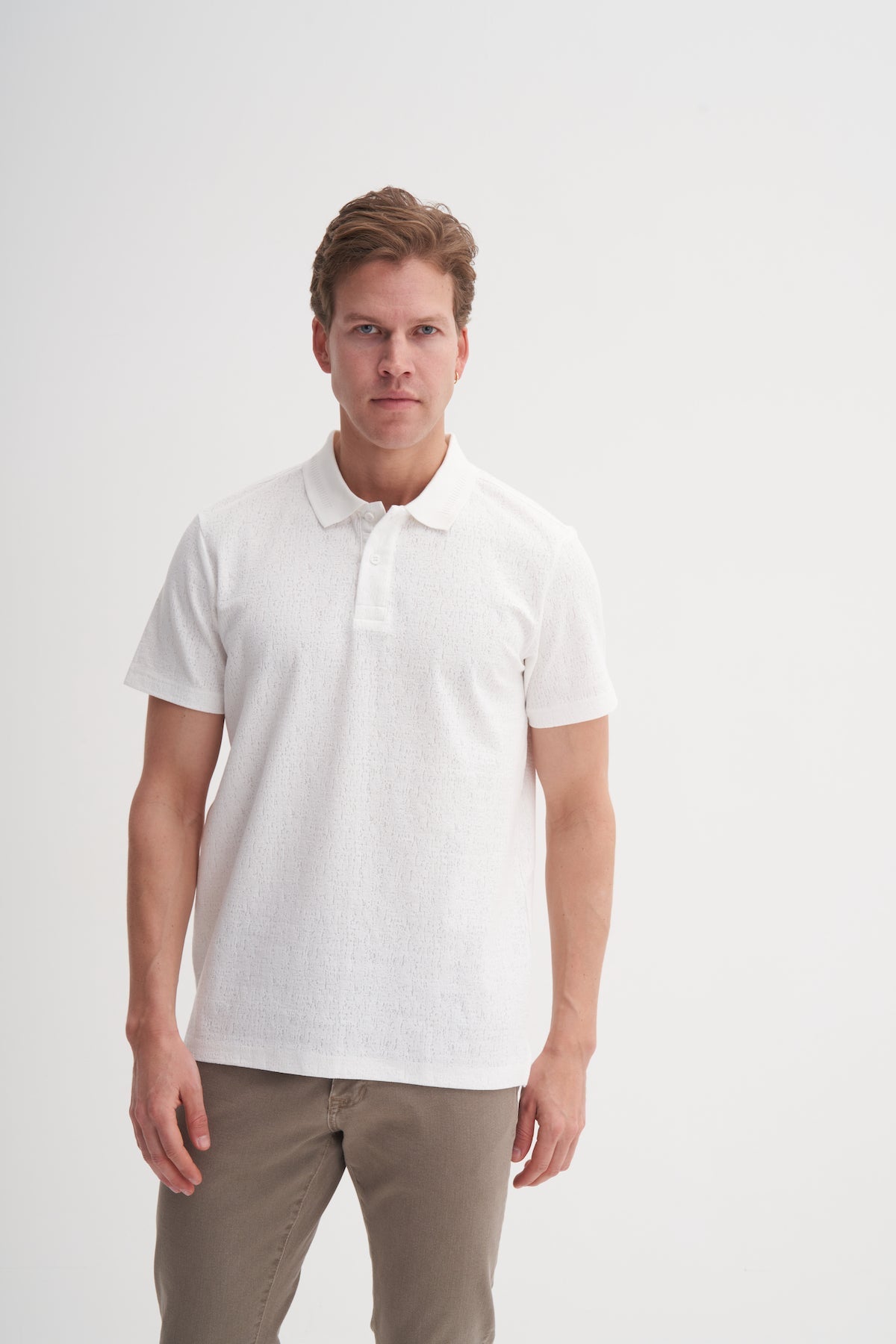 Regular Fit Polo Yaka Örme Jakarlı Tişört 4153