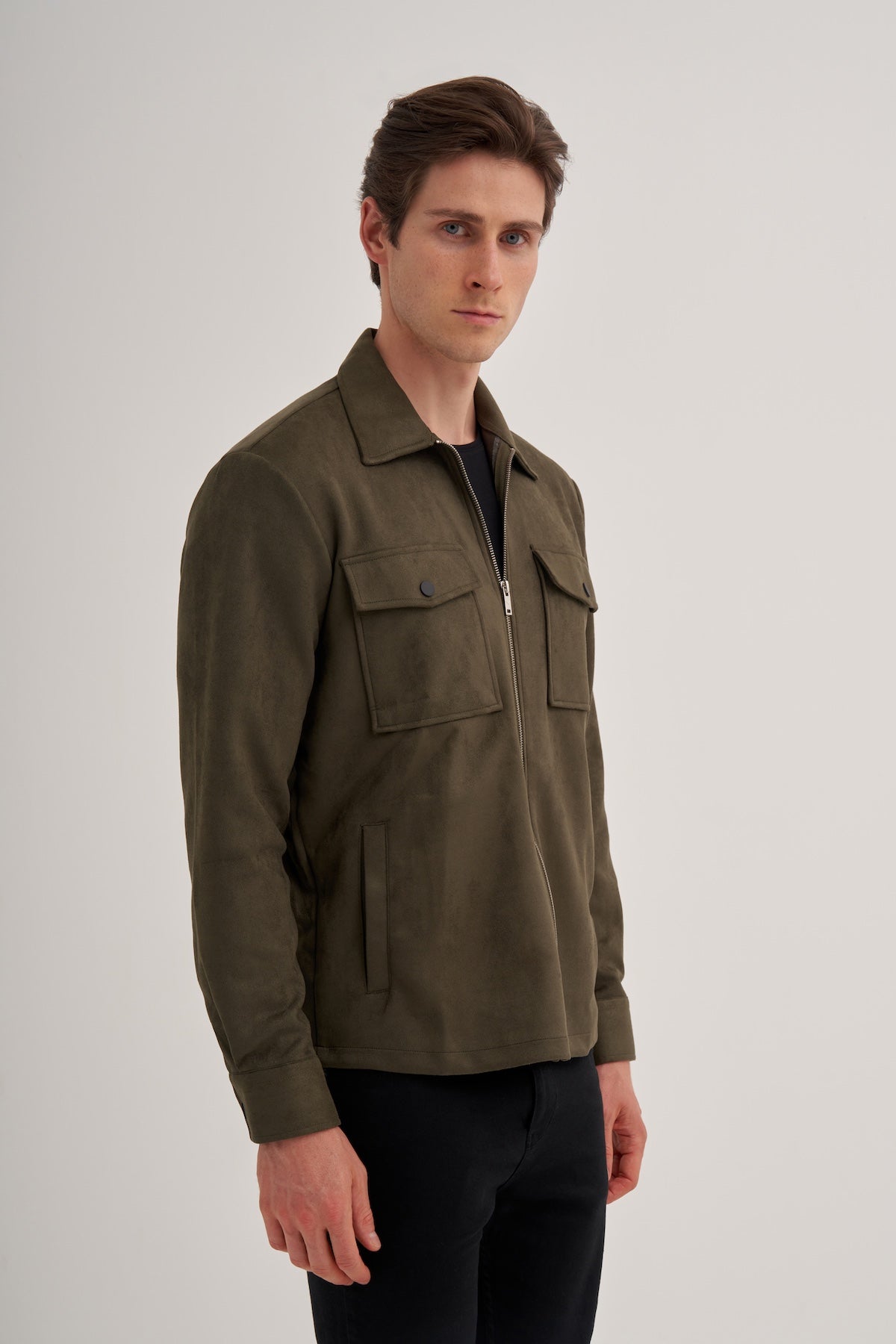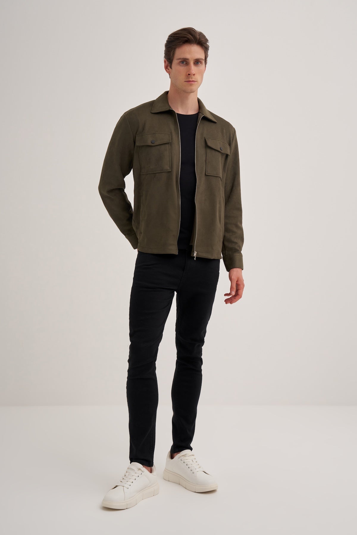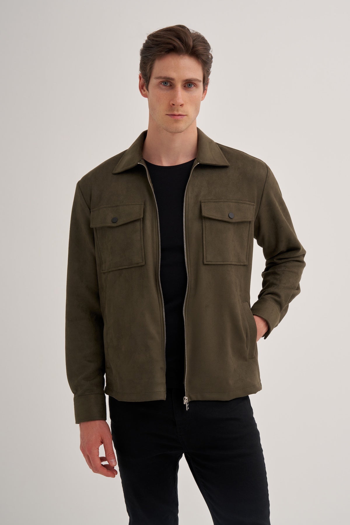 Regular Fit Süet Cep Detaylı Overshirt Gömlek-20050