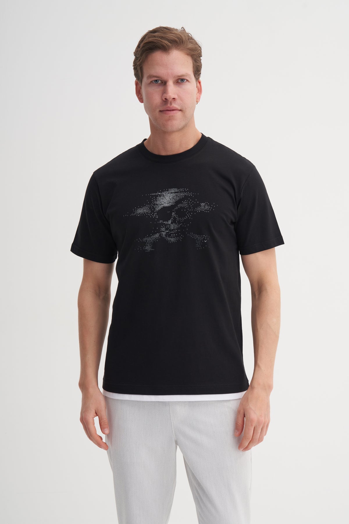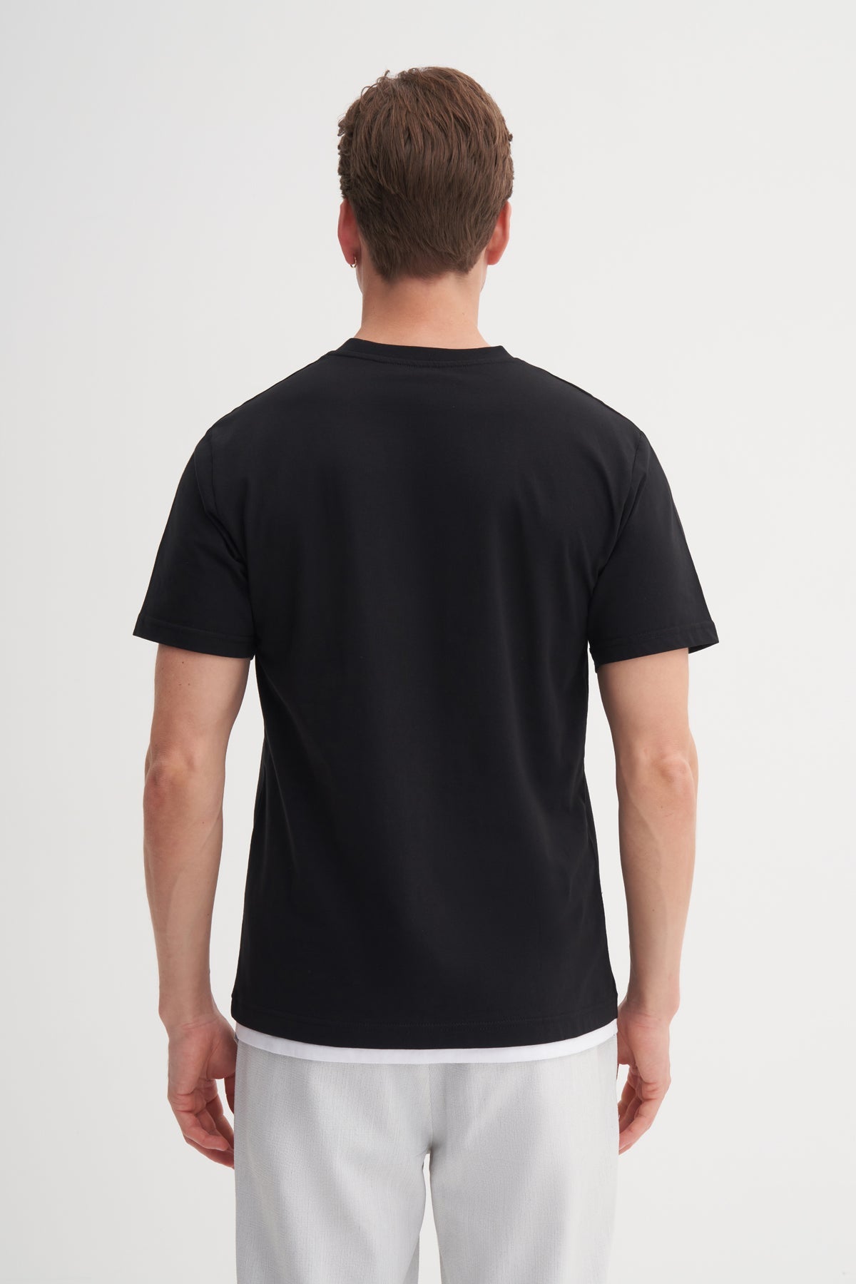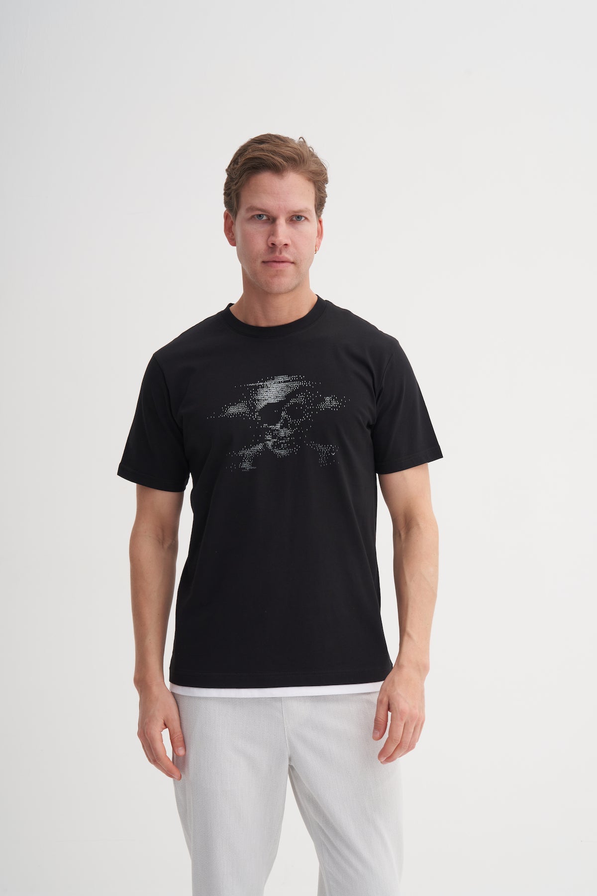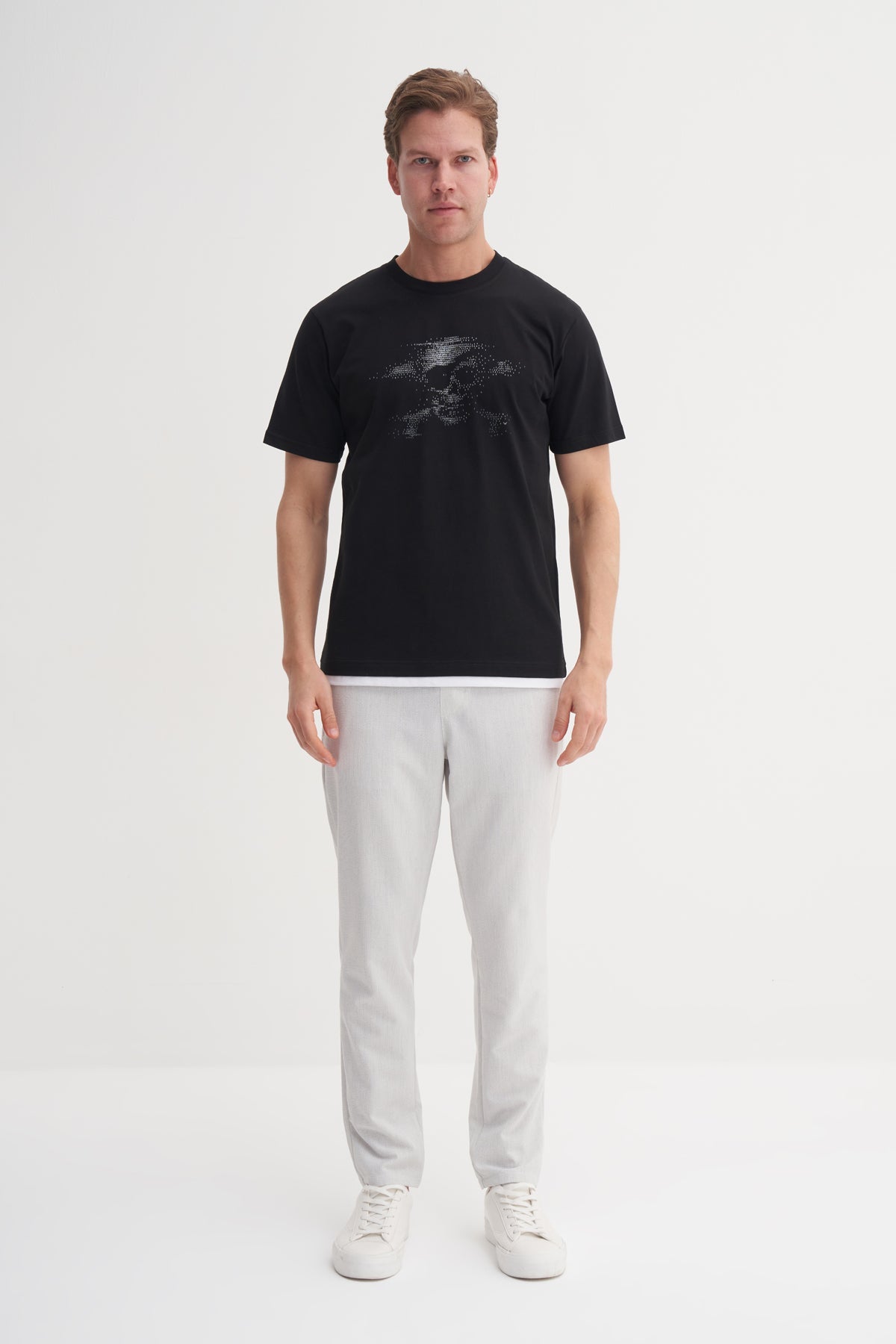 Bisiklet Yaka Regular Fit Pamuklu Desenli Tişört 4017