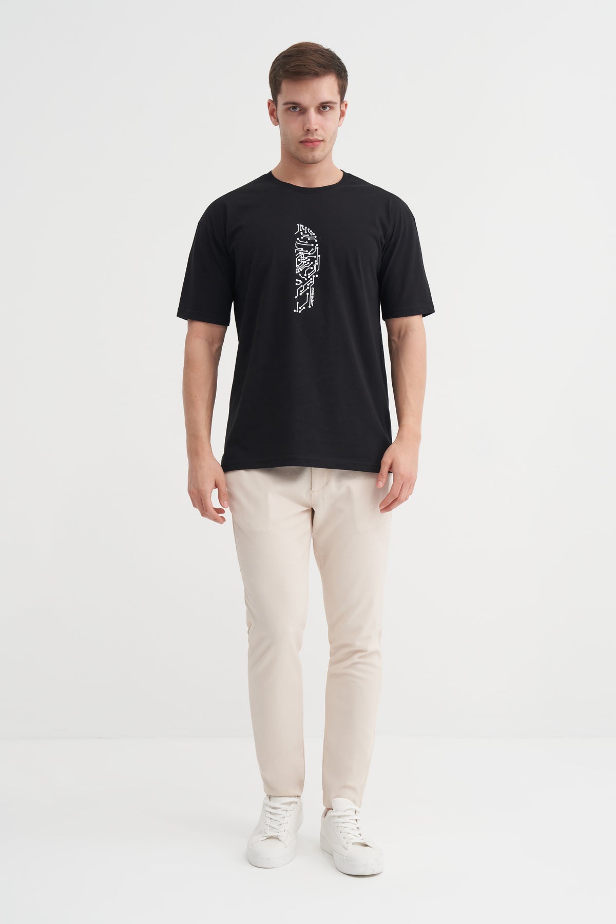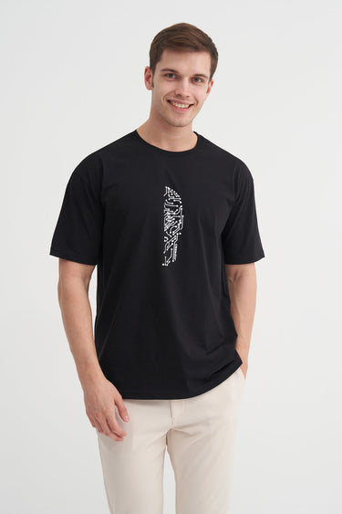 Bisiklet Yaka Relax Fit Pamuklu Desenli Tişört 4018