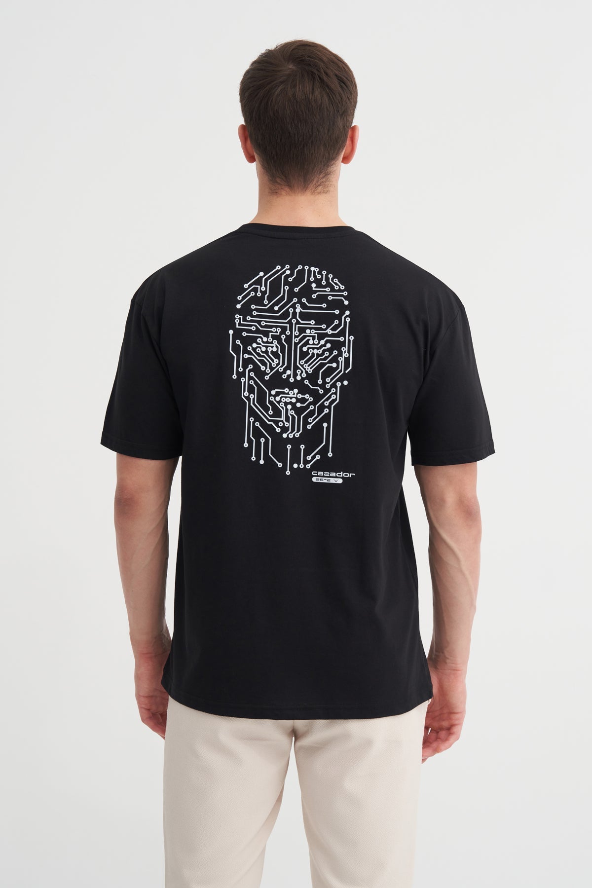 Bisiklet Yaka Relax Fit Pamuklu Desenli Tişört 4018 - Cazador