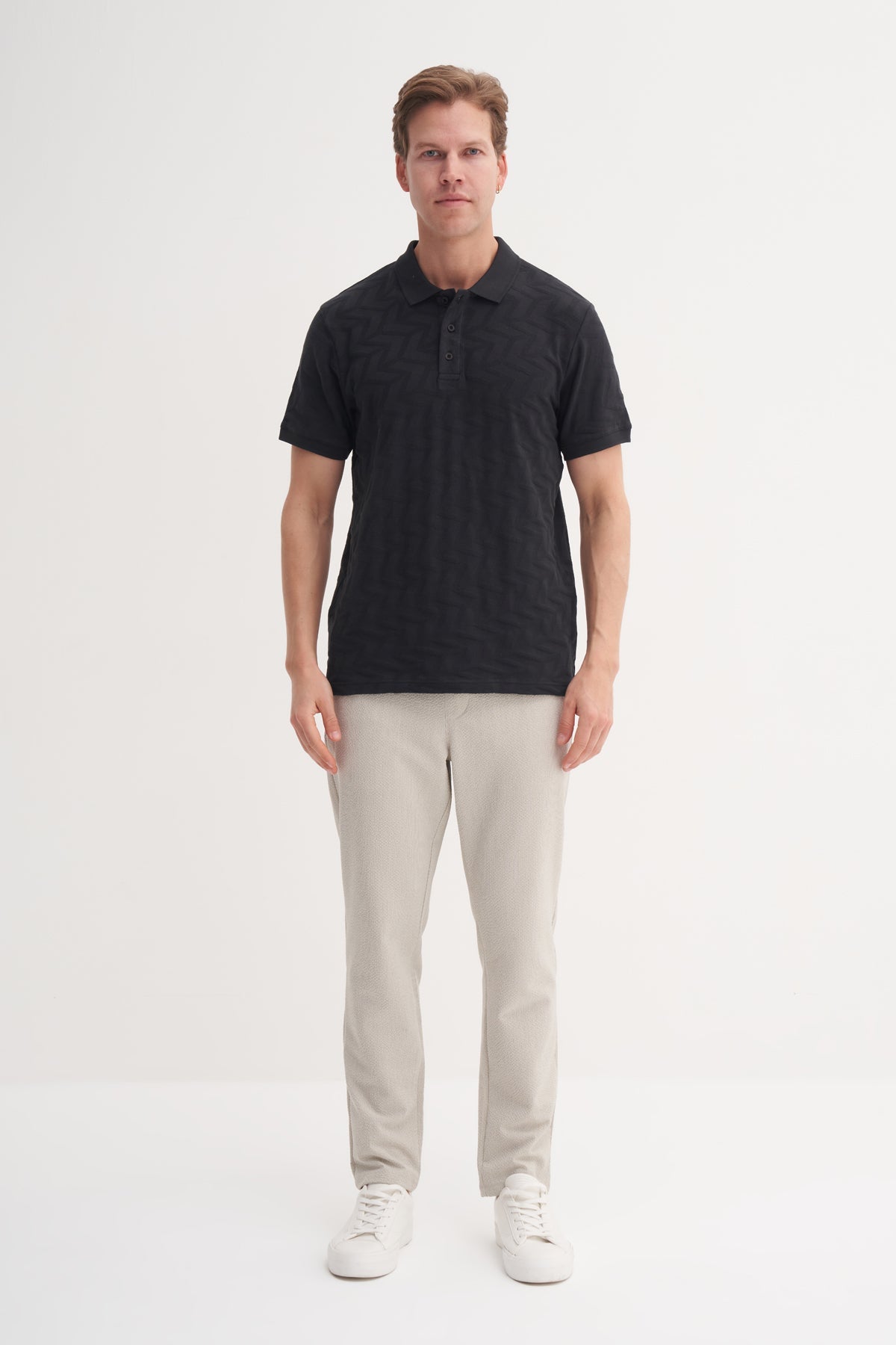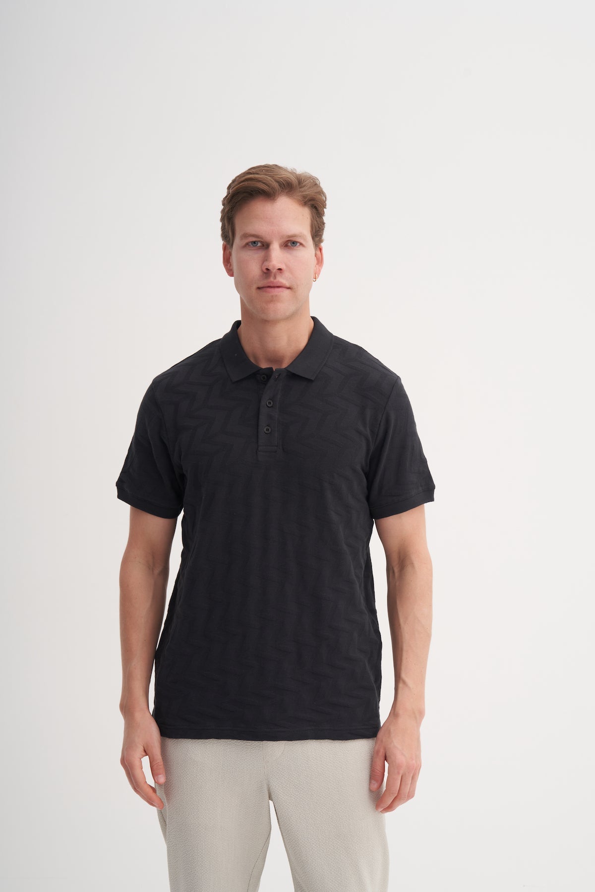 Polo Yaka Regular Fit Örme Jakarlı Tişört 4062