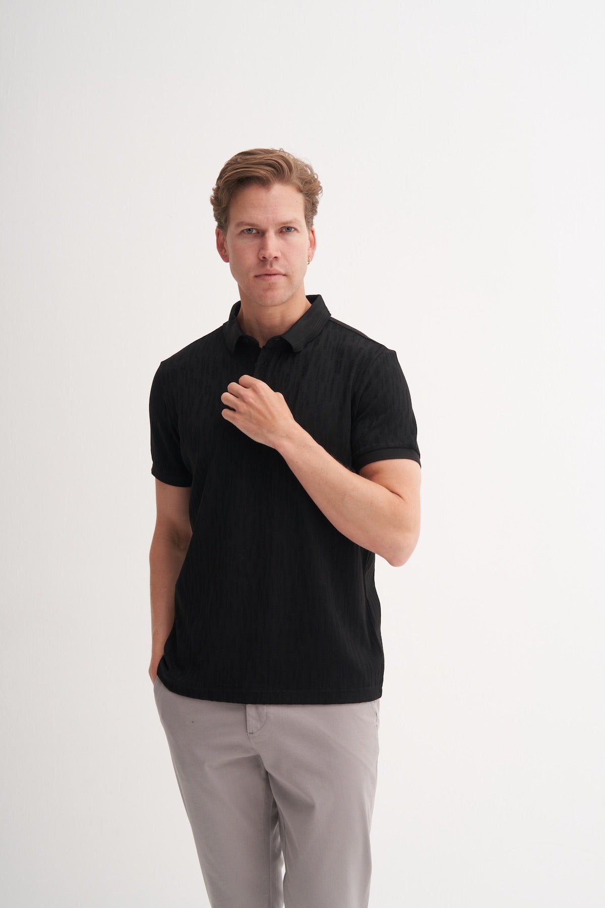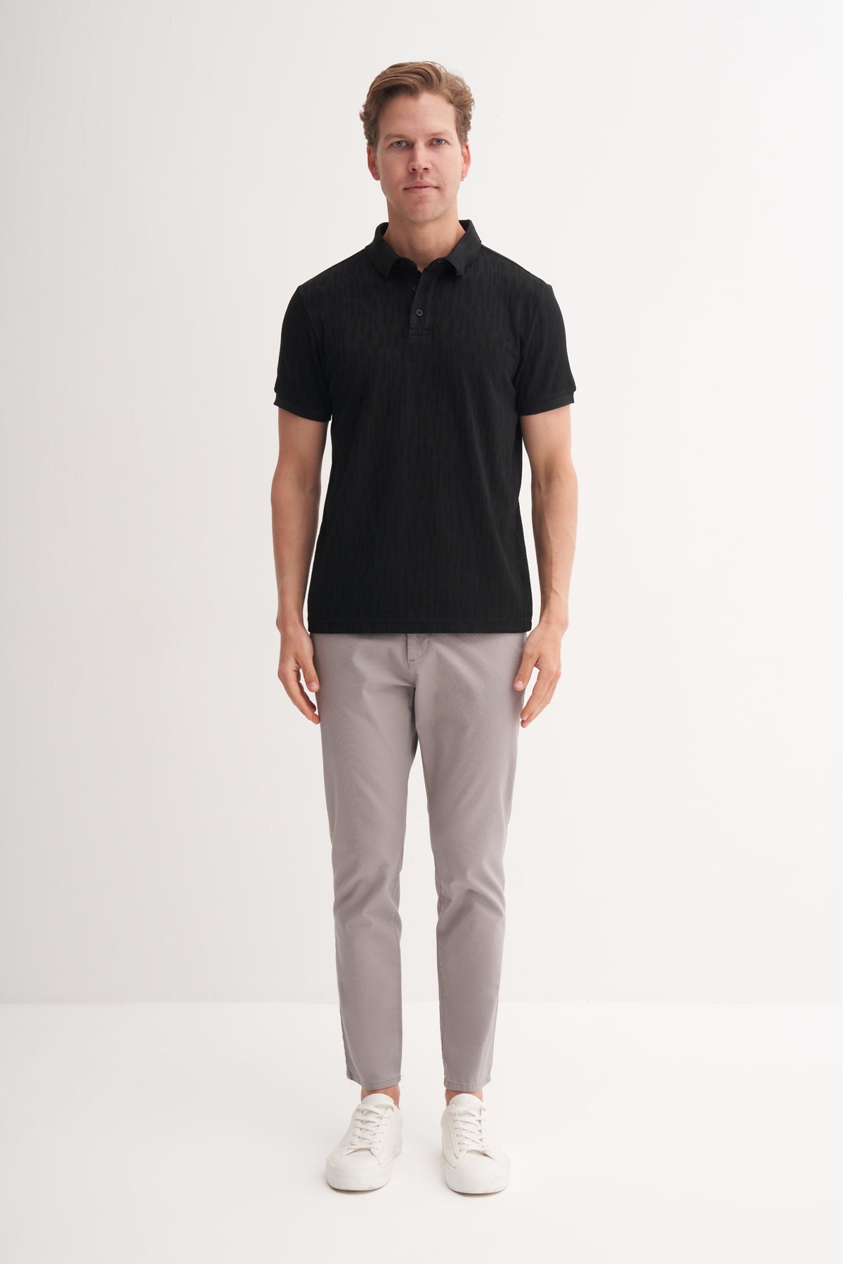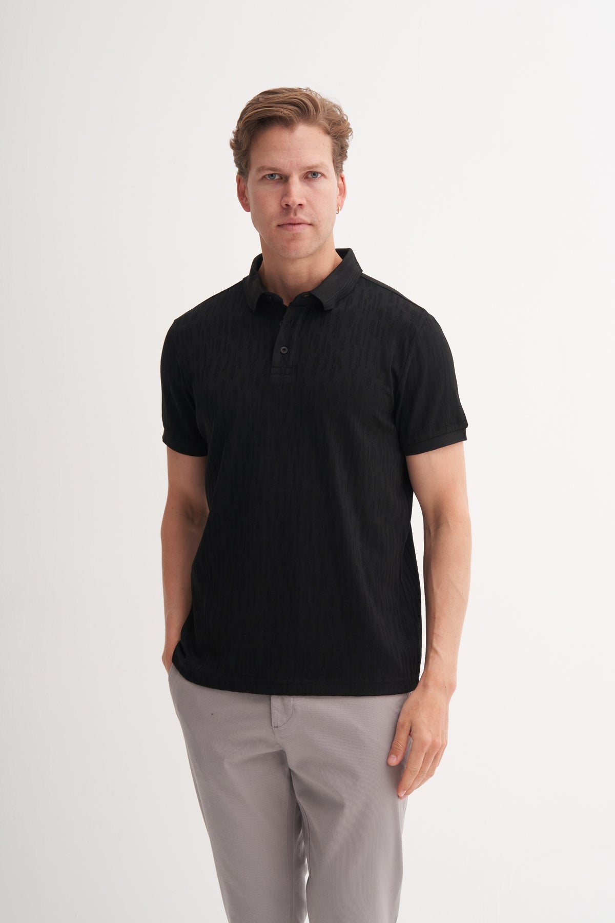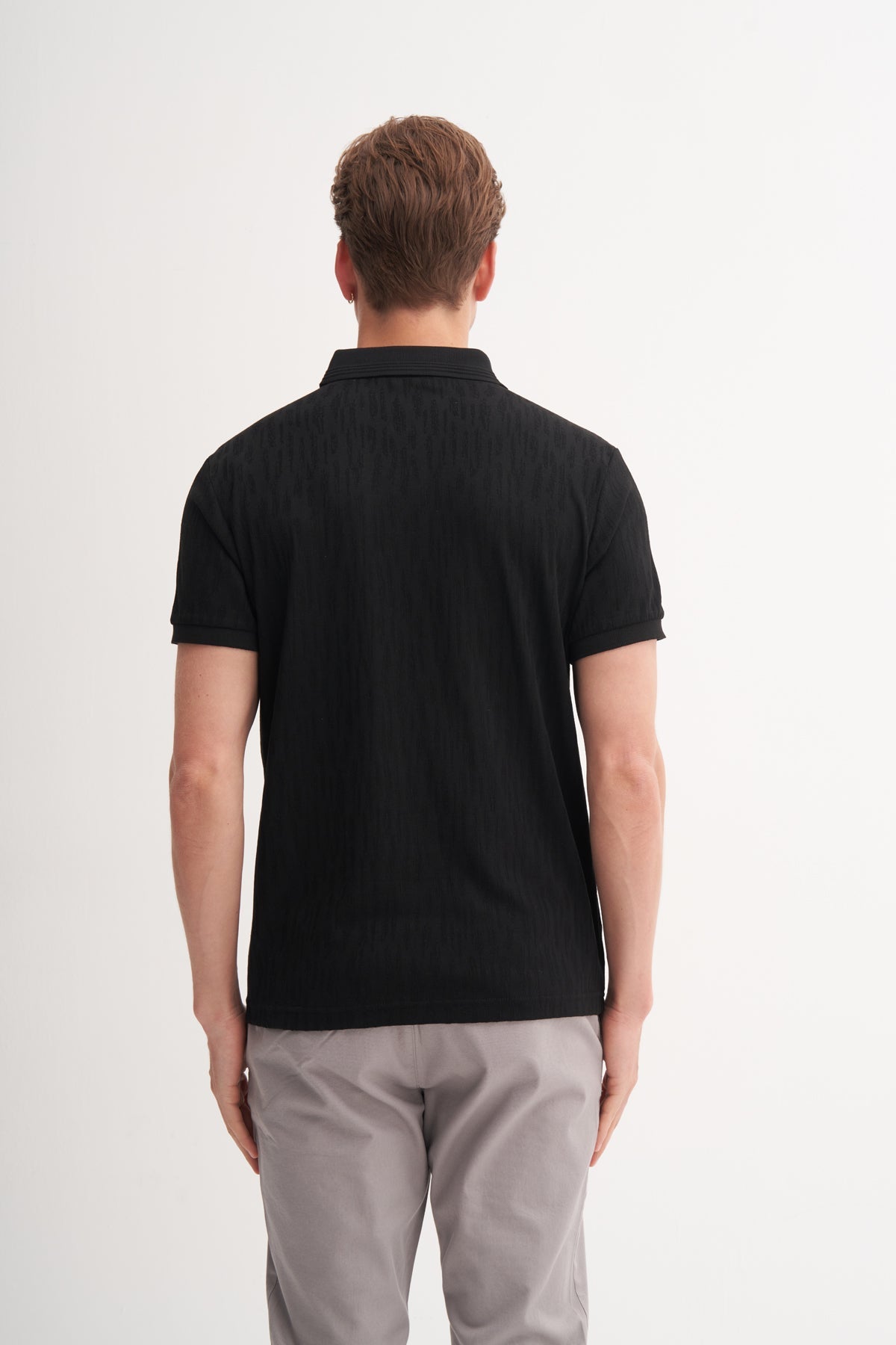 Polo Yaka Regular Fit Örme Desenli Tişört 4077
