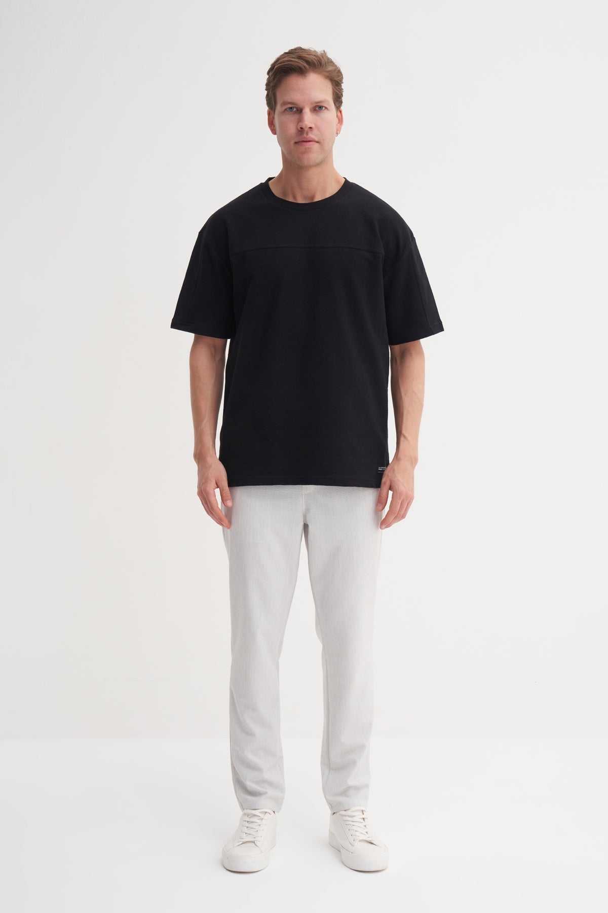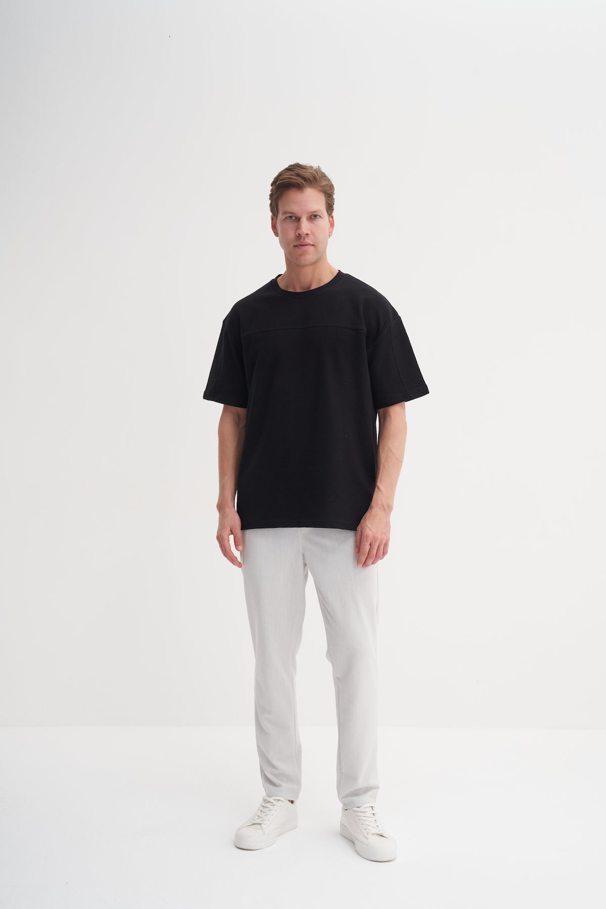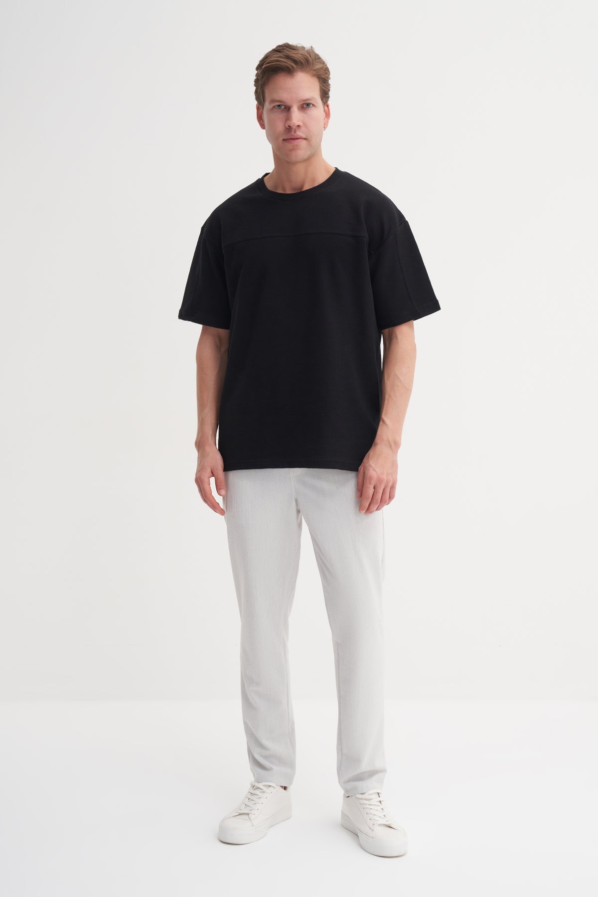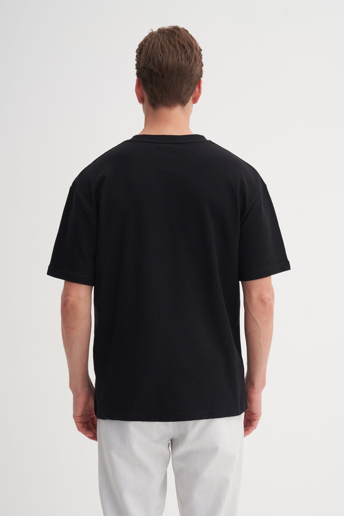Bisiklet Yaka Relax Fit Pamuklu Dokulu Tişört 4125