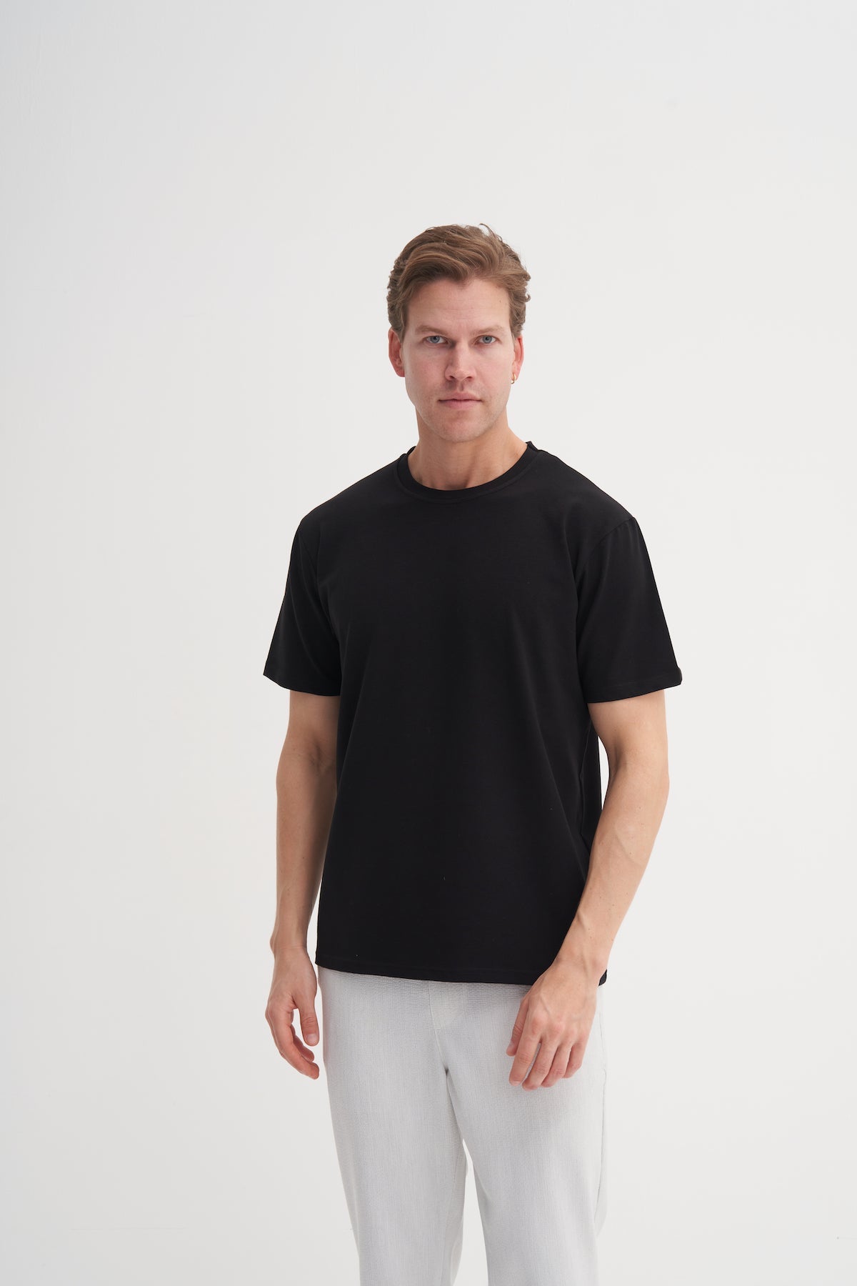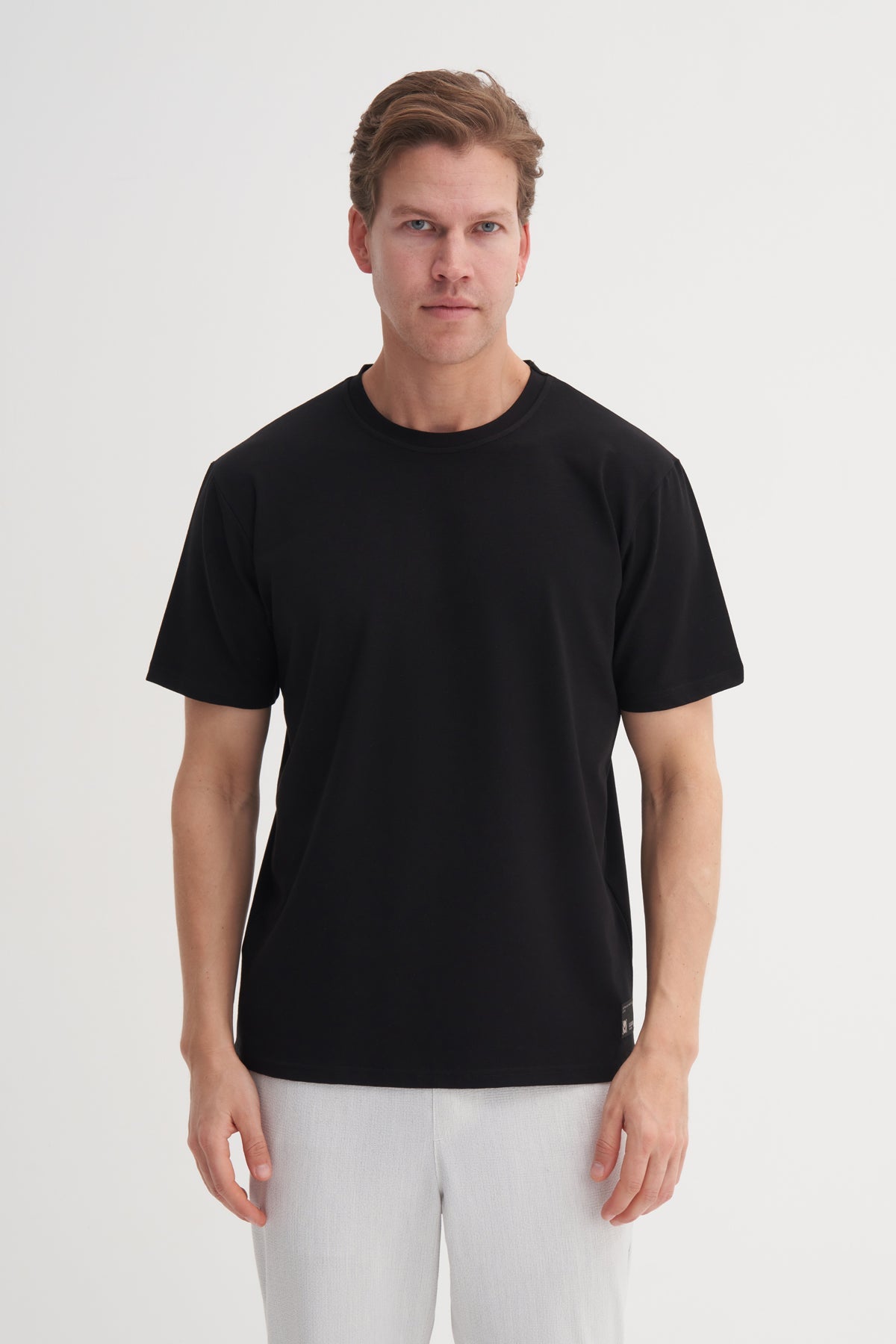 Bisiklet Yaka Regular Fit Rahat Likralı Düz Tişört 4142