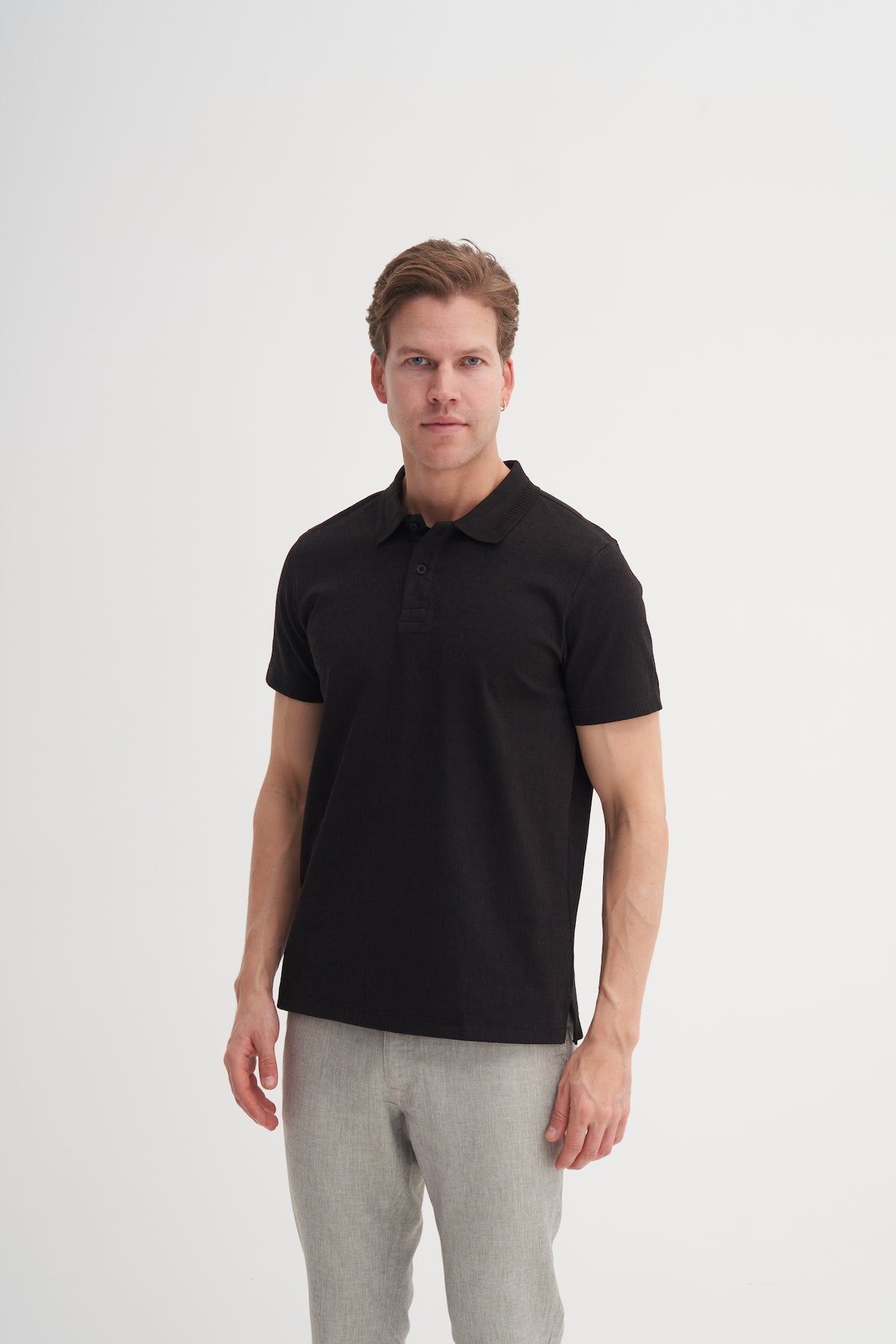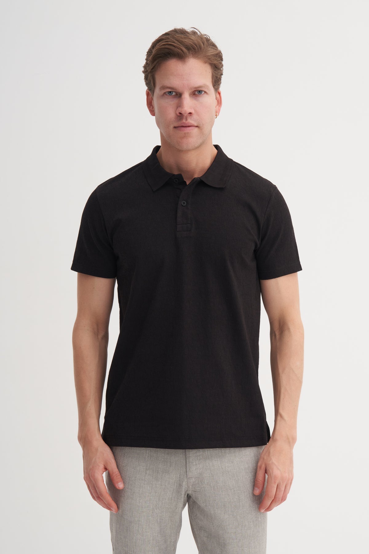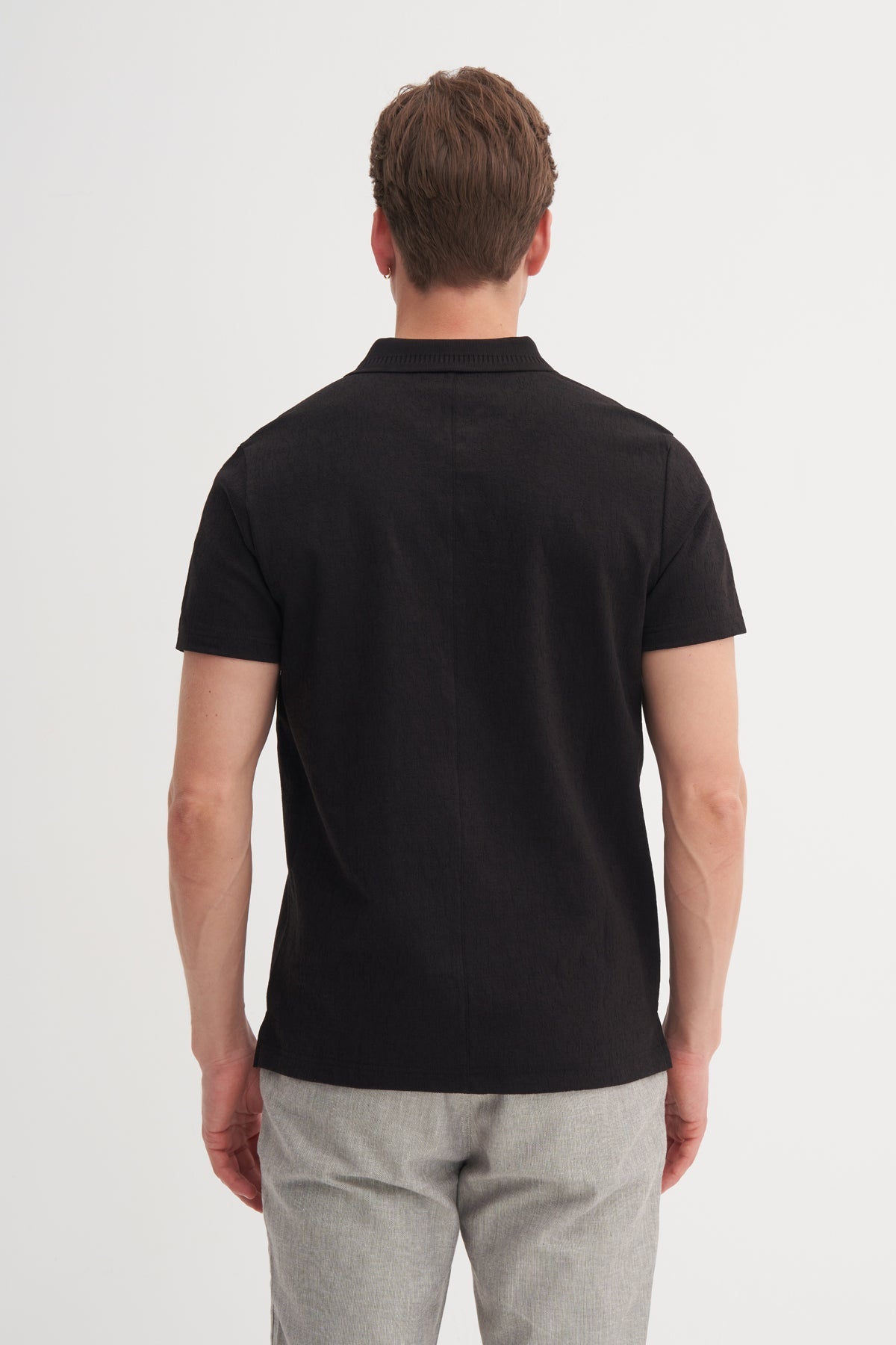 Regular Fit Polo Yaka Örme Jakarlı Tişört 4153