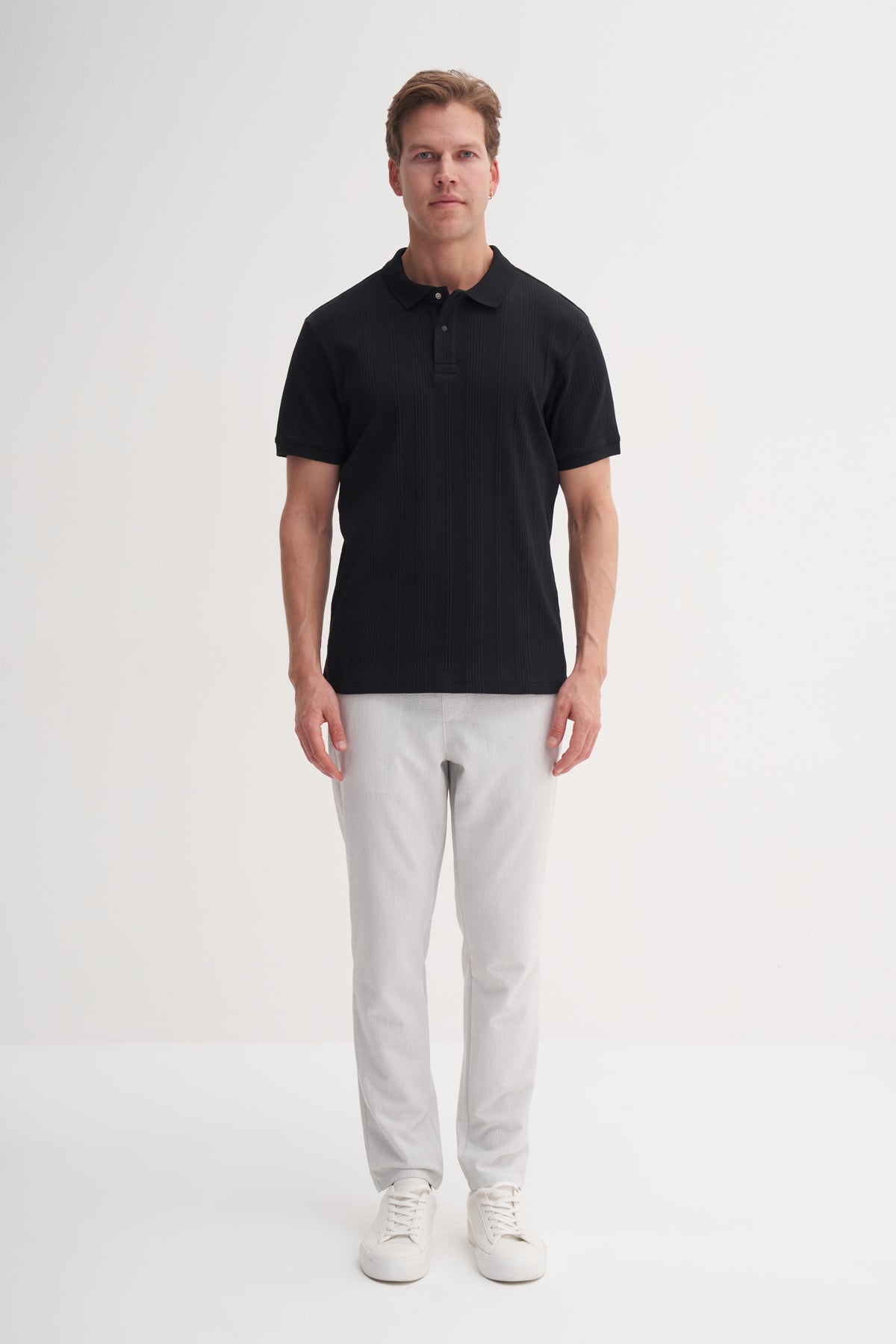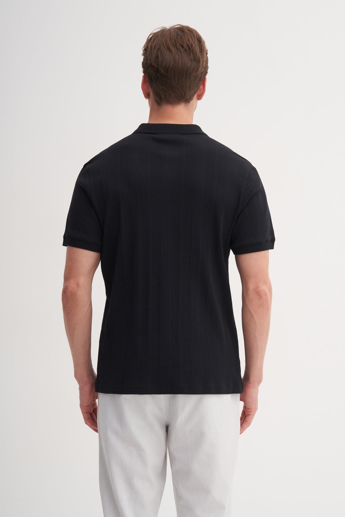 Polo Yaka Slim Fit Likarlı Dokulu Tişört 4164
