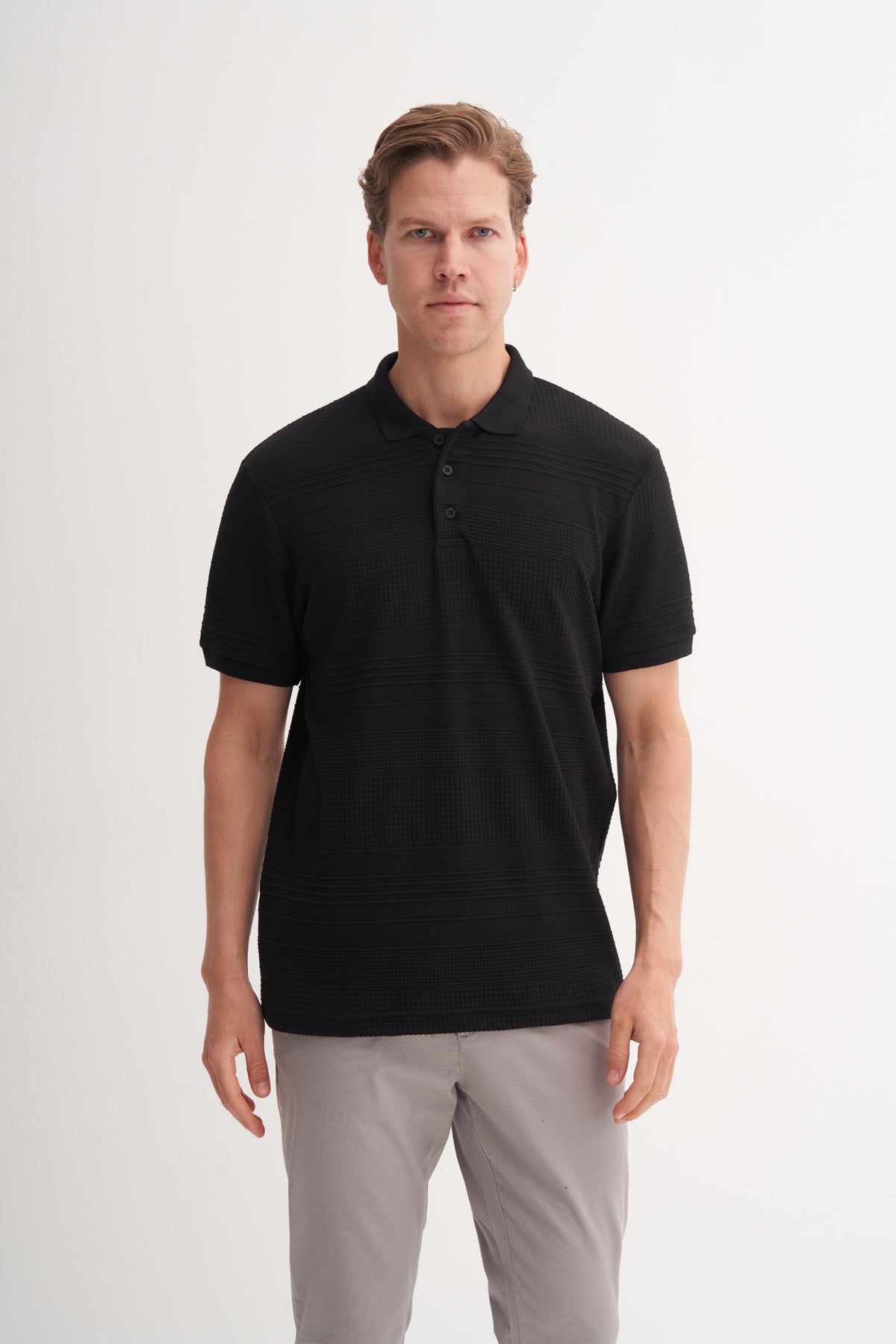Polo Yaka Regular Fit Örme Dokulu Tişört 4208