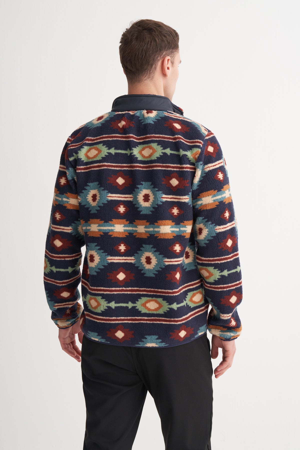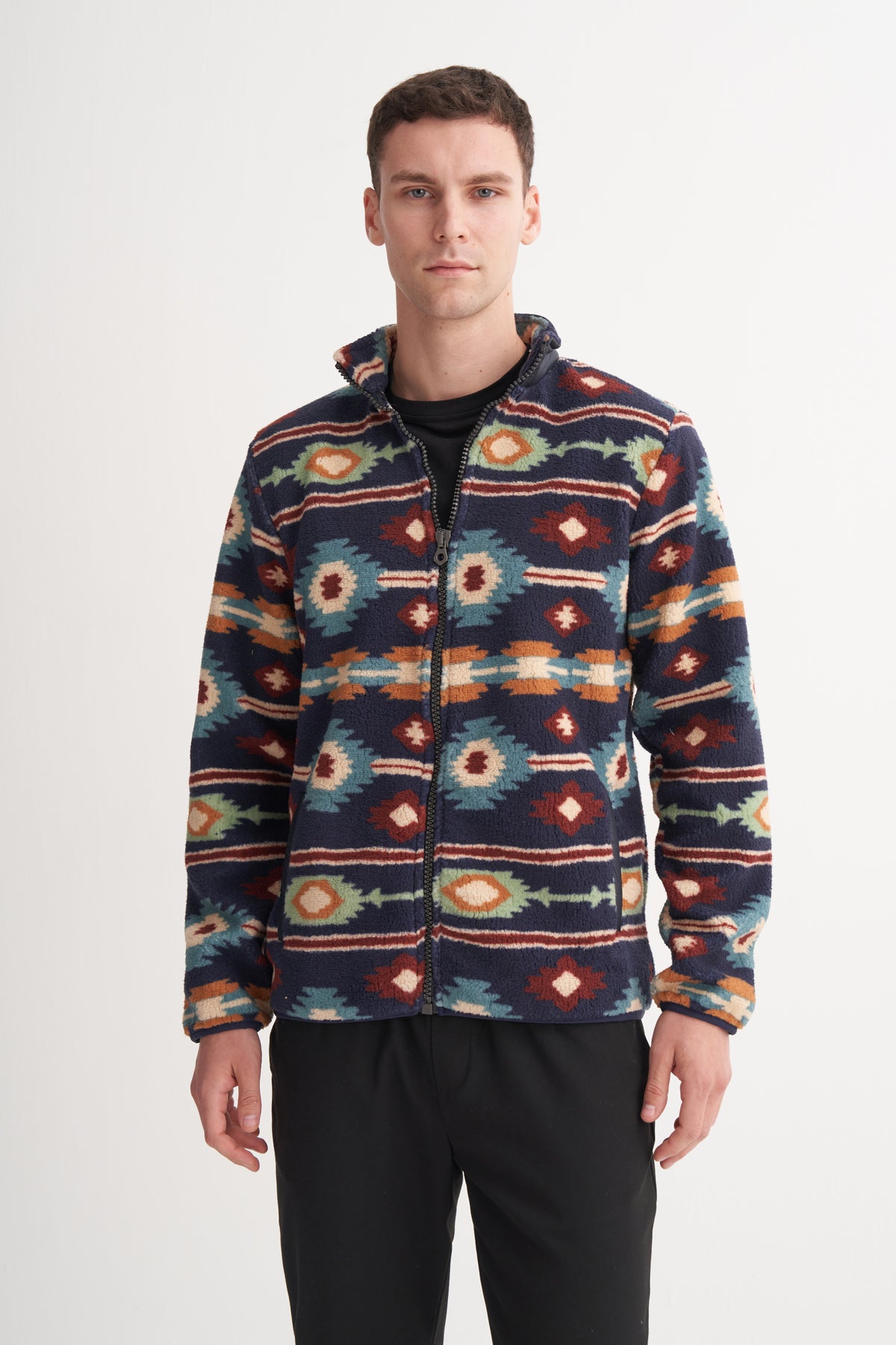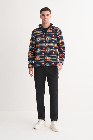 Desenli Kürklü Kumaş Vintage Regular Fit Dik Yaka Sweat Hırka
