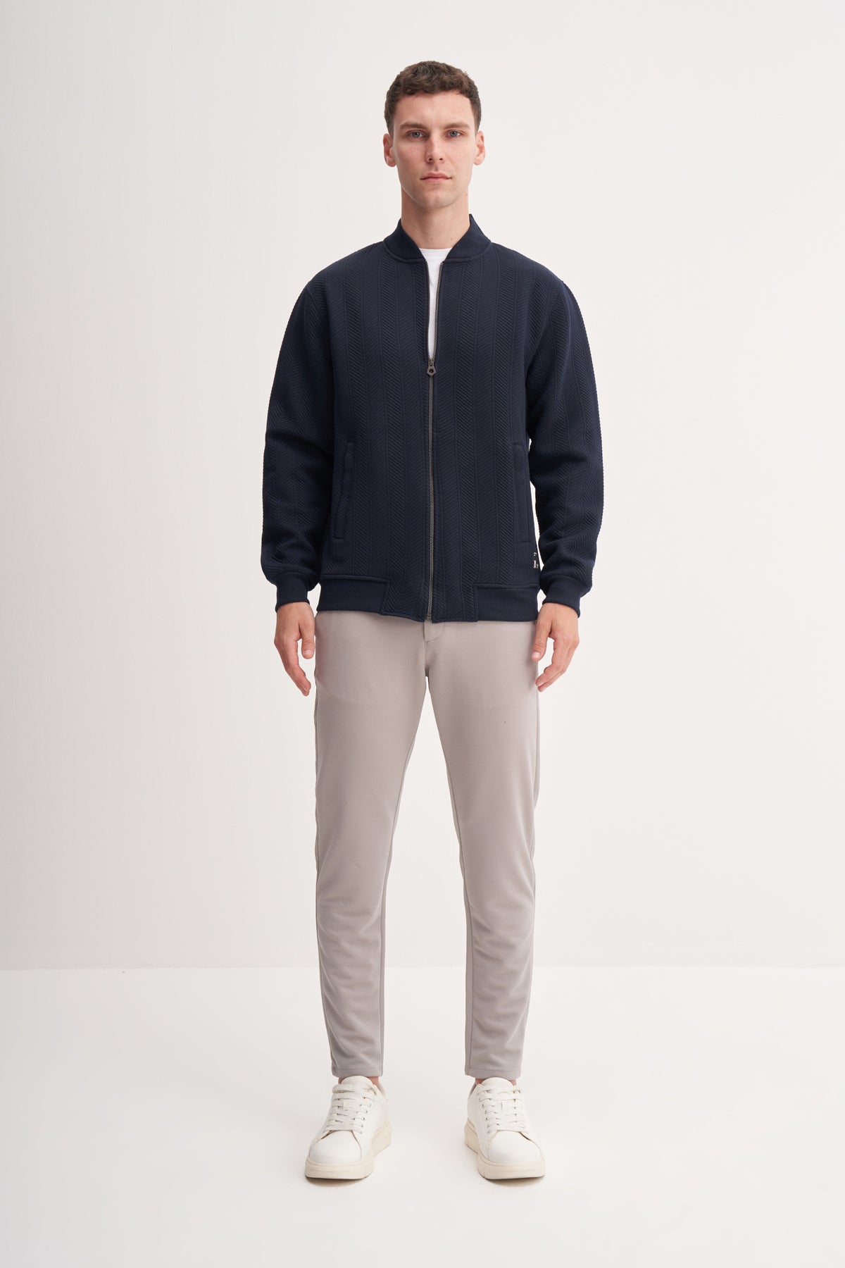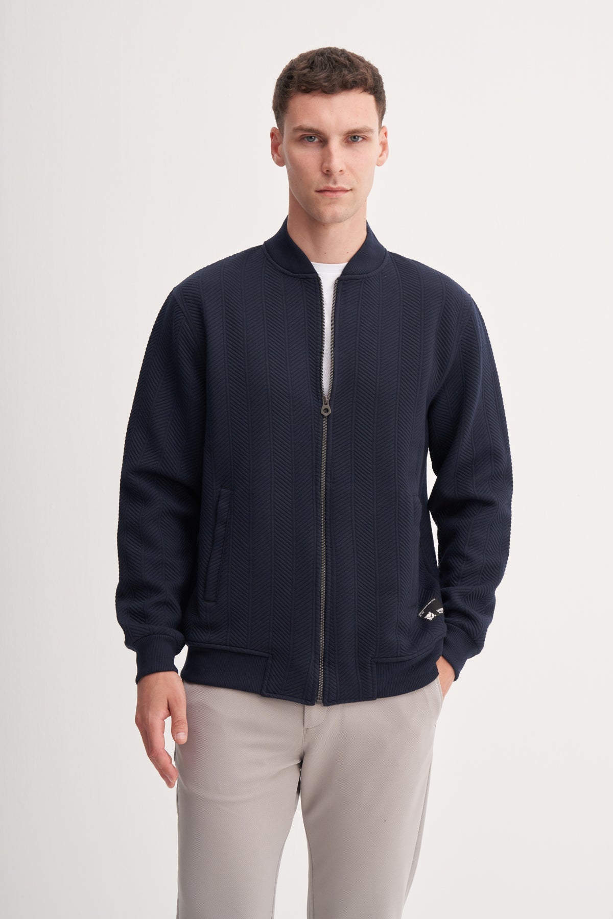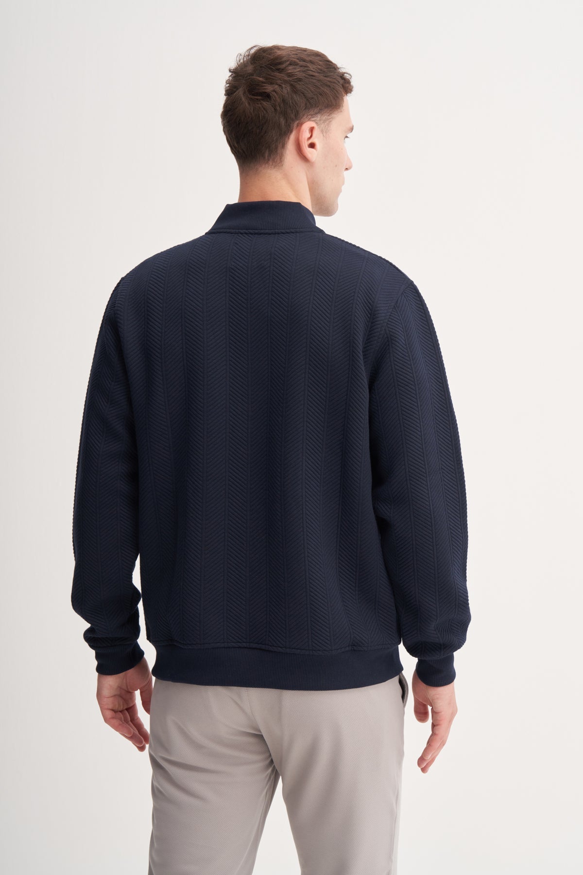 Kapitone Balıksırtı Jakar Kumaş Premium Coll. Yaka Regular Fit Sweat Hırka-53400