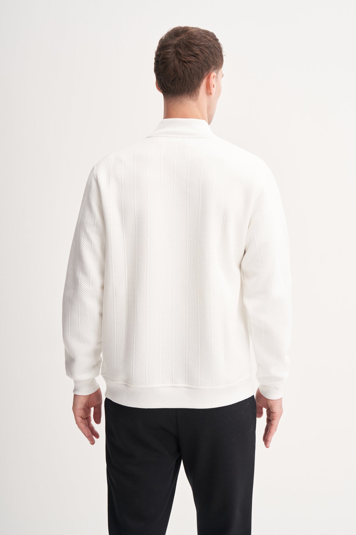 Kapitone Balıksırtı Jakar Kumaş Premium Coll. Yaka Regular Fit Sweat Hırka-53400