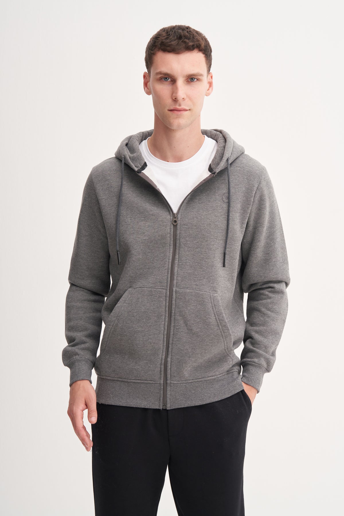 Şardonlu 3 İplik Kumaş Basic Kapüşonlu Regular Fit Sweat Hırka