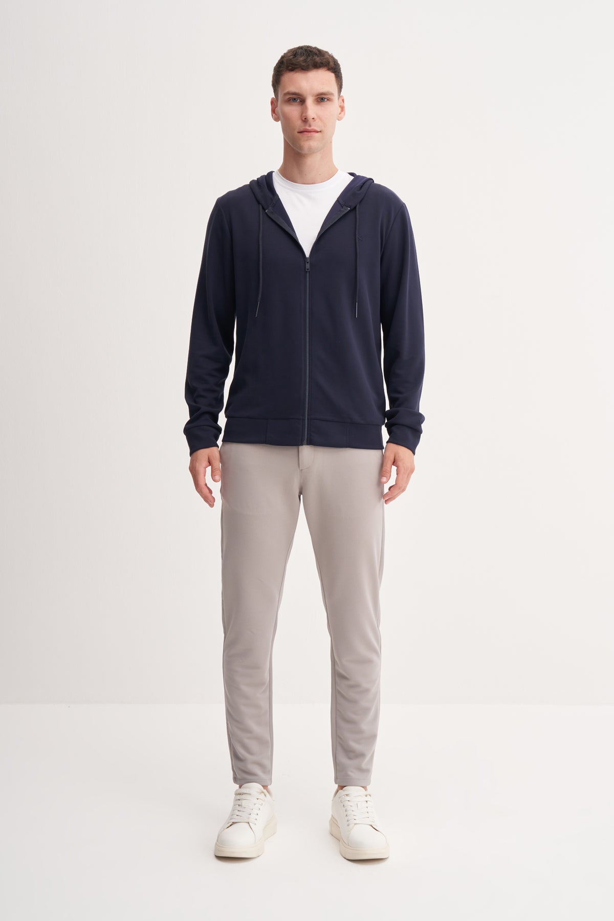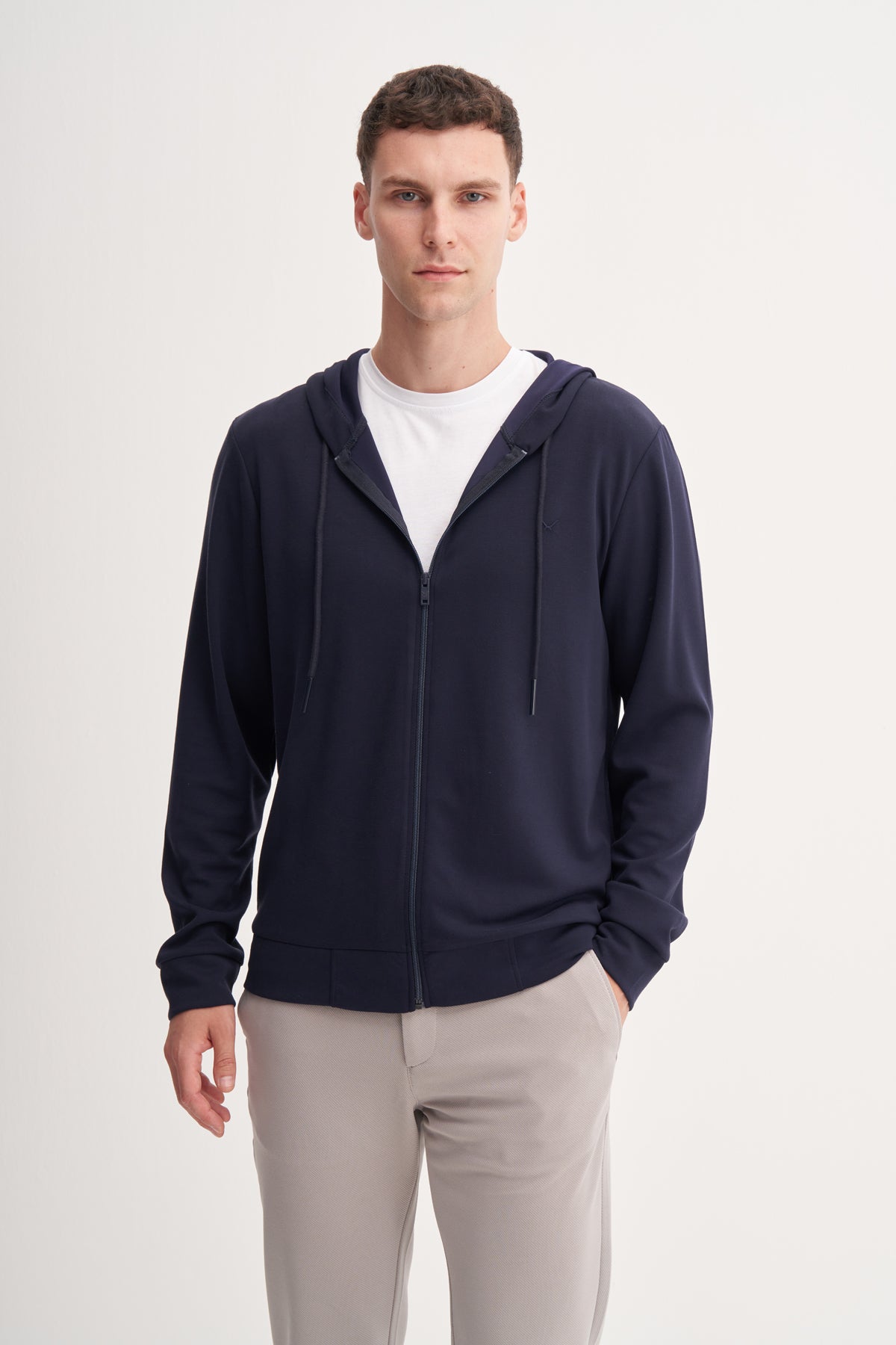 Slim Fit Modal Likralı Kumaş Kapüşonlu Basic Sweat Hırka