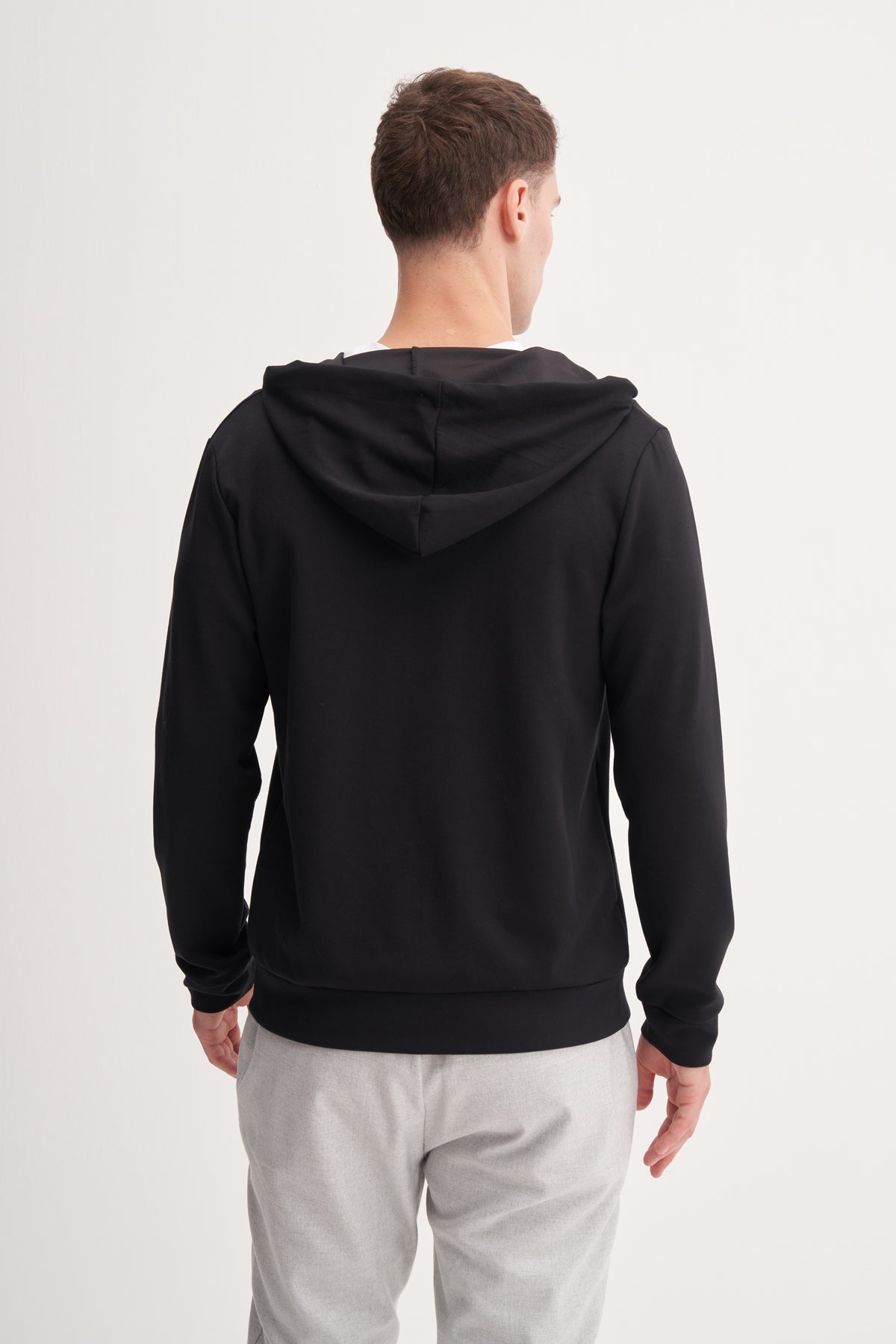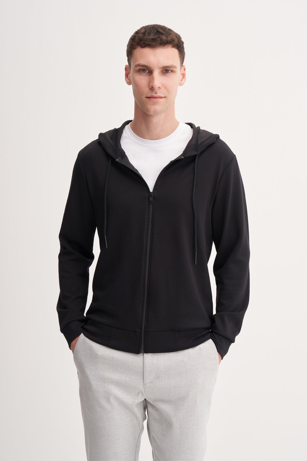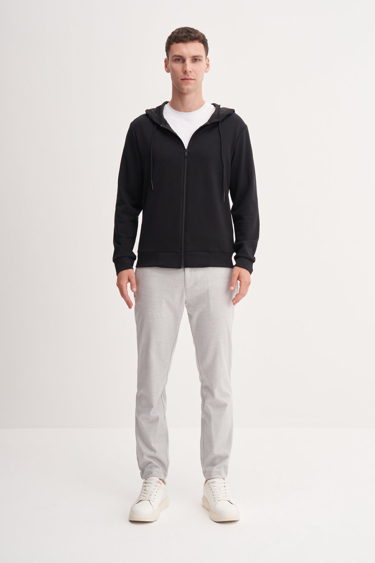Slim Fit Modal Likralı Kumaş Kapüşonlu Basic Sweat Hırka