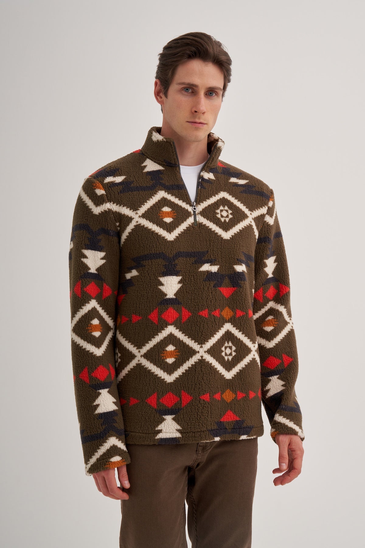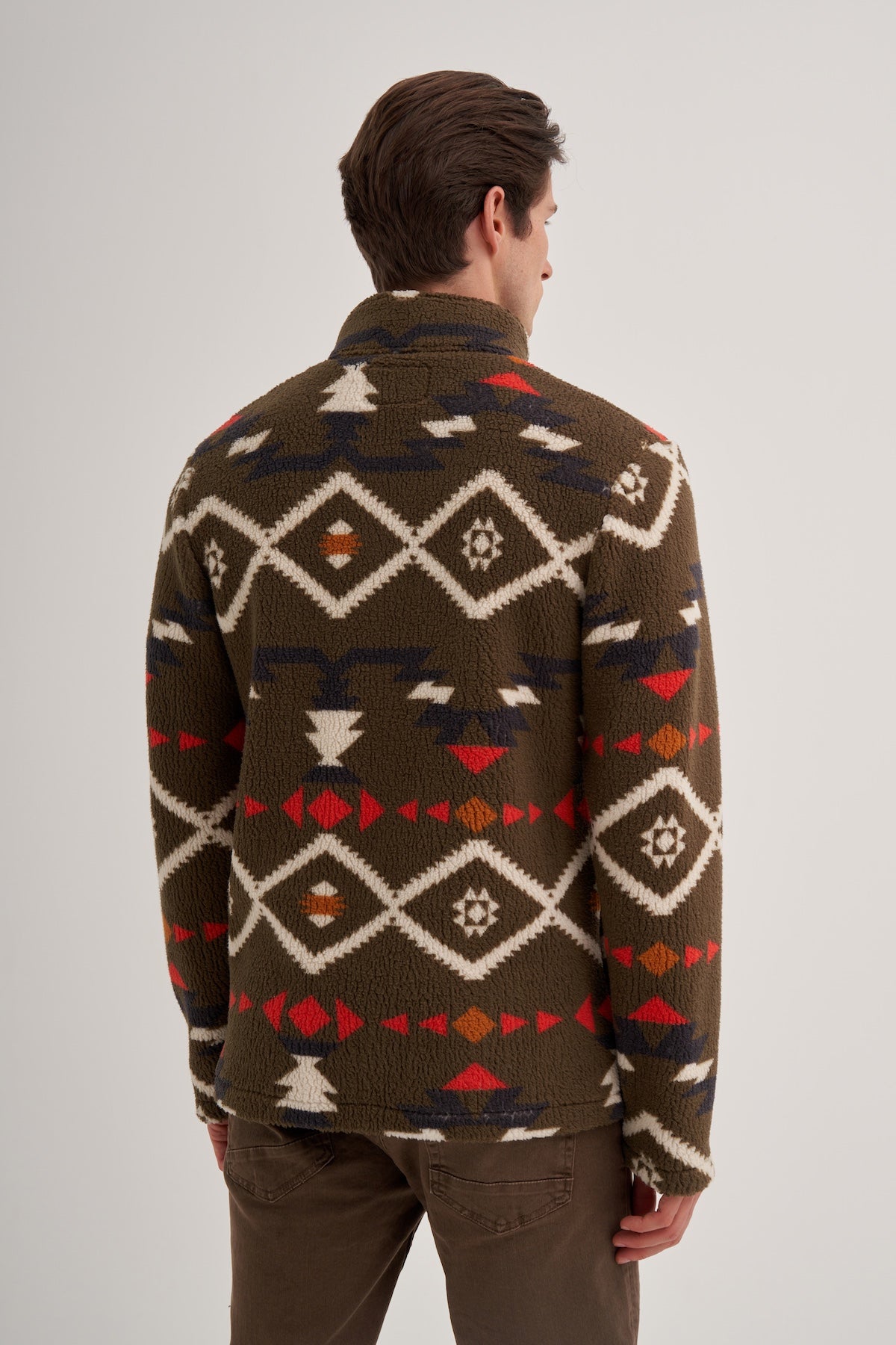 Vintage Desenli Kürk Dokulu Dik Yaka Regular Fit Sweatshirt-52440