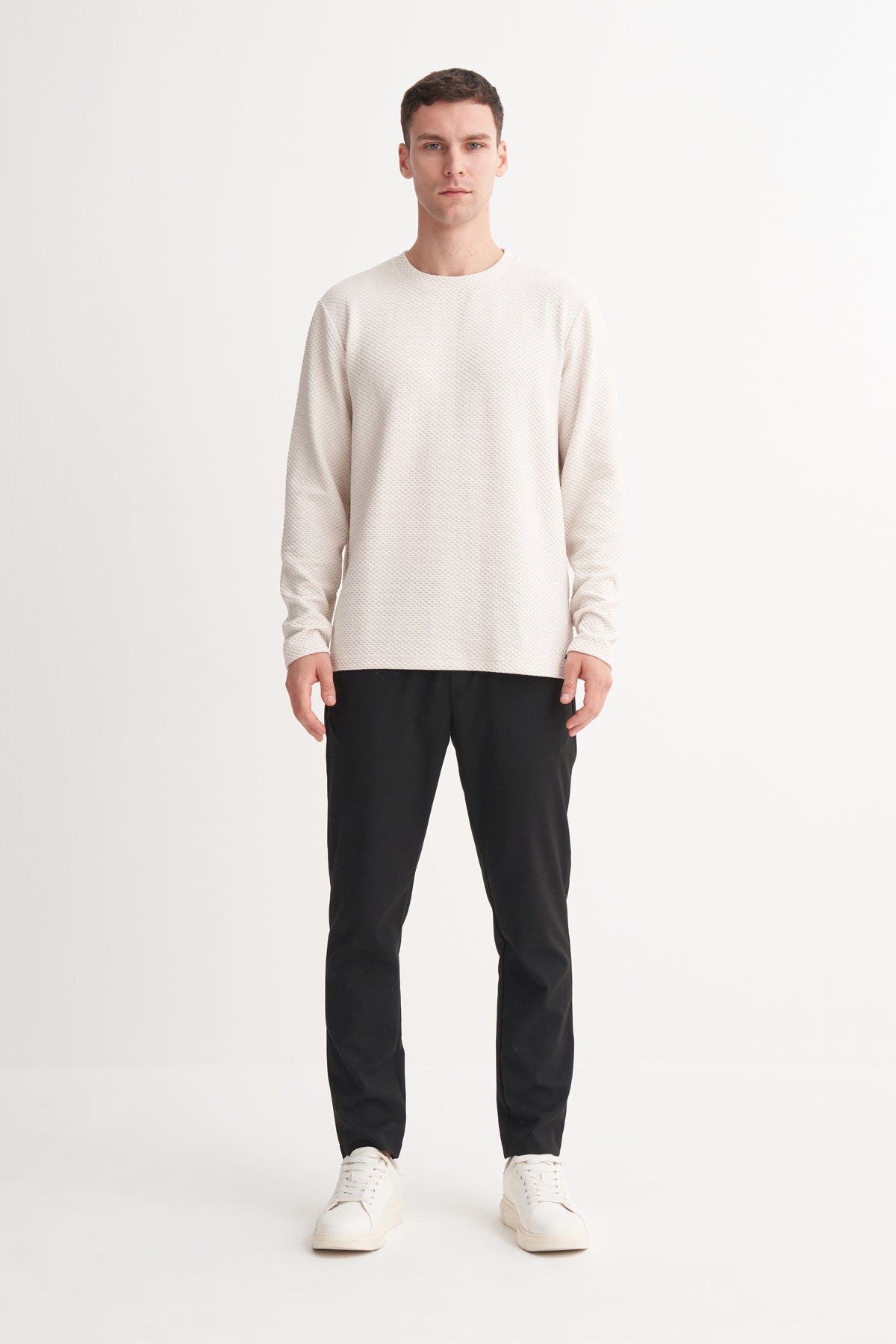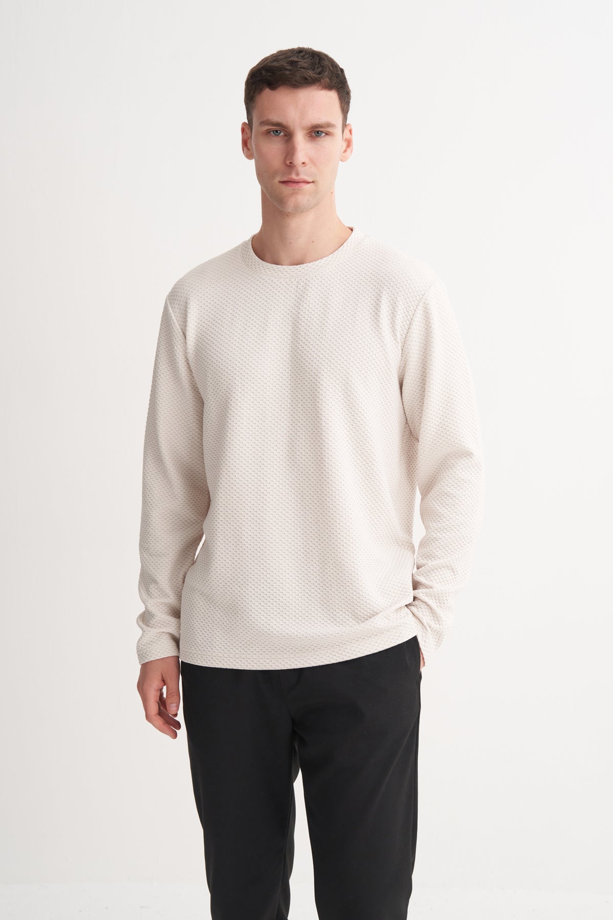 Petek Desenli Jakar Viskon Karışımlı Premium Regular Fit Sweatshirt