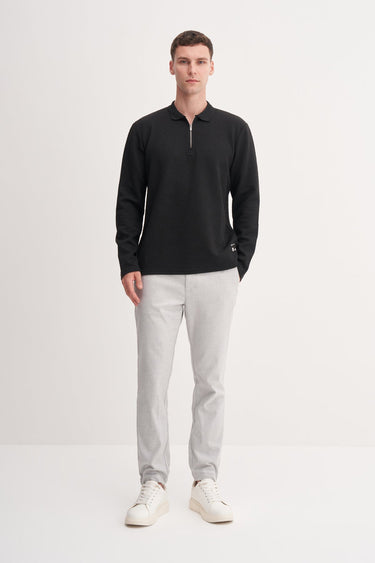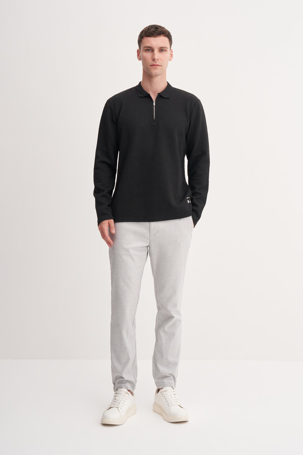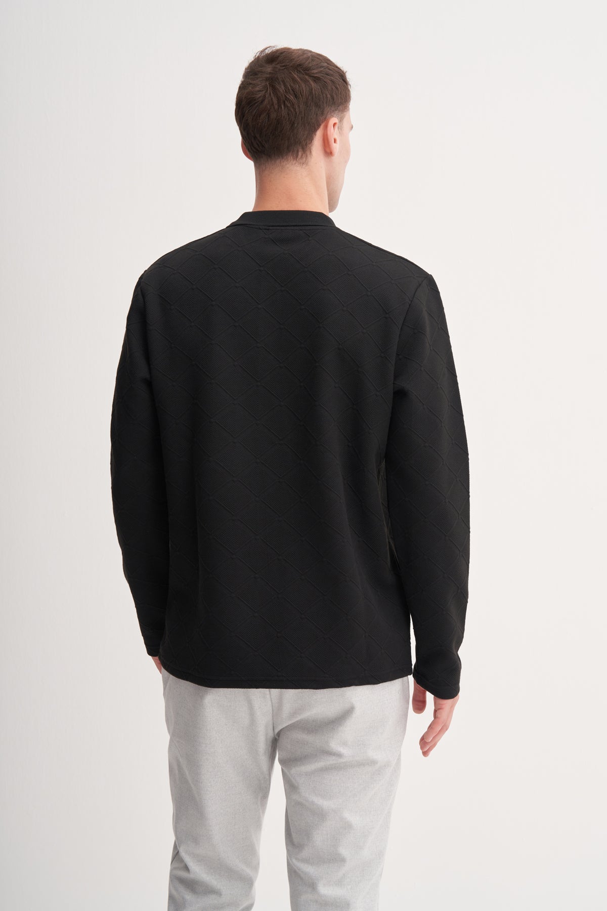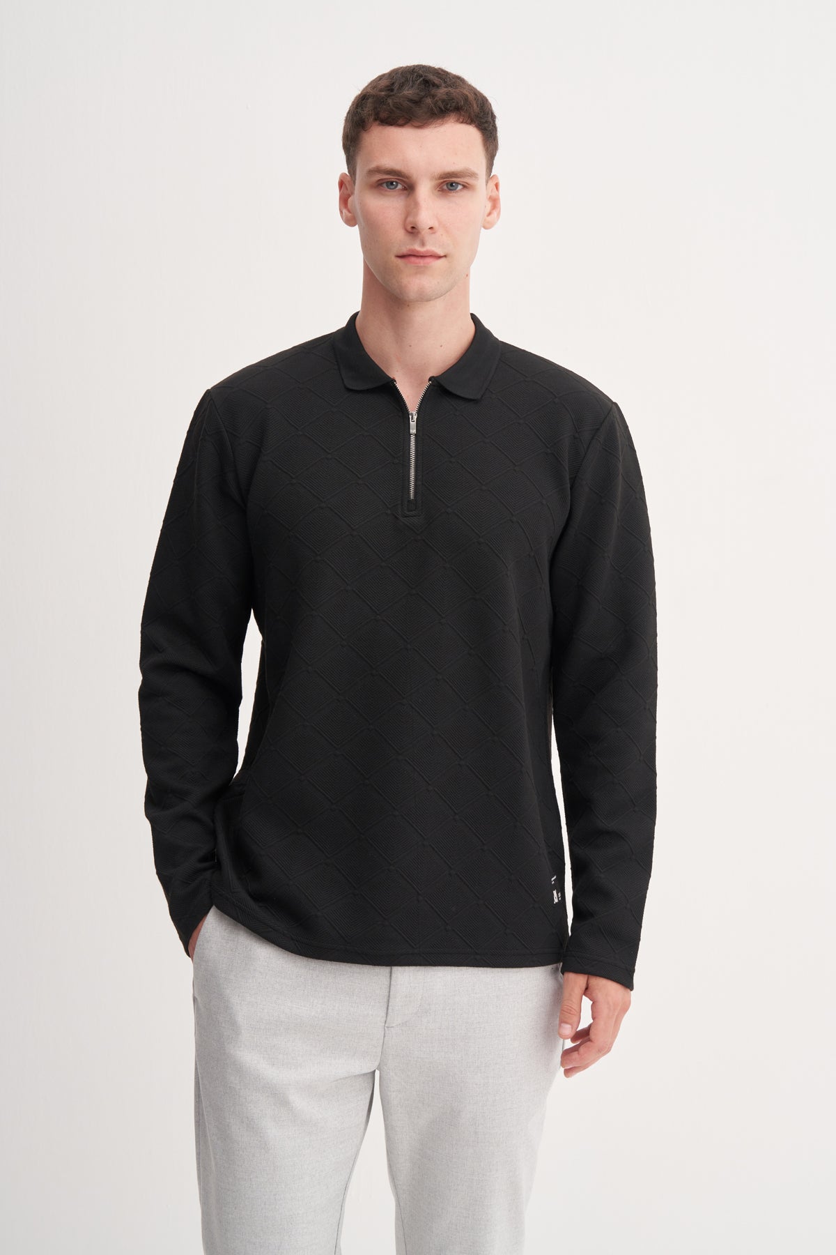 Premium Baklava Desenli Kapitone Jakar Polo Yaka Sweatshirt-53420