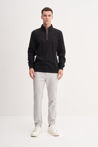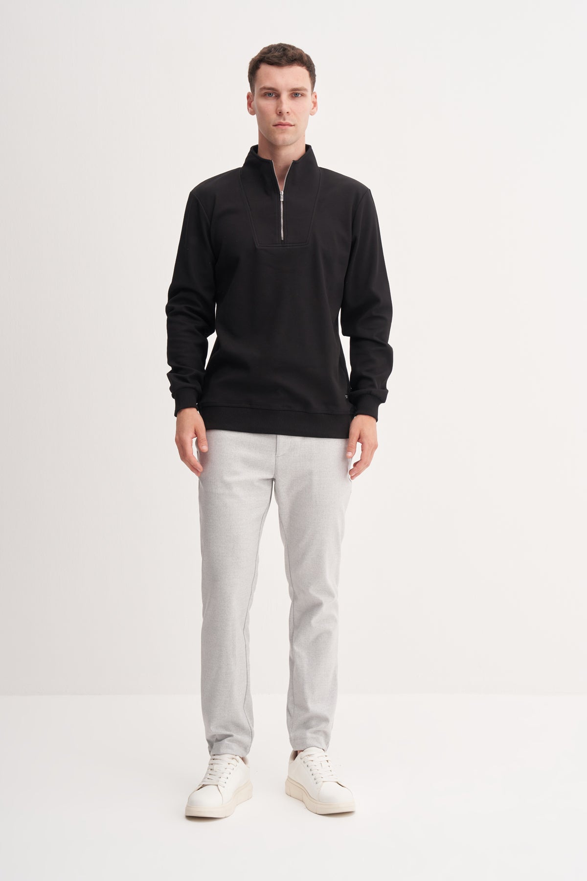 Premium Regular Fit Kalın Dokulu Dik Yaka Fermuarlı Sweatshirt-53075