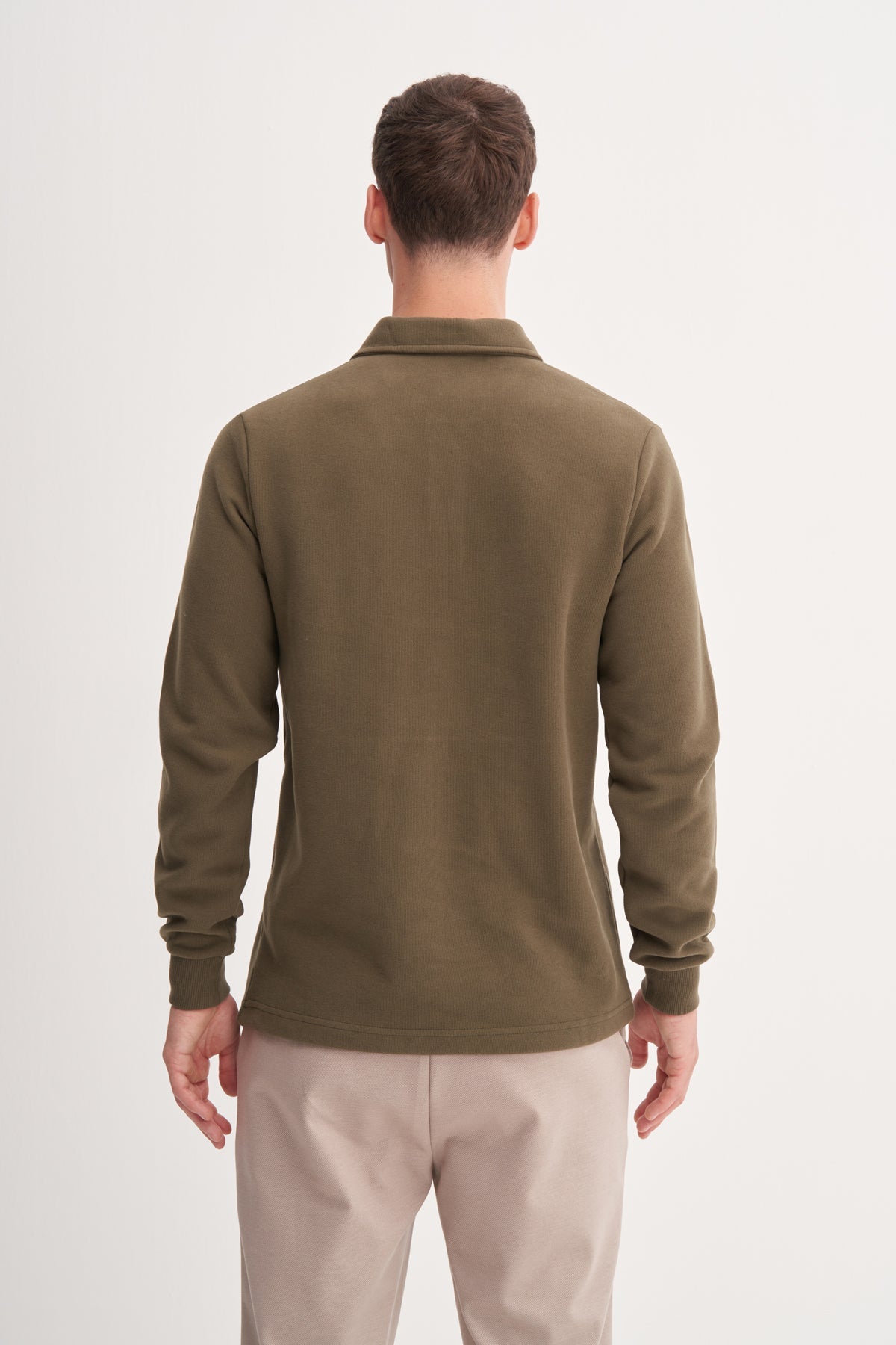 Slim Fit Polo Yaka Pamuk Karışımlı Selanik Sweatshirt - 56460 - Cazador