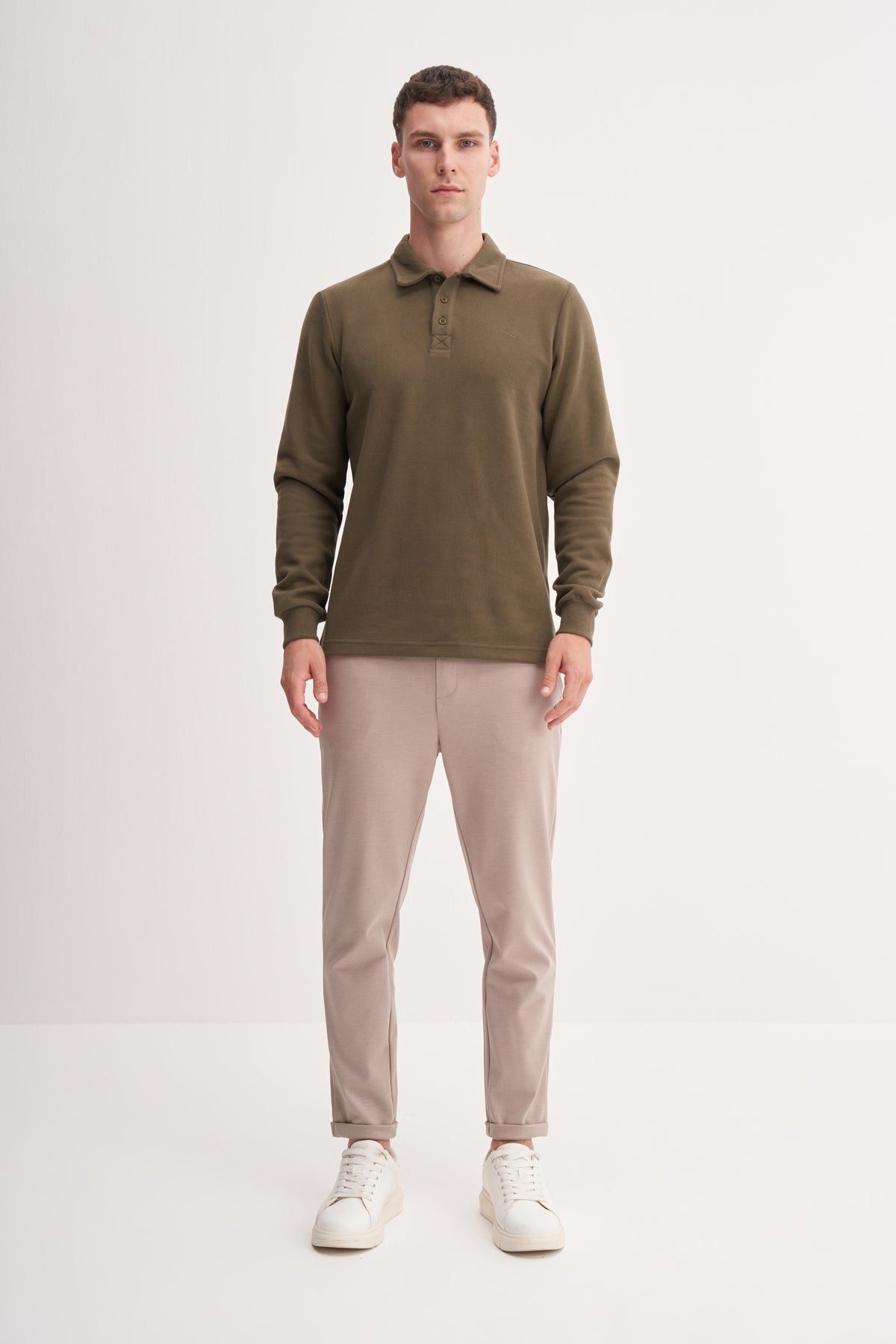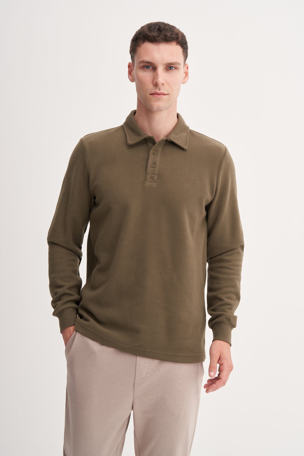 Slim Fit Polo Yaka Pamuk Karışımlı Selanik Sweatshirt-56460