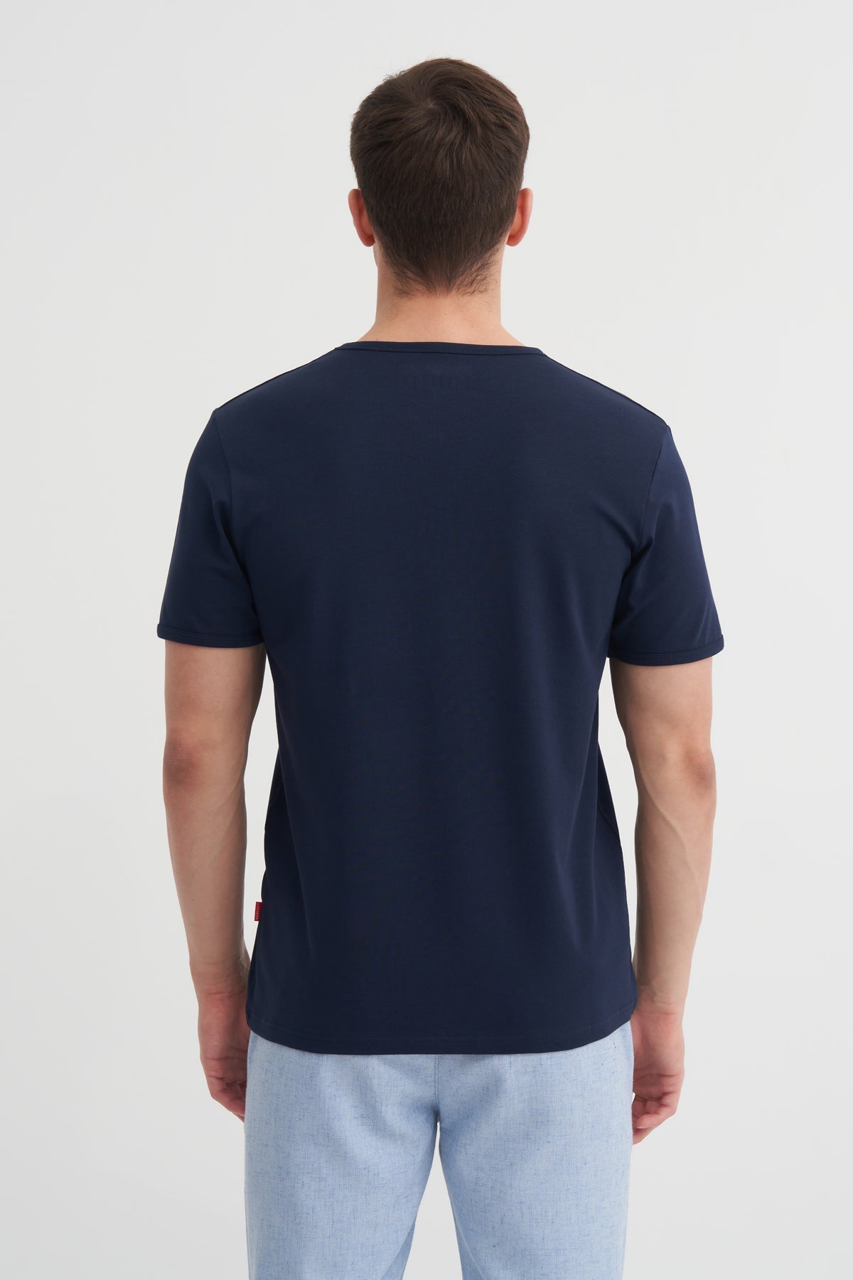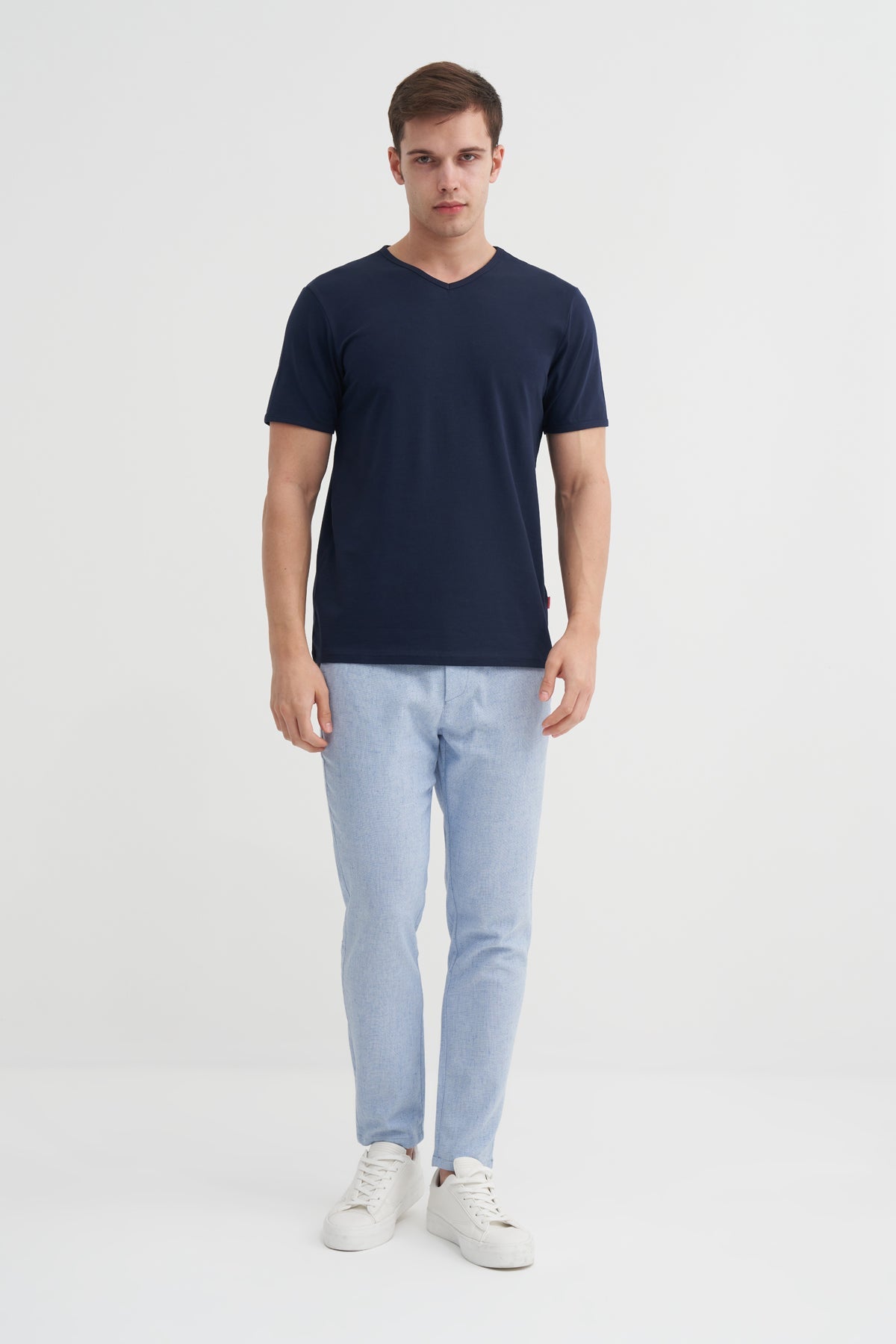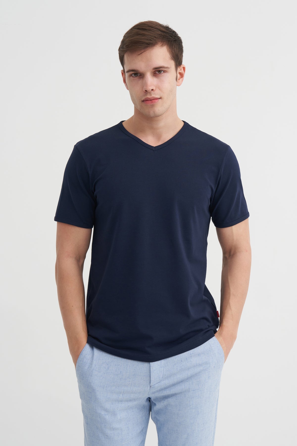 Slim Fit V Yaka Düz Örme Likarlı Tişört