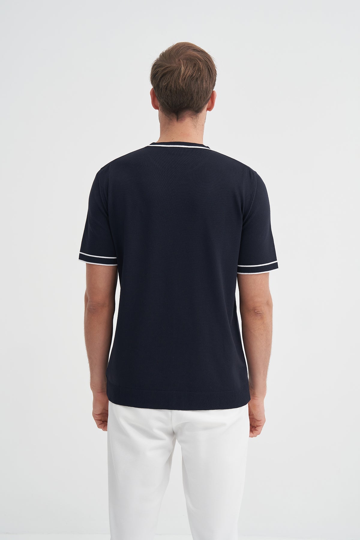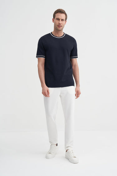 Bisiklet Yaka Regular Fit Çizgili Triko Tişört 3013 - Cazador